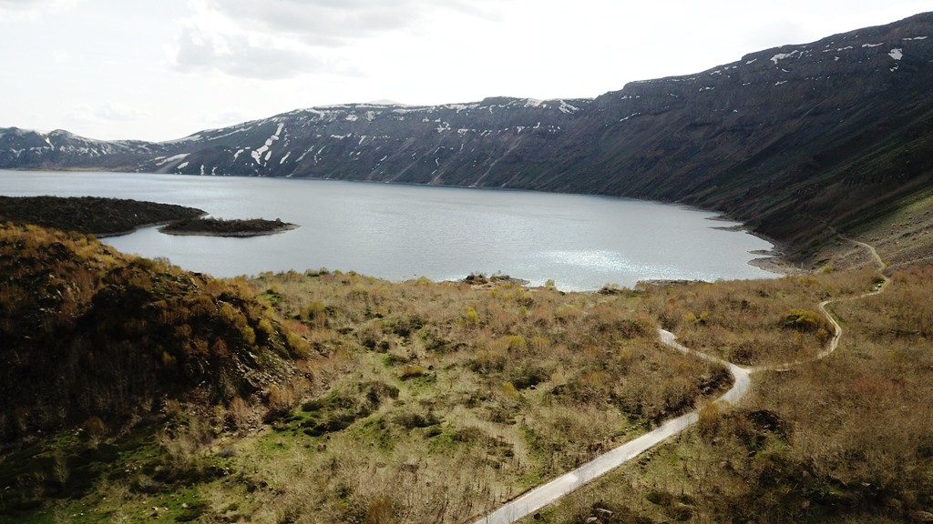Dünyanın ikinci büyük krater gölü olan Bitlis'in Tatvan ilçesindeki "Nemrut Krater Gölü", yeni tip koronavirüs (Covid-19) ile mücadele tedbirleri kapsamında uygulanan tam kapanma sürecinde en sakin günlerini yaşıyor.