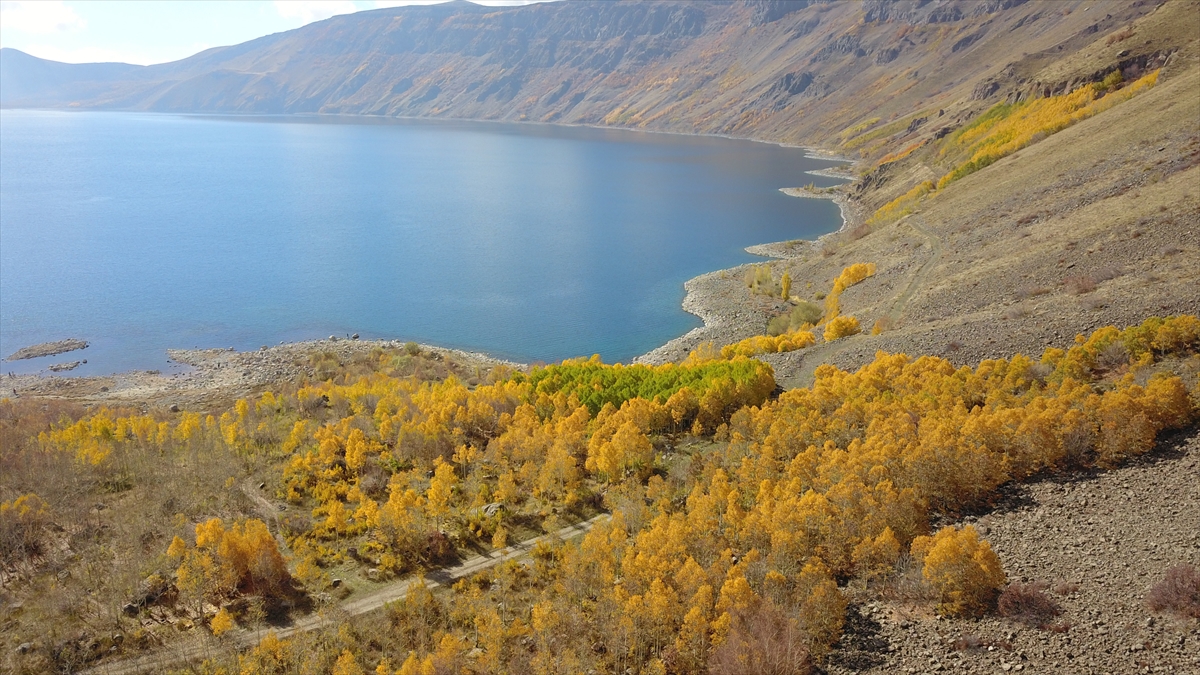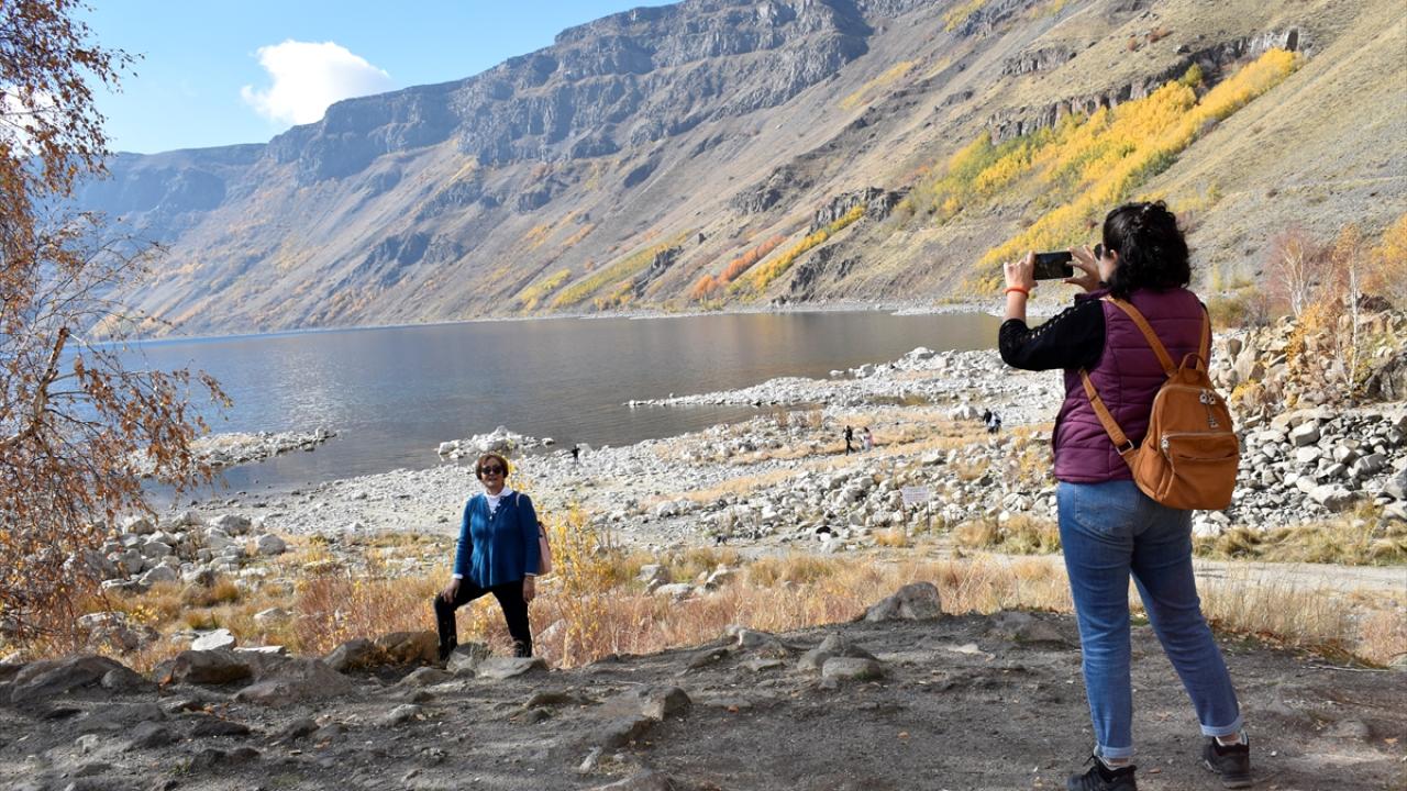 Bitlis'in Tatvan ilçesindeki Nemrut Krater Gölü, sonbaharda da yerli ve yabancı turistlere, doğaseverlere ve fotoğraf tutkunlarına ev sahipliği yapıyor.