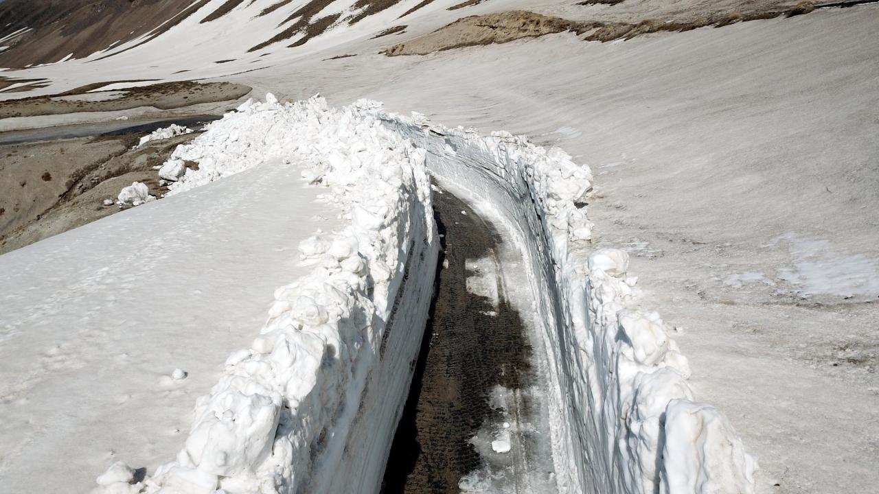 Zirveye çıkıldığında bir tarafta Van Gölü, diğer tarafta Nemrut Krater Gölü’nü izleme fırsatı bulan ziyaretçileri önce kar tünelleri karşılıyor.