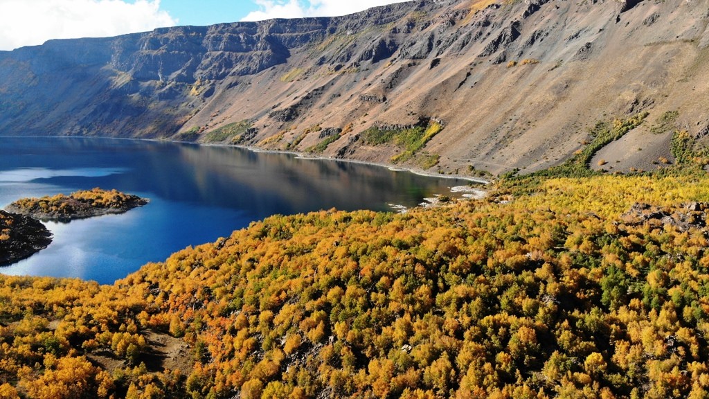 Avrupalı Seçkin Destinasyonlar Projesi (EDEN) kapsamında "Mükemmeliyet Ödülü" alan Nemrut Krater Gölü`nün çevresi, yeşil, sarı ve kahverenginin tüm tonlarının görülebildiği manzaraya büründü.