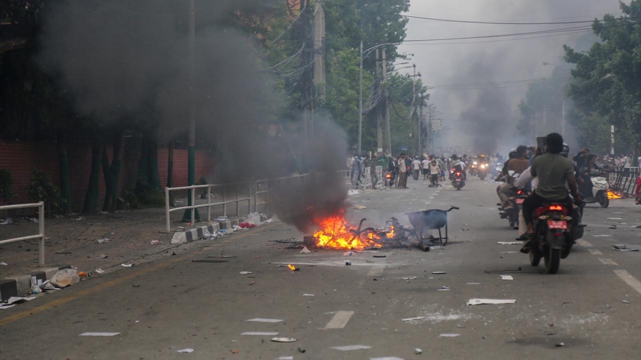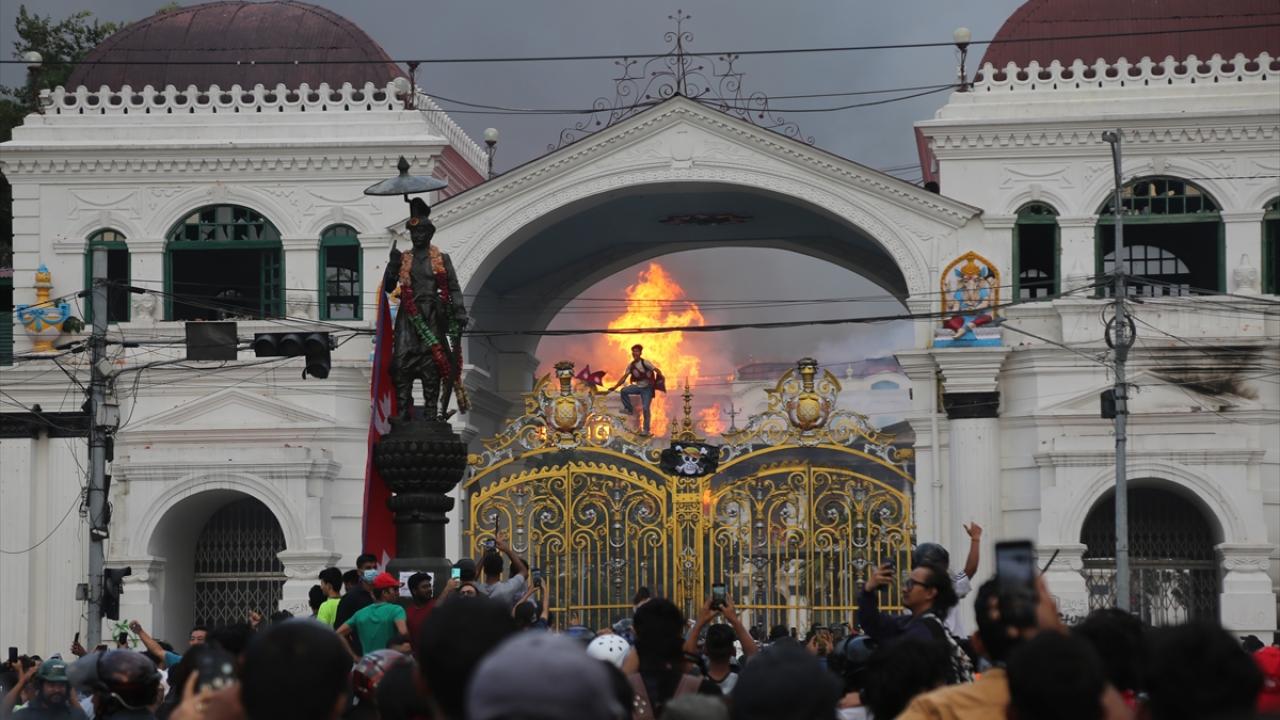 Nepal Başbakanı Khadga Prasad Sharma Oli'nin istifa etmesinin ardından ülkedeki hükümet karşıtı protestocular, parlamento binasını ateşe verdi.