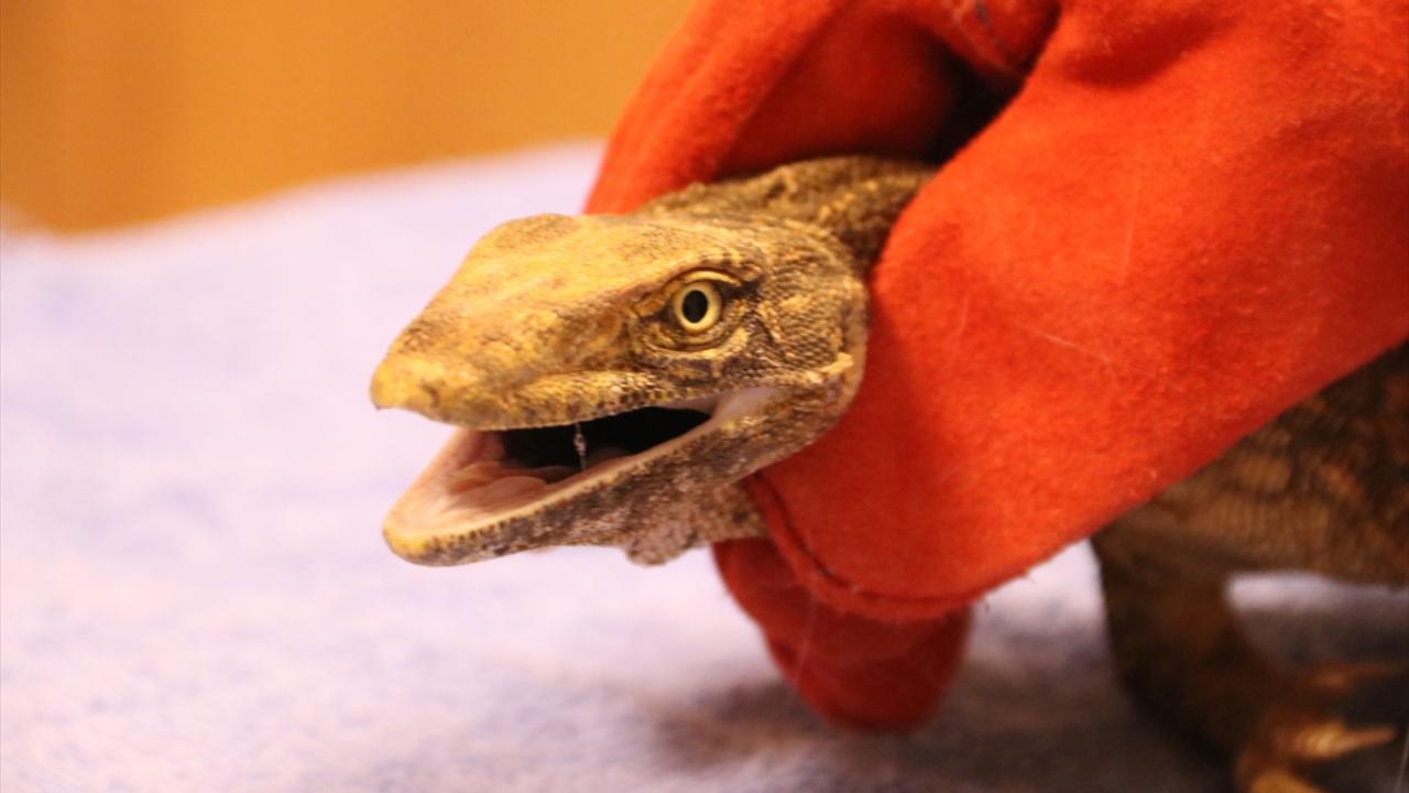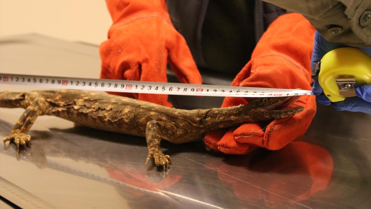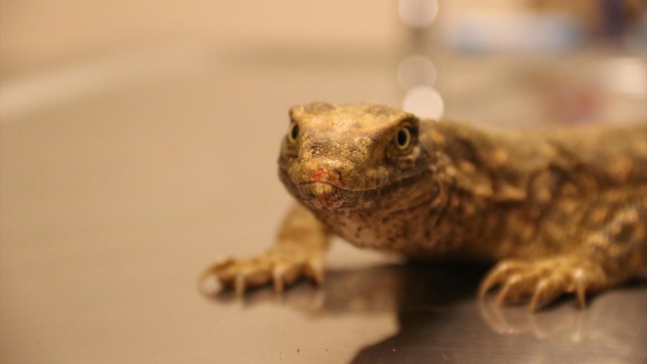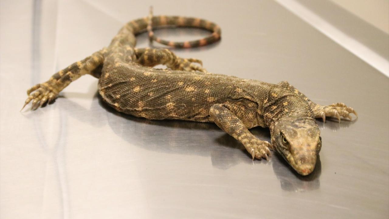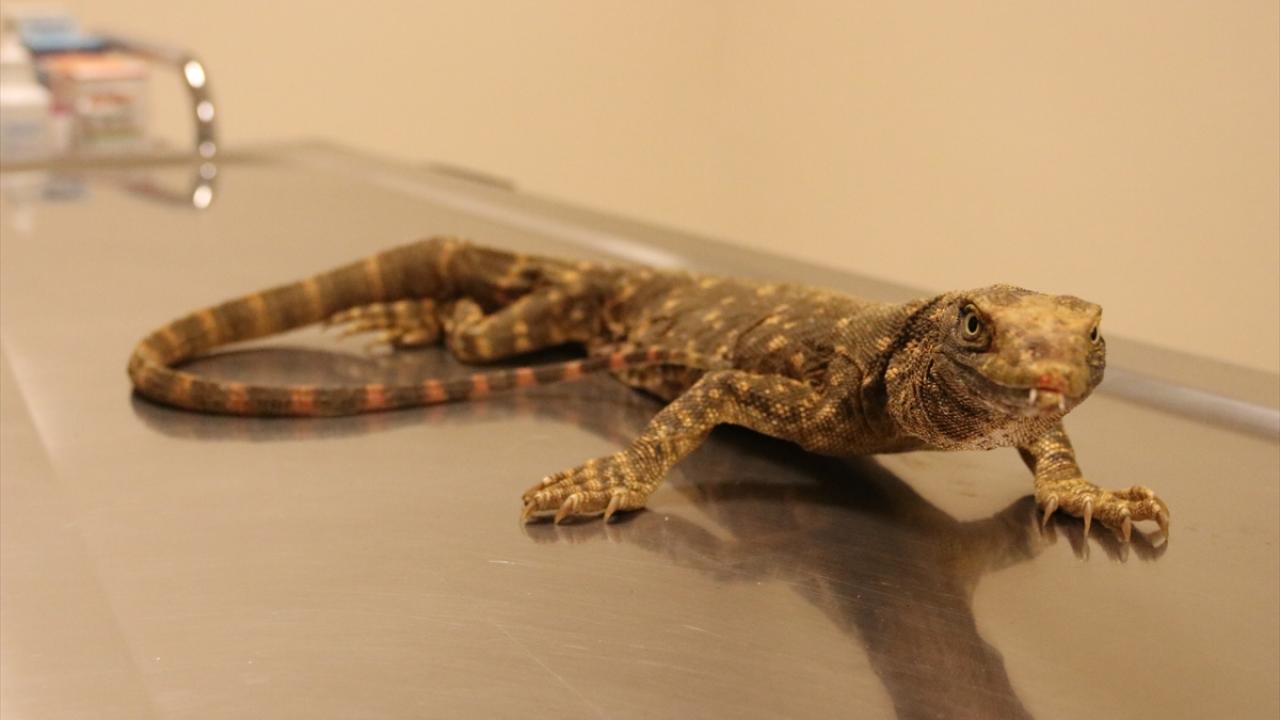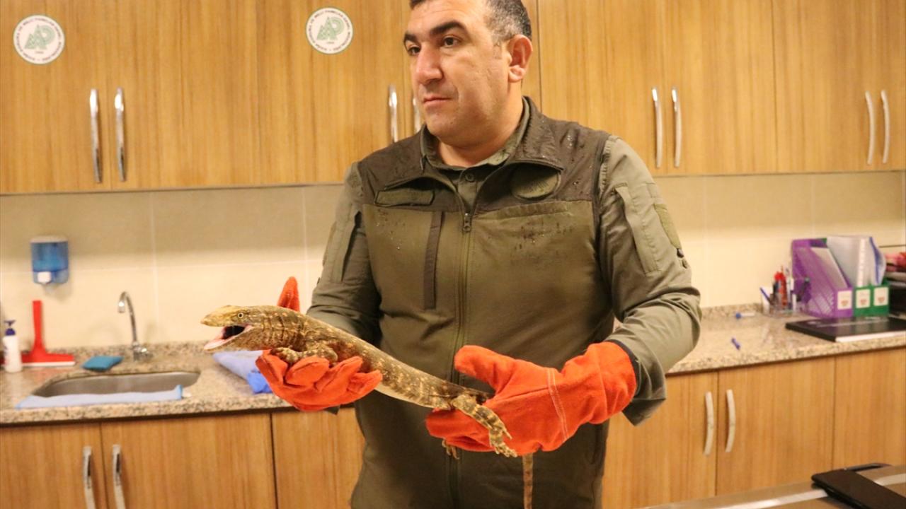 Ekipler tarafından koruma altına alınan çöl varanı, tedavisinin ardından doğal yaşam alanına salınacak.