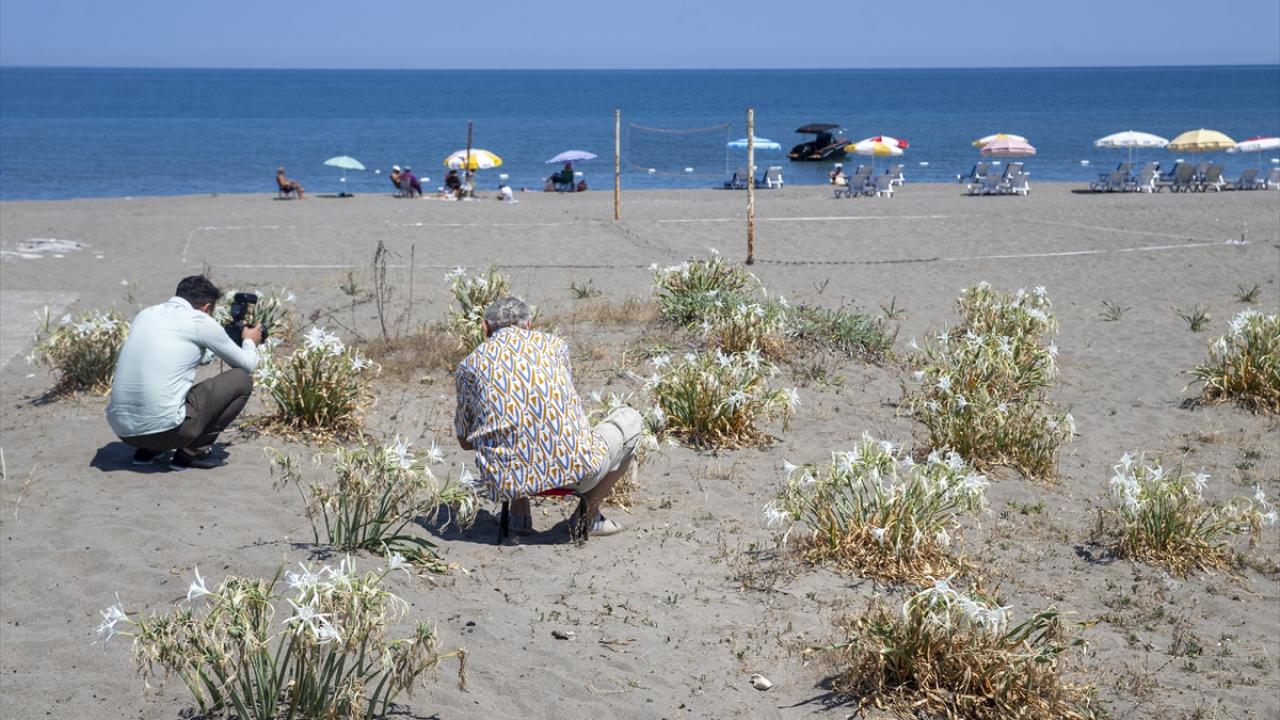 Sakarya'nın Kocaali ilçesinde nesli tükenme tehdidi altında olduğu için koruma altına alınan kum zambakları, bu yıl sahillerde daha fazla görülmeye başladı.