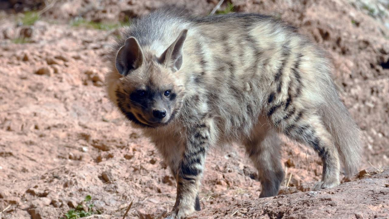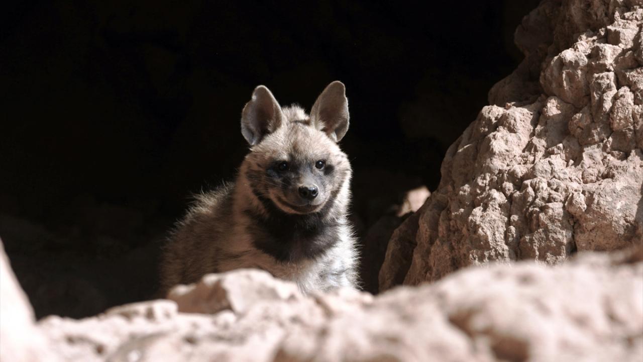 Nesli tükenmekte olan çizgili sırtlan, yavrusuyla görüntülendi