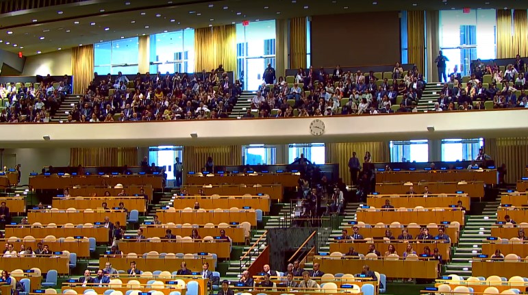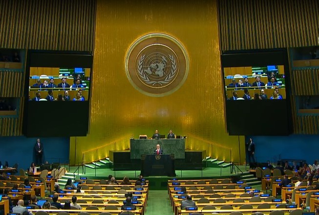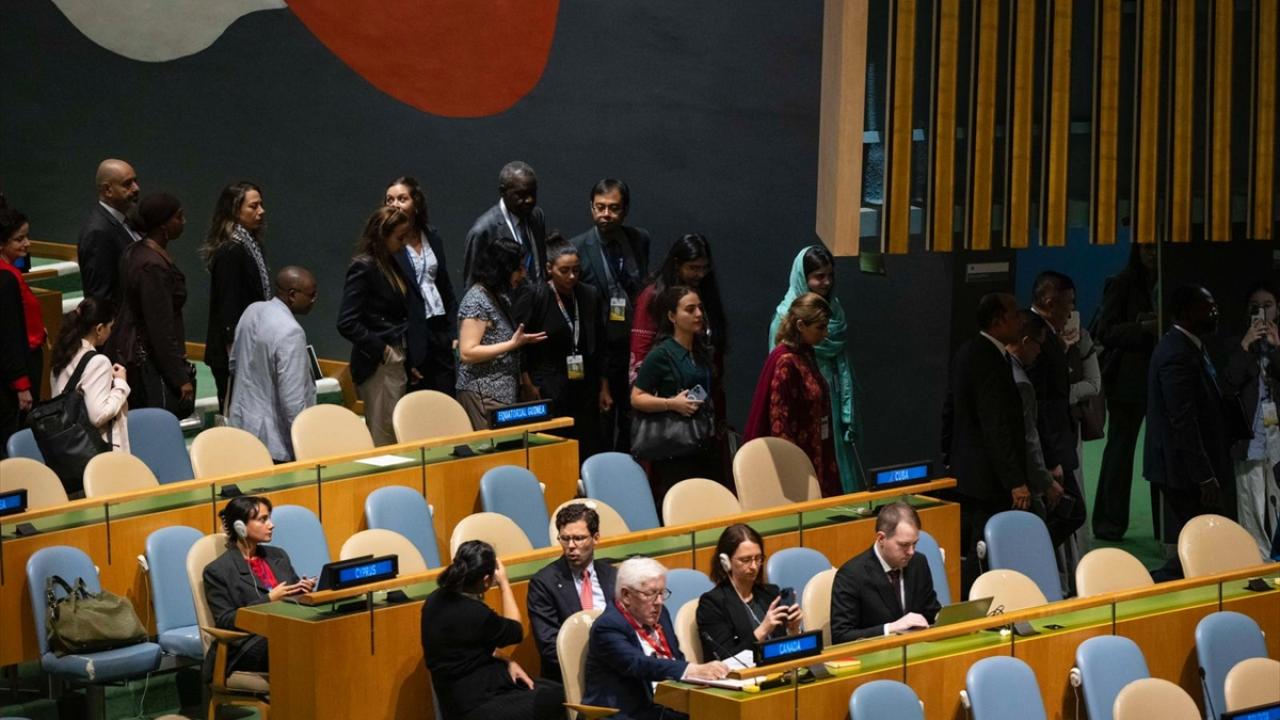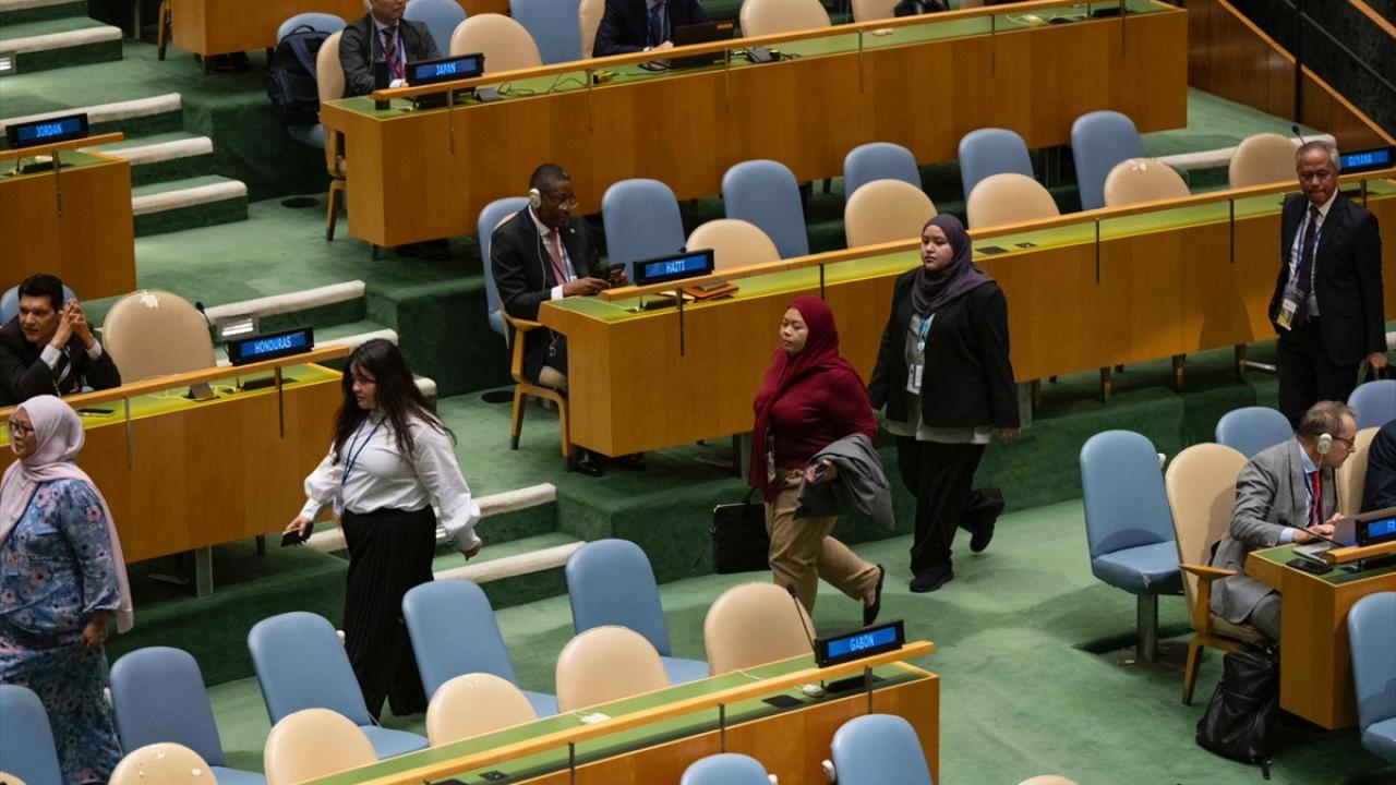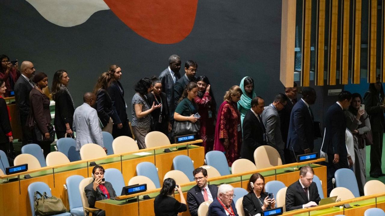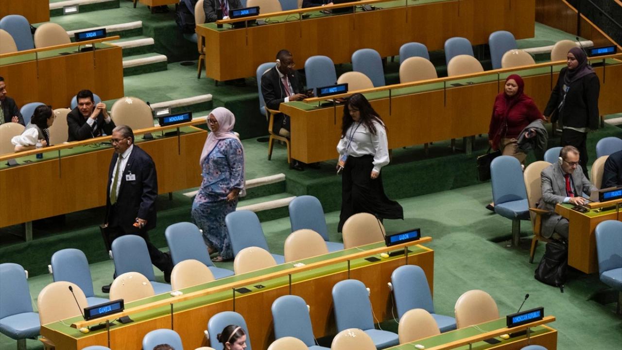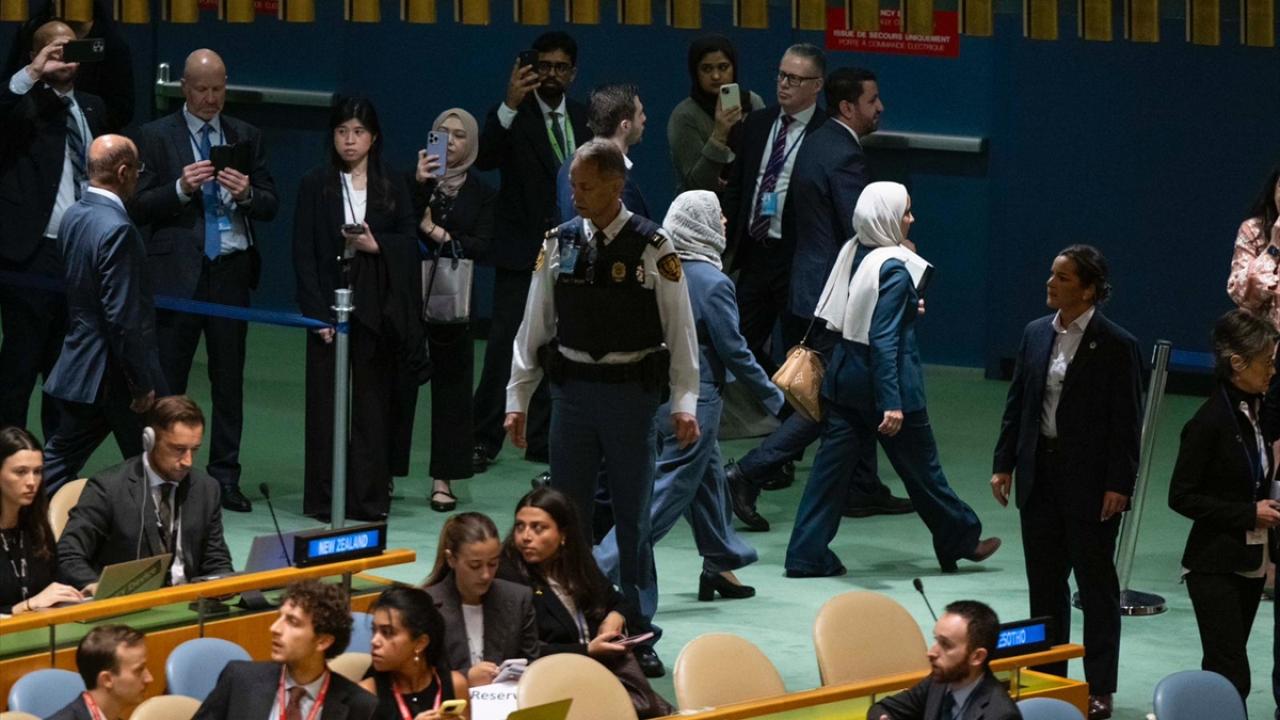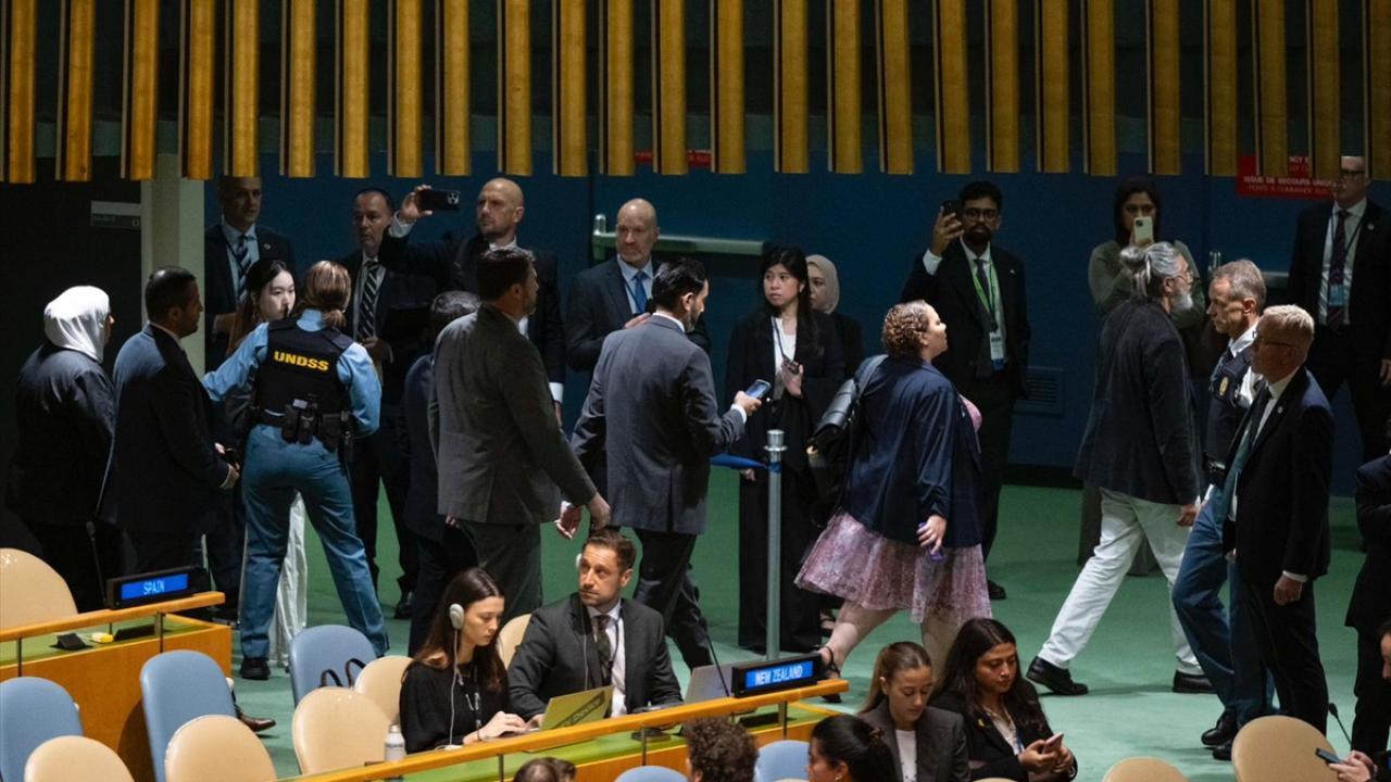 Birleşmiş Milletler Genel Kurulu oturumunda, soykırımcı İsrail Başbakanı Binyamin Netanyahu konuşmasına başlarken birçok ülke temsilcisi salonu terk etti.