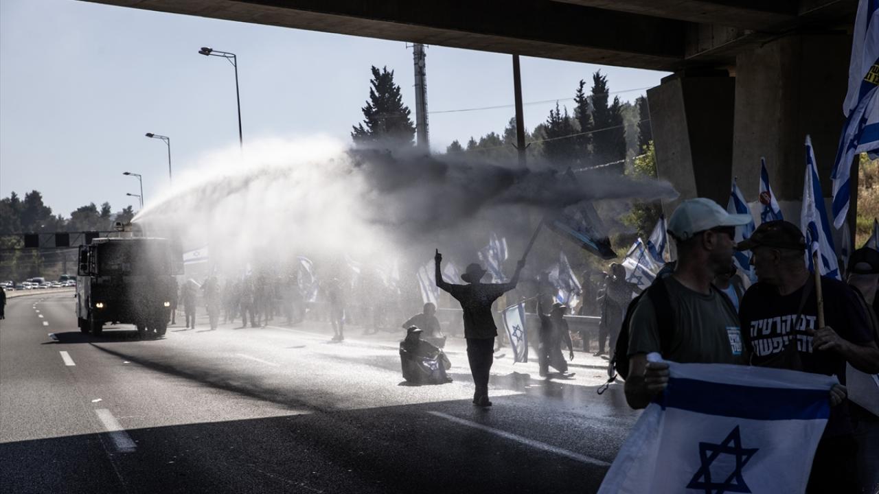 İsrail polisi, göstericilere TOMA ile müdahale etti.