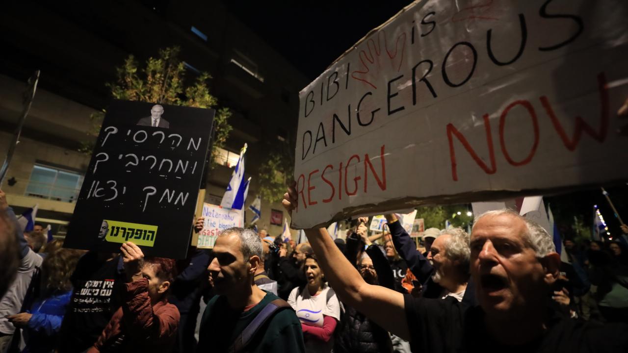 Batı Kudüs`teki Gazze Caddesi yakınlarında toplanan yaklaşık bin İsrailli, ellerinde Netanyahu hükümetini başarısız olmakla suçlayan döviz ve karikatürler taşıyarak, Netanyahu`nun istifa etmesi çağrısında bulundu.