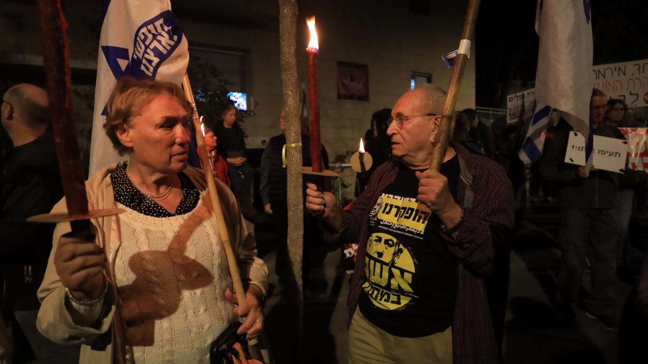 Batı Kudüs'teki İsrail Başbakanı Binyamin Netanyahu rezidansı önünde toplanan İsrailliler, İsrail hükümetini protesto ederek Netanyahu karşıtı slogan attı.
