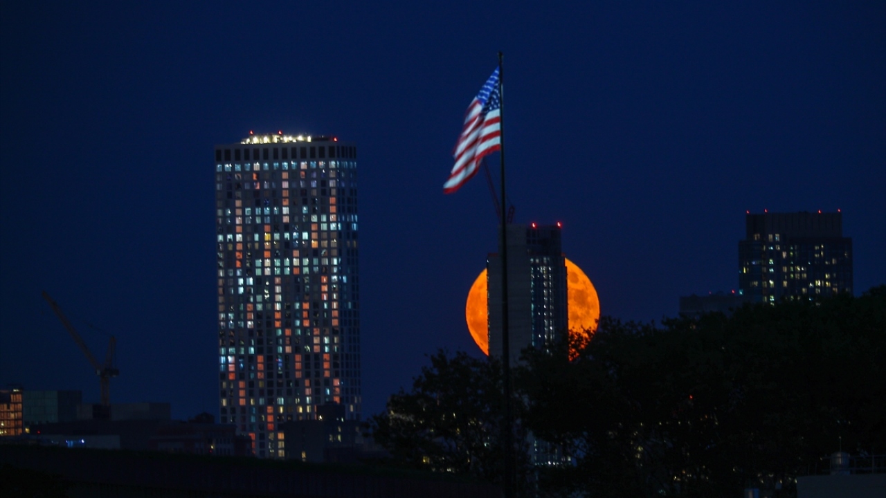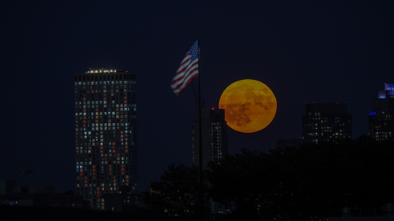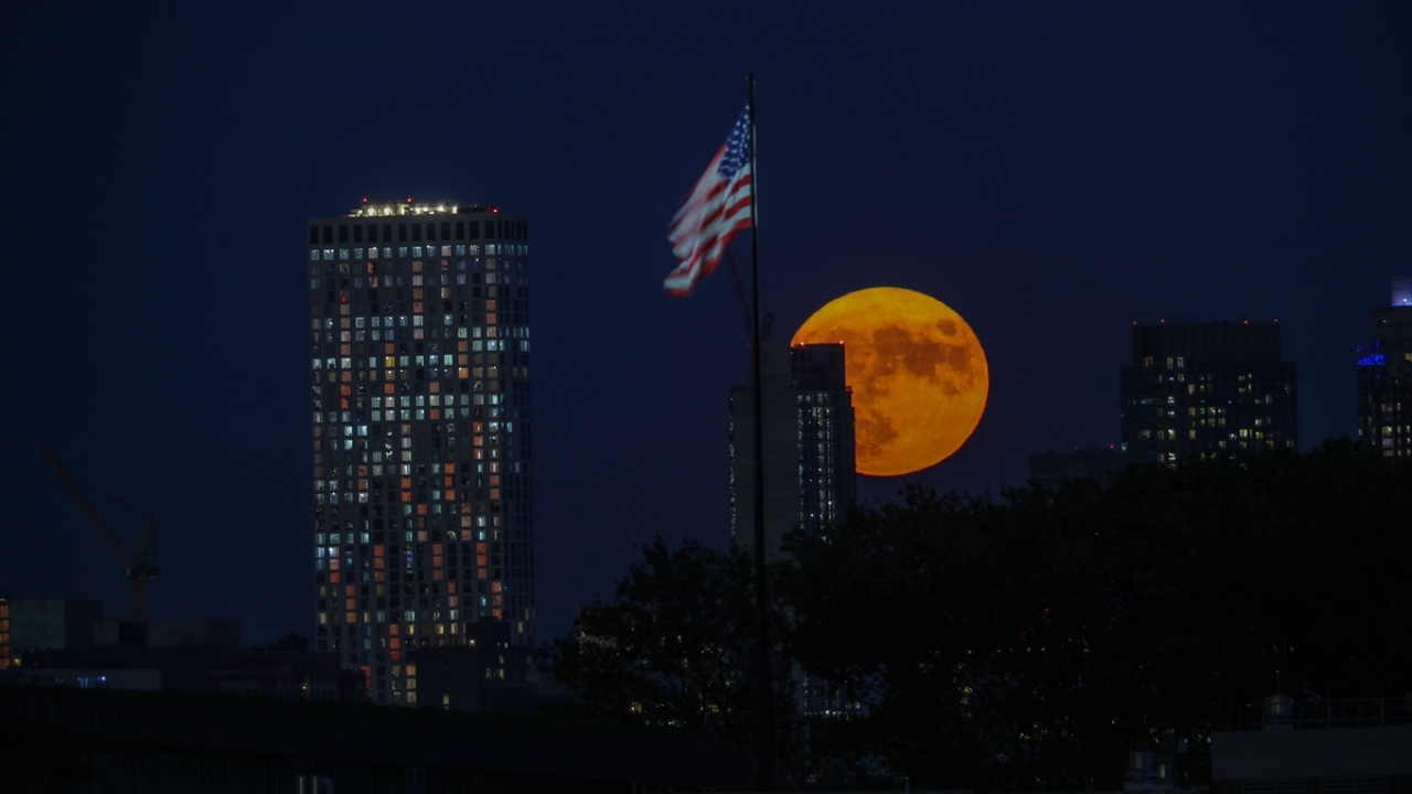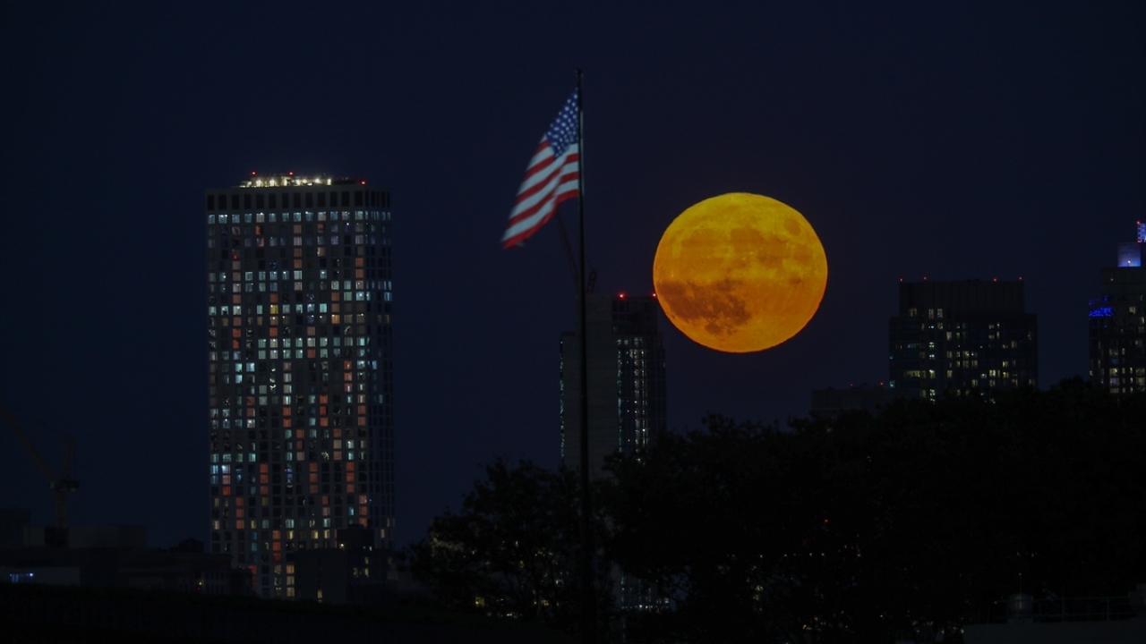 ABD'nin New Jersey kentinde akşam saatlerinde beliren Hasat Dolunayı (Harvest Moon) güzel görüntüler oluşturdu.