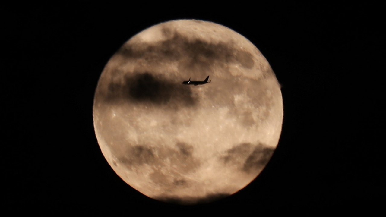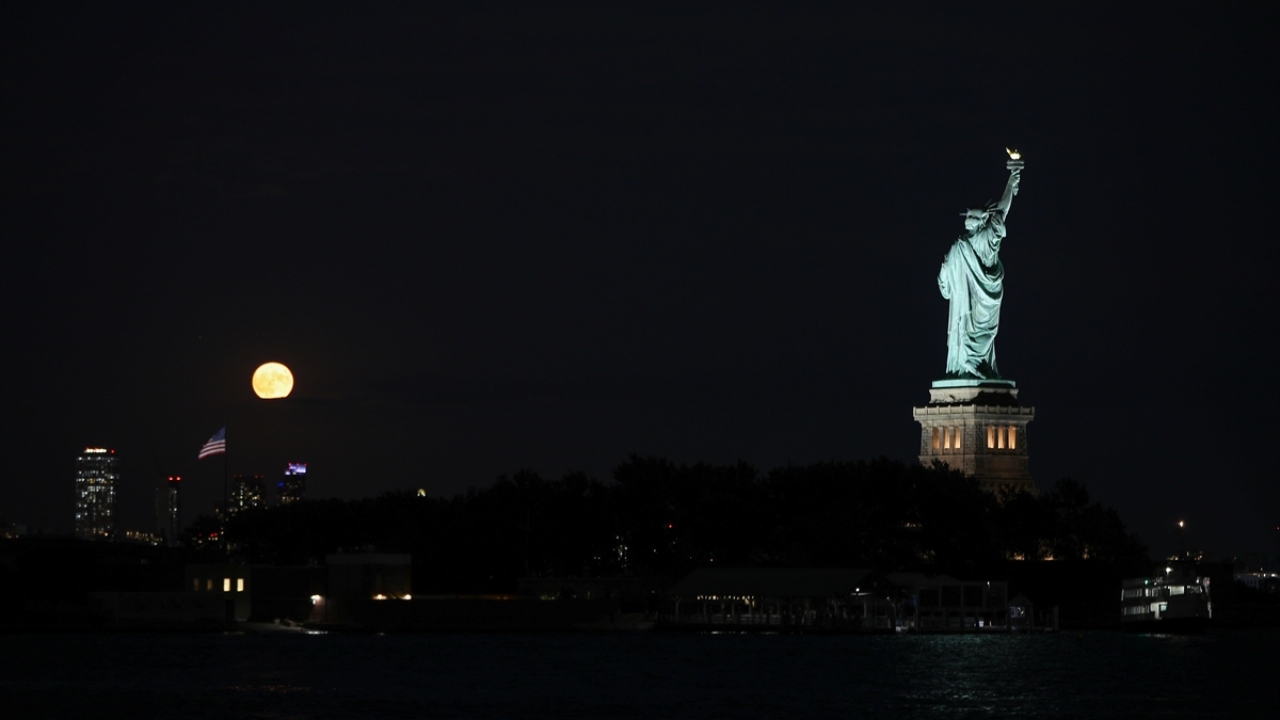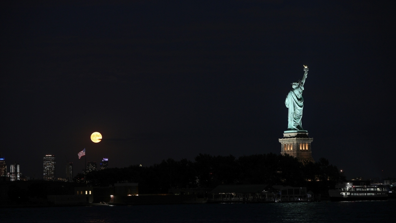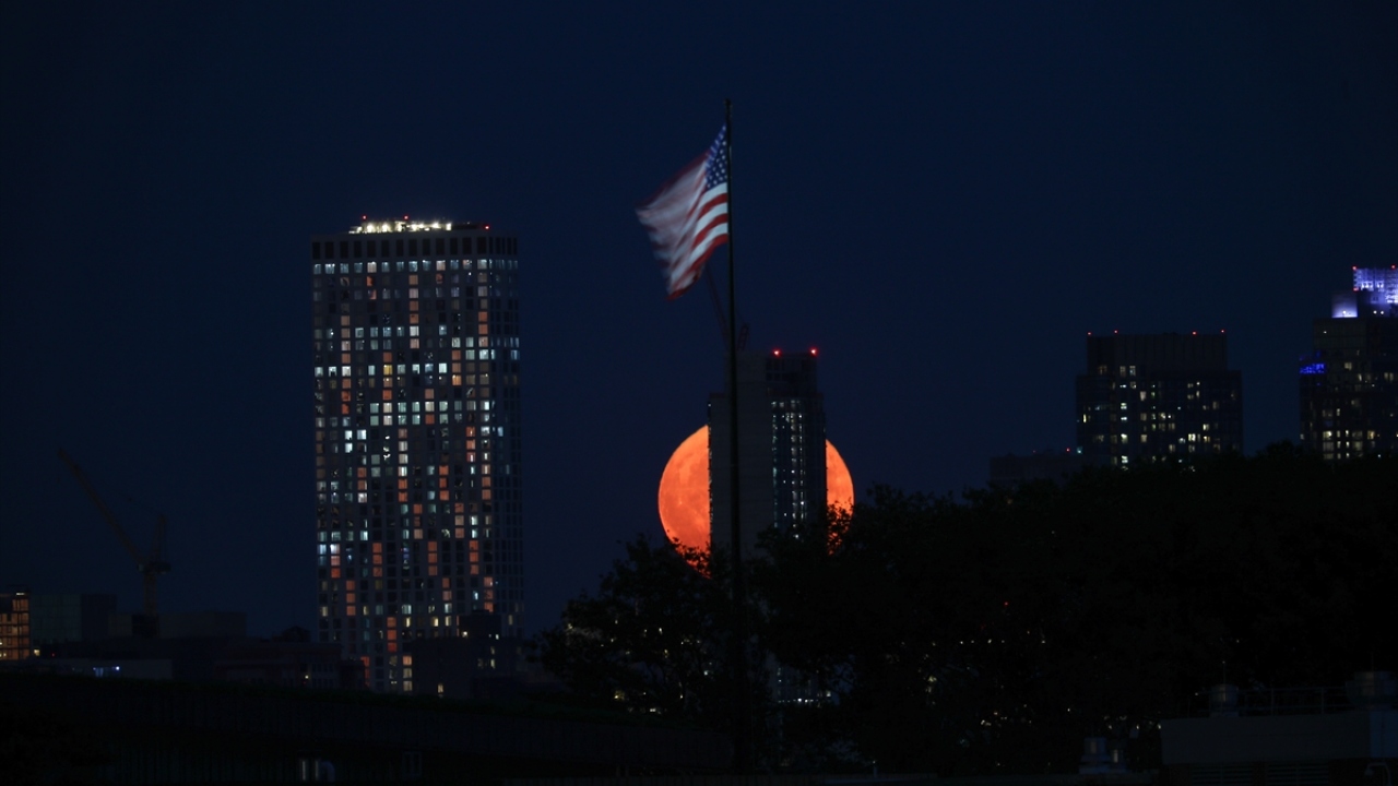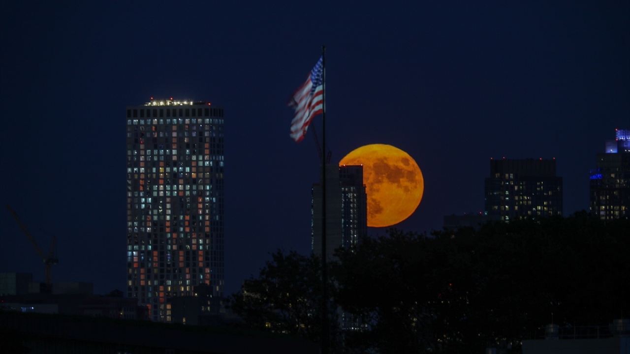 ABD'nin New Jersey kentinde akşam saatlerinde beliren Hasat Dolunayı (Harvest Moon) güzel görüntüler oluşturdu.