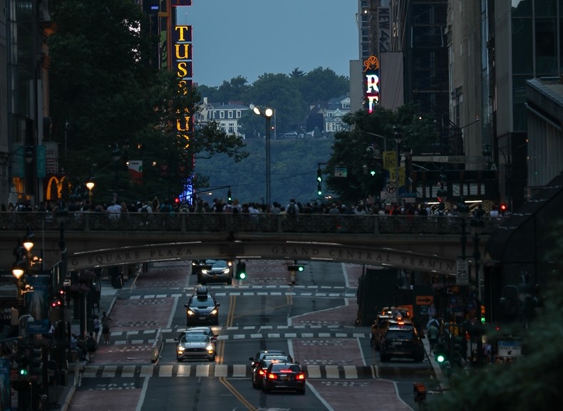 Yılda sadece dört kere meydana gelen ve "Manhattanhenge" olarak adlandırılan güneşin 42. caddedeki binaların arasından batışı, havanın bulutlu olması nedeniyle izlenemedi.