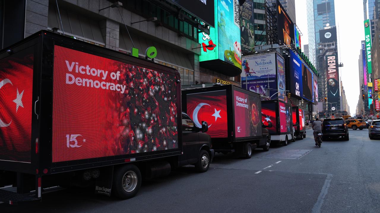 New York'un ünlü Times Meydanı'nda 15 Temmuz Demokrasi ve Milli Birlik Günü dolayısıyla led ekranlı kamyonetler dolaştırıldı. Times Meydanı'nda ayrıca Türk Amerikan Ulusal Yönlendirme Komitesi (TASC) 15 Temmuz Demokrasi ve Milli Birlik Günü nedeniyle sergi düzenledi.