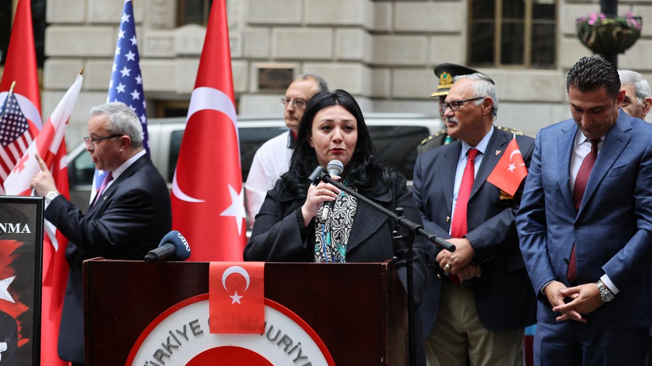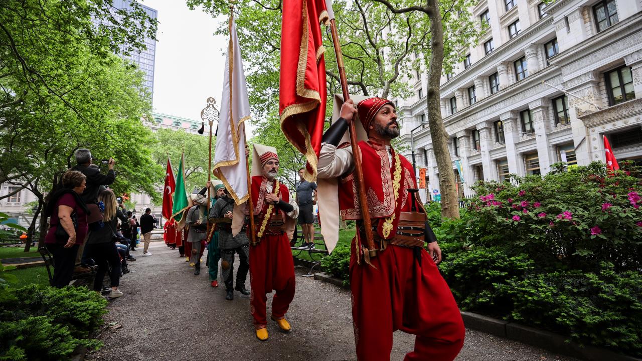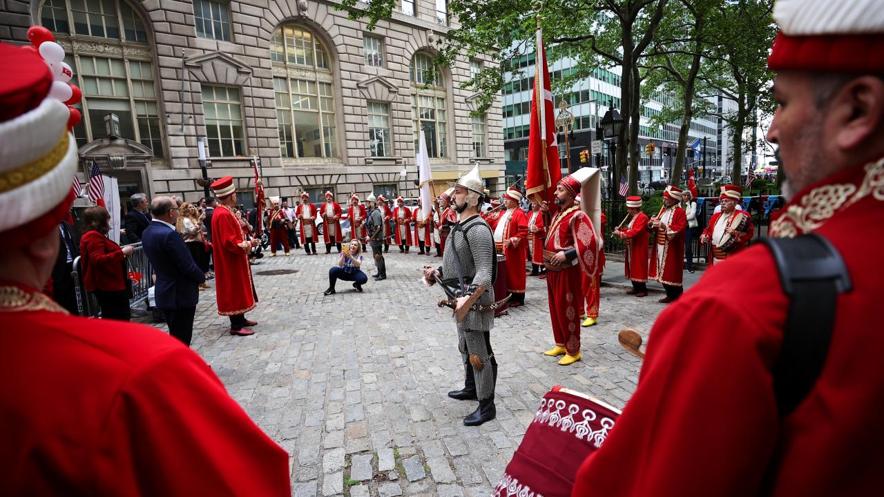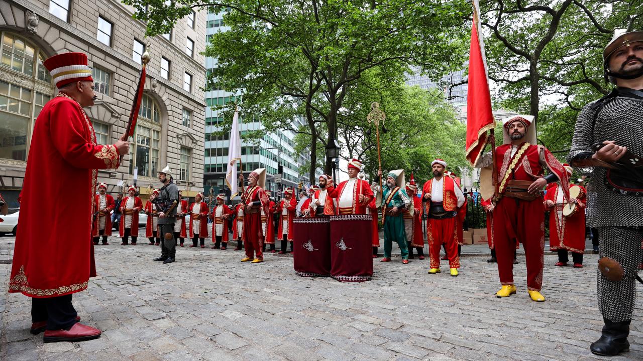 Mehter takımının da yer aldığı törene, Türkiye`nin New York Başkonsolosu Reyhan Özgür ile AK Parti Antalya Milletvekili Atay Uslu, AK Parti İstanbul Milletvekili Ravza Kavakcı Kan, MHP Genel Başkan Yardımcısı ve Ankara Milletvekili Mevlüt Karakaya da katıldı.