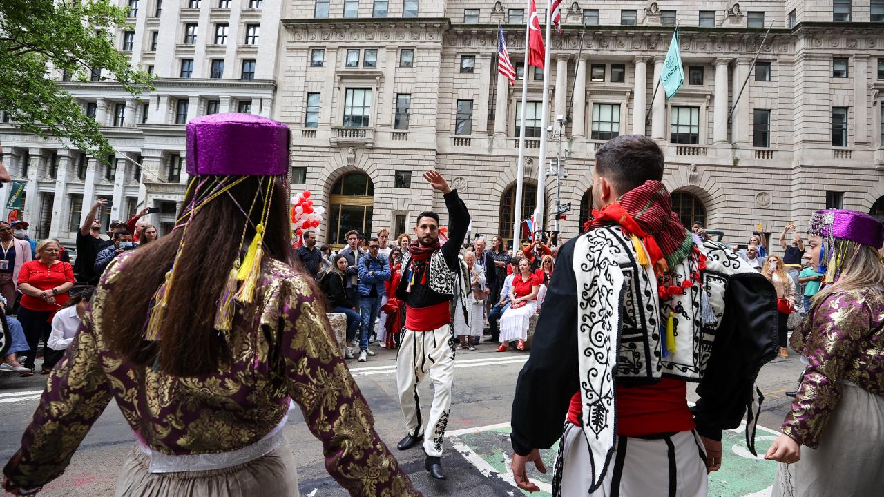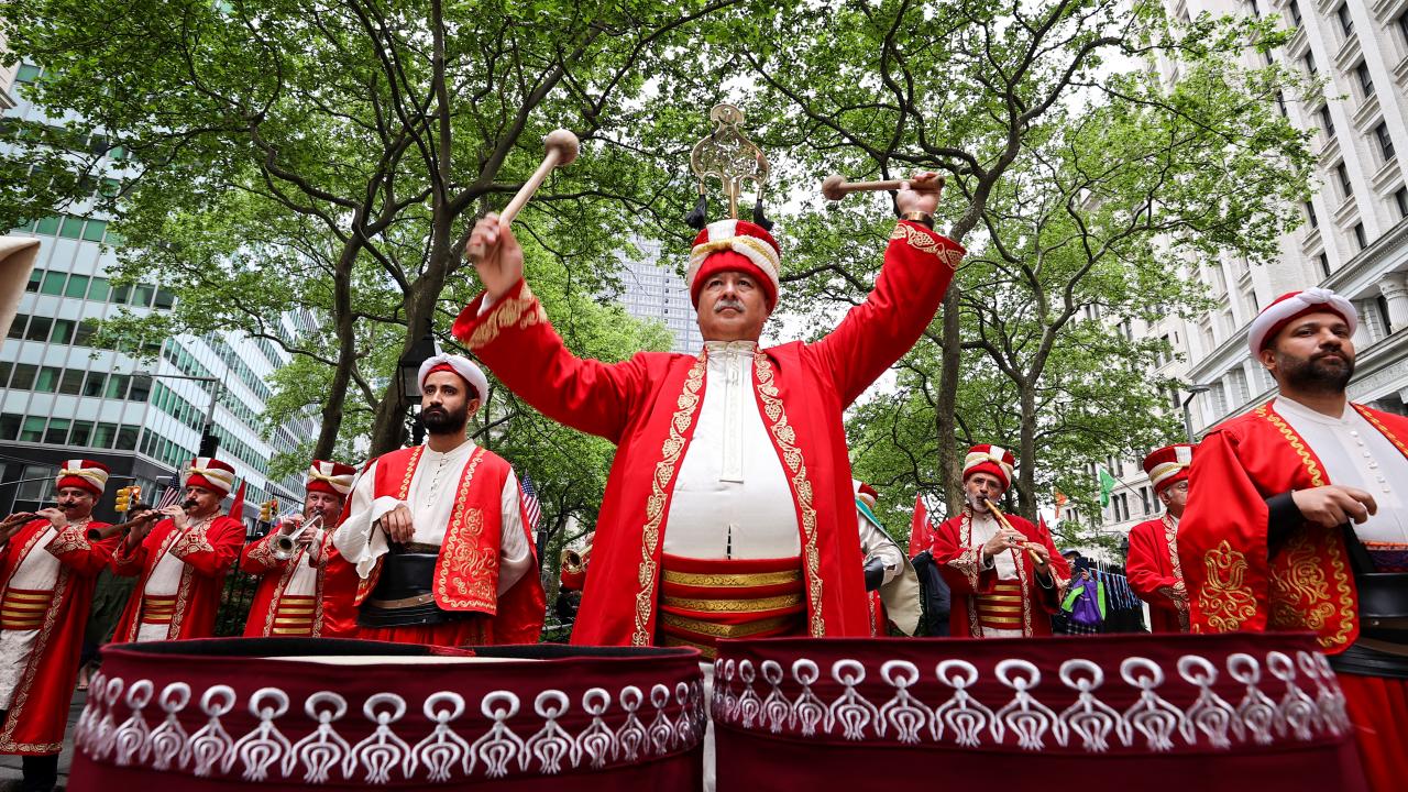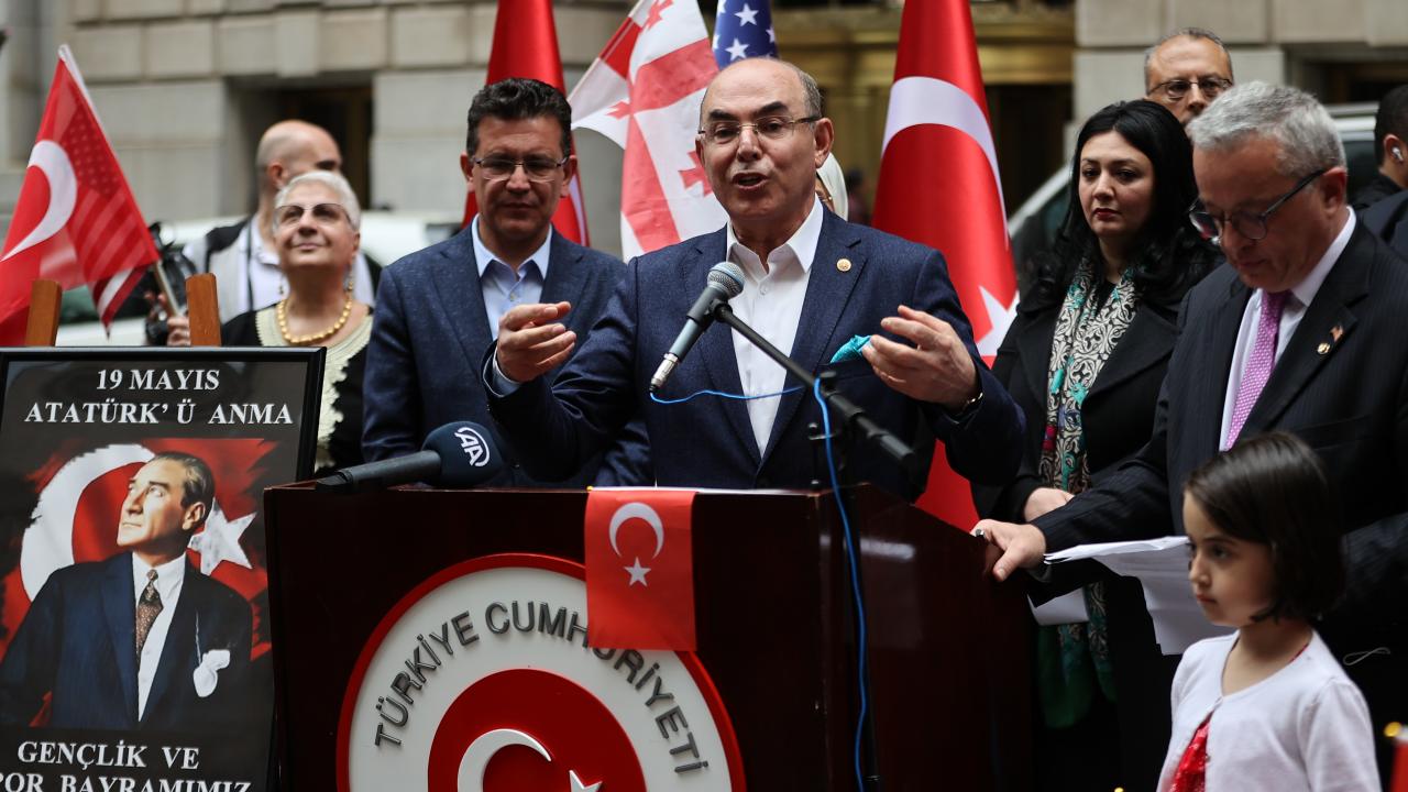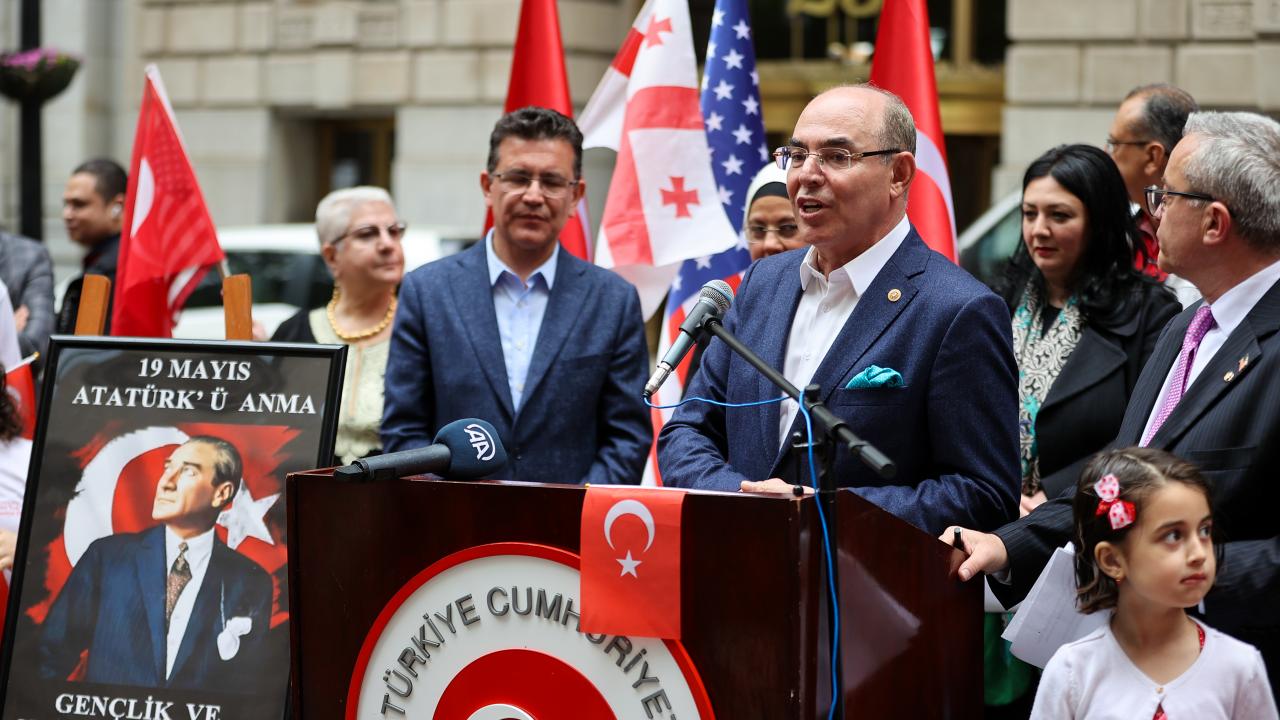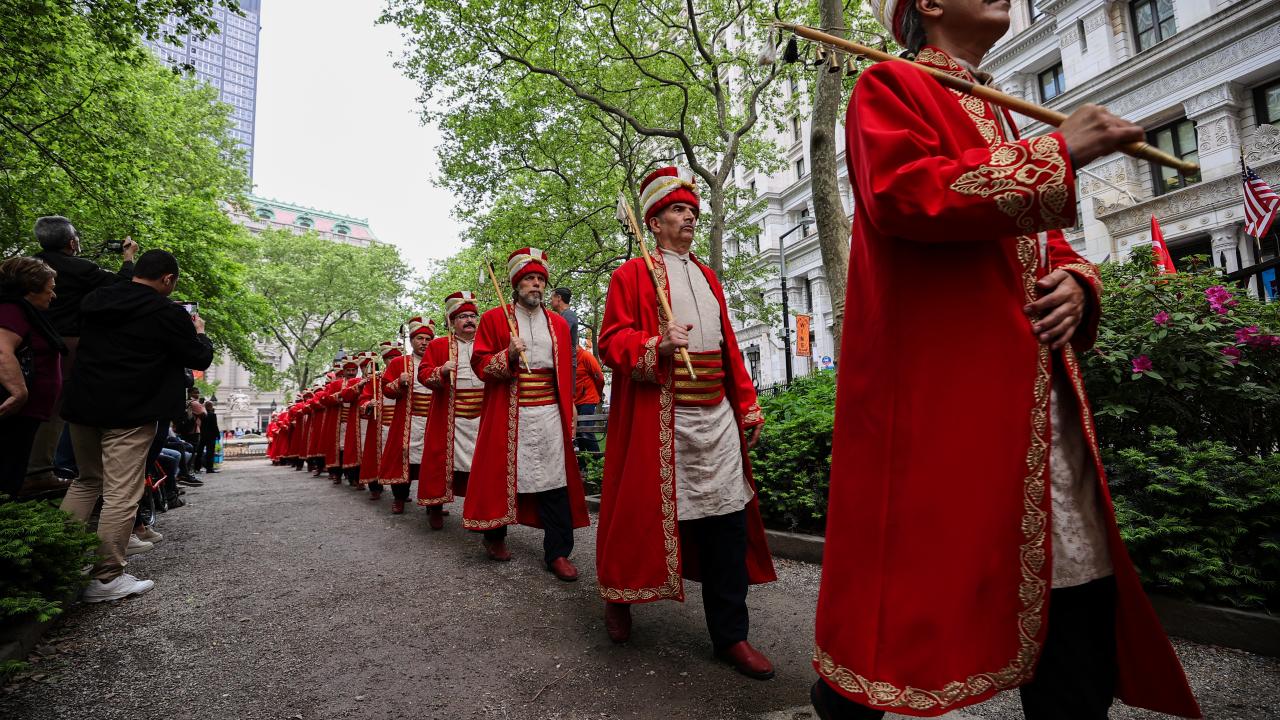 Mehter takımının da yer aldığı törene, Türkiye`nin New York Başkonsolosu Reyhan Özgür ile AK Parti Antalya Milletvekili Atay Uslu, AK Parti İstanbul Milletvekili Ravza Kavakcı Kan, MHP Genel Başkan Yardımcısı ve Ankara Milletvekili Mevlüt Karakaya da katıldı.