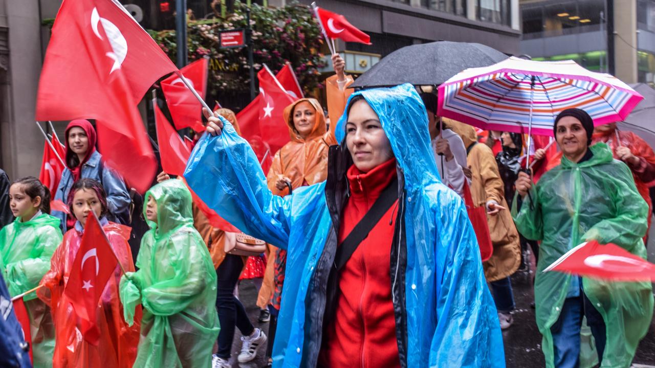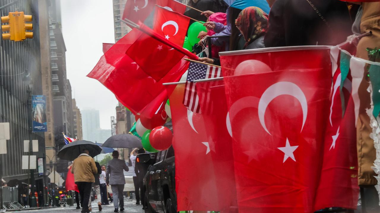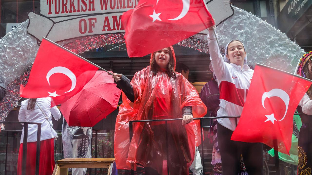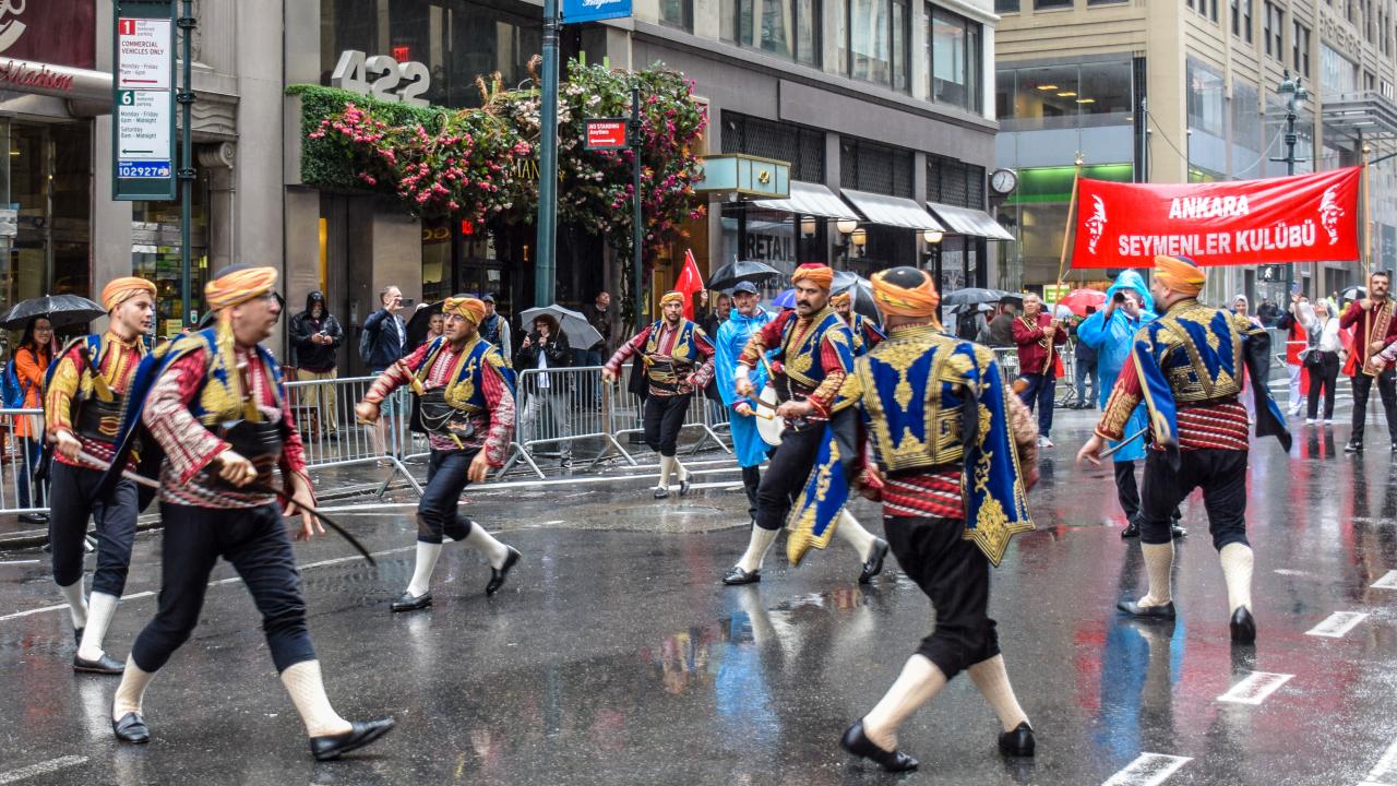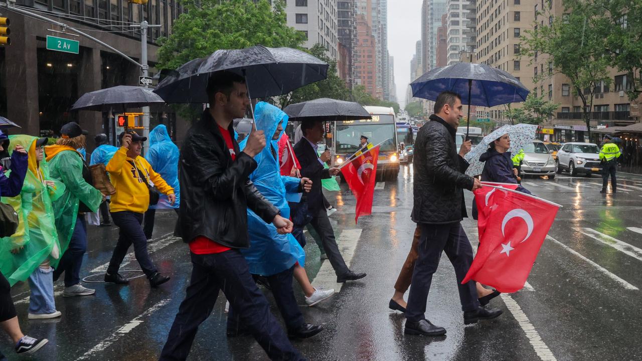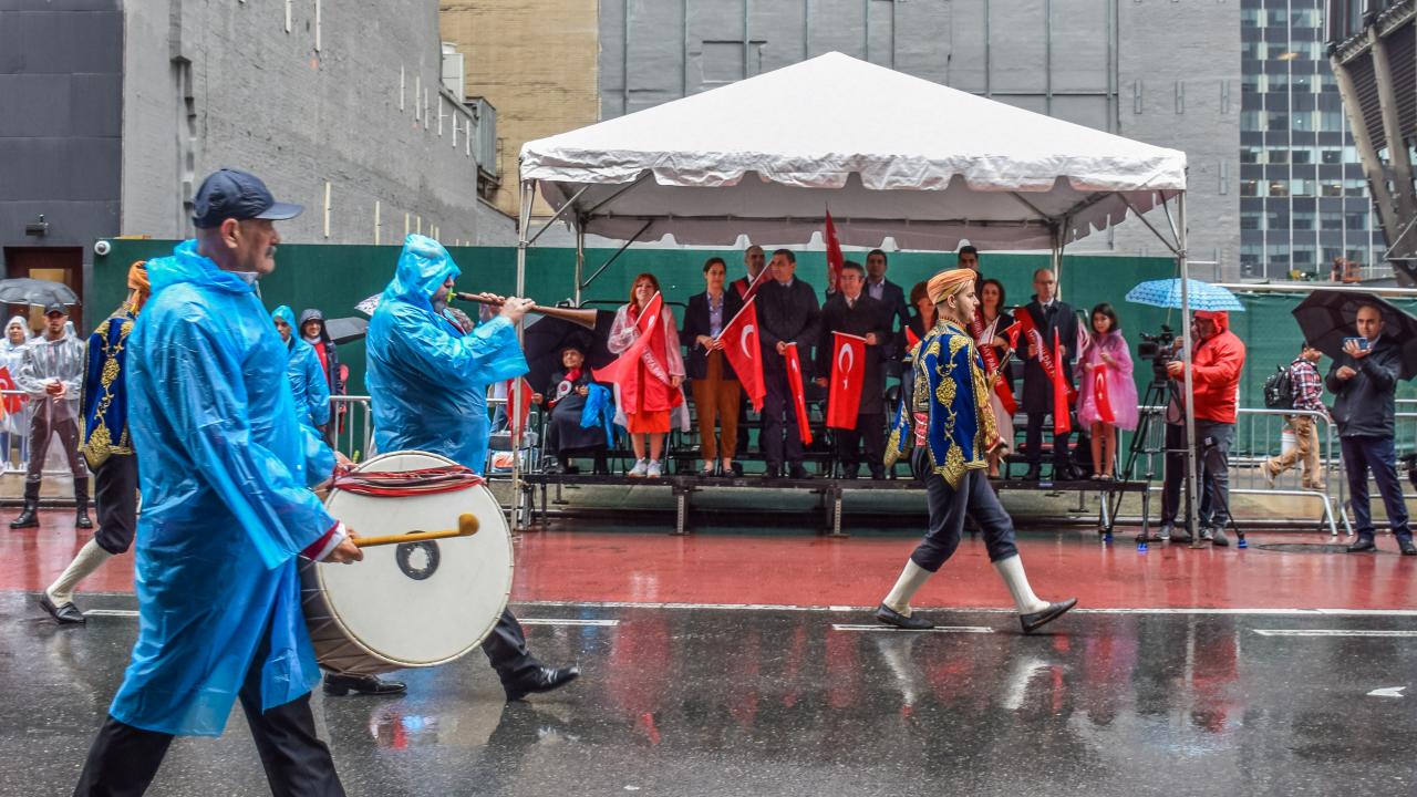 ABD'nin New York kentinde düzenlenen "Geleneksel Türk Günü Yürüyüşü"nün 40'ıncısında yağmura rağmen Türk-Amerikan toplumu vatandaşları, ünlü Manhattan sokaklarını kırmızı beyaza boyadı.