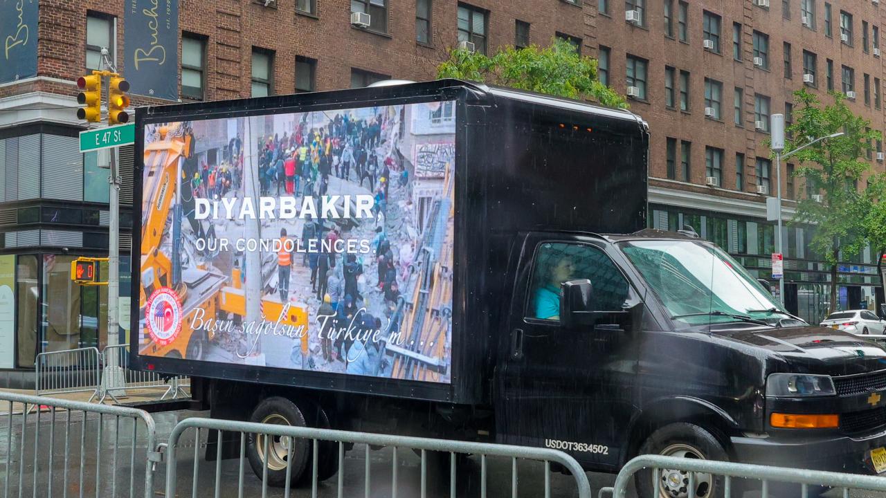 "Geleneksel Türk Günü Yürüyüşü" çerçevesinde her yıl büyük ilgi gören kortejde bu yıl 6 Şubat`ta gerçekleşen depremlerde hayatını kaybeden vatandaşlar anıldı. 11 siyah kamyonetin üzerindeki ekranlarda depremlerden etkilenen illerin isimleri ve fotoğrafları yer alırken, Türkçe ve İngilizce olarak "Başın sağ olsun" Türkiye mesajı gösterildi.