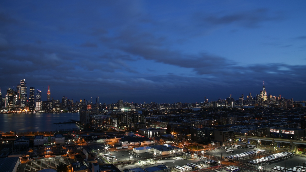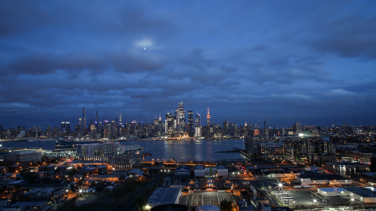 ABD'nin New York kentindeki Manhattan bölgesi ve Hoboken şehrinin ışıklarının gece saatlerinde oluşturduğu güzel manzara, New Jersey tarafından görülüyor.