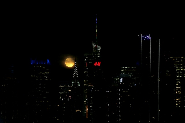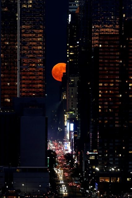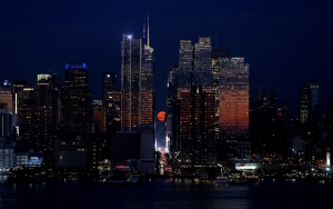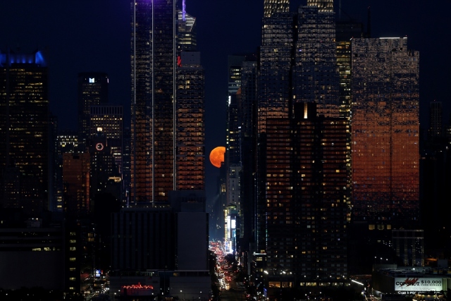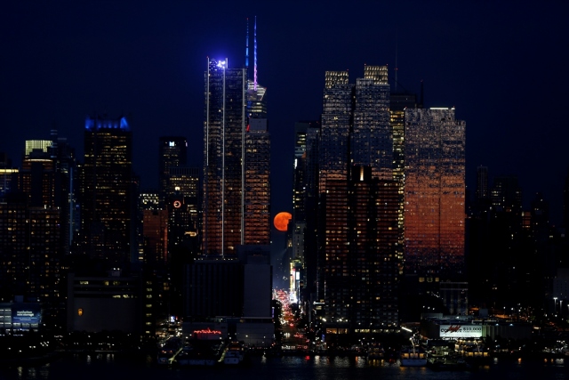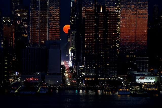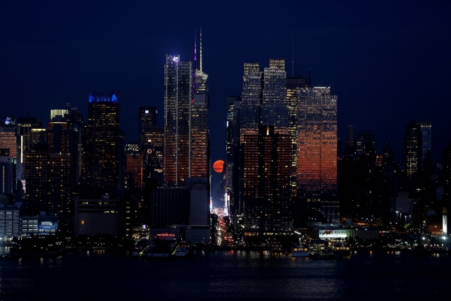 Çilek Ay olarak da bilinen dolunay New York'taki 42. Cadde üzerinde yükseldi.