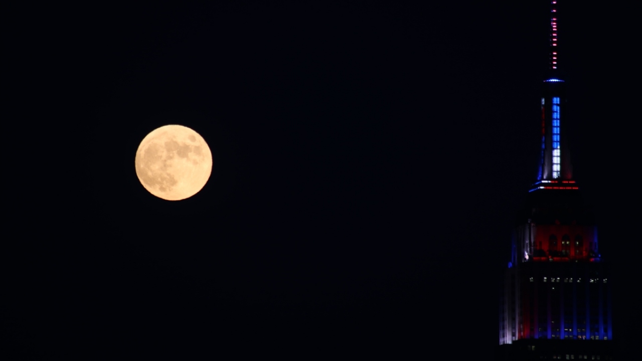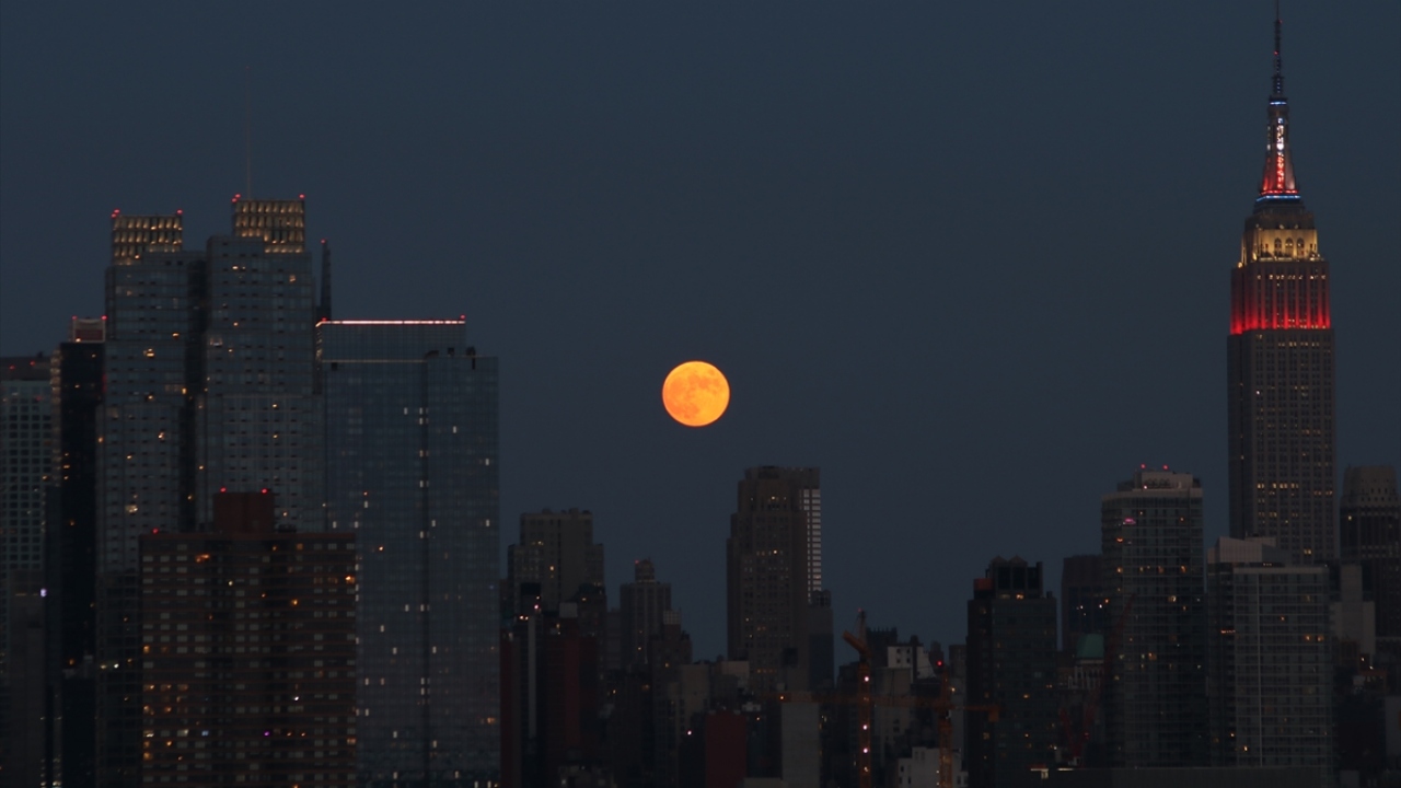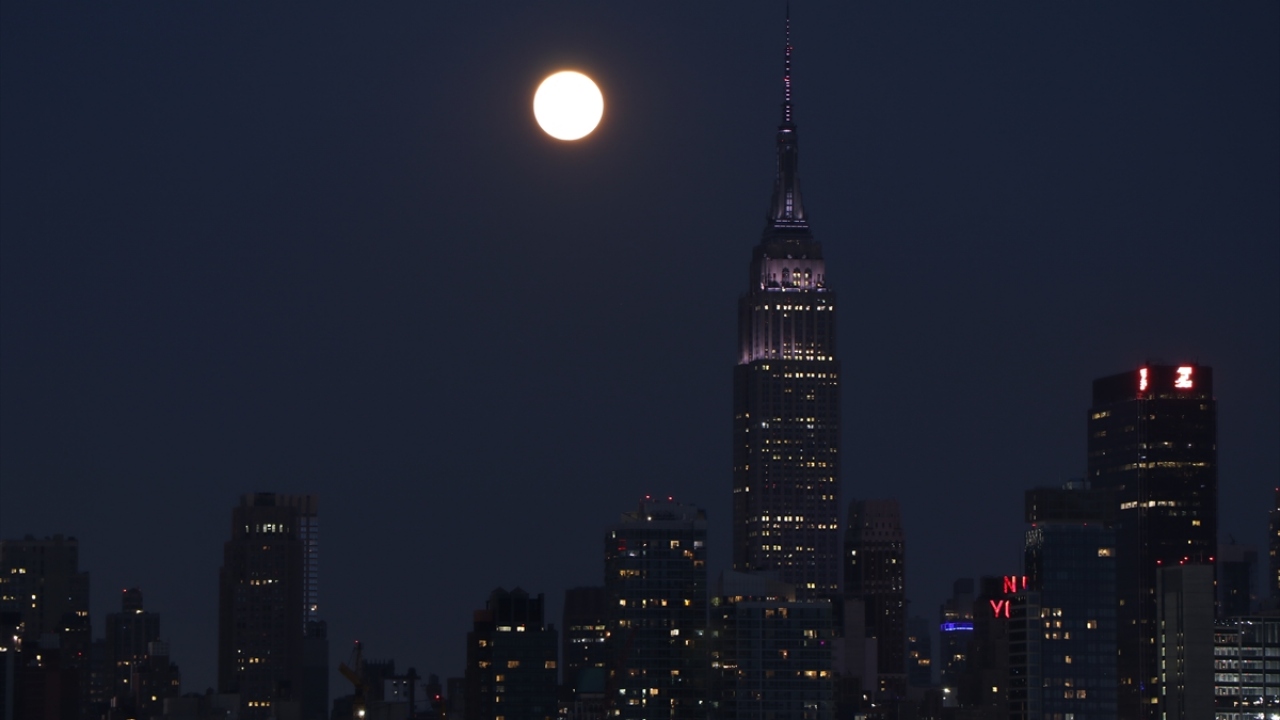 ABD New York'ta "Bağımsızlık Günü" kutlamaları için yapılacak havai fişek gösterisi öncesinde, Empire State Binası üzerinde yükselen dolunay güzel görüntü oluşturdu.