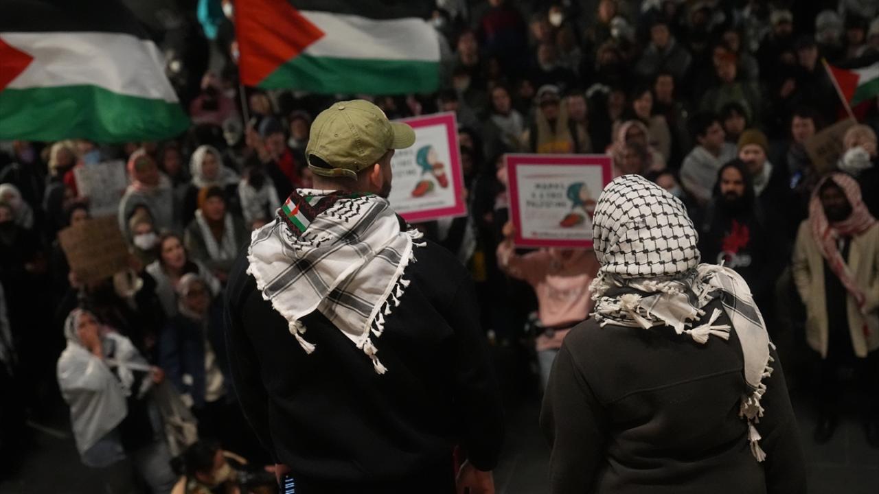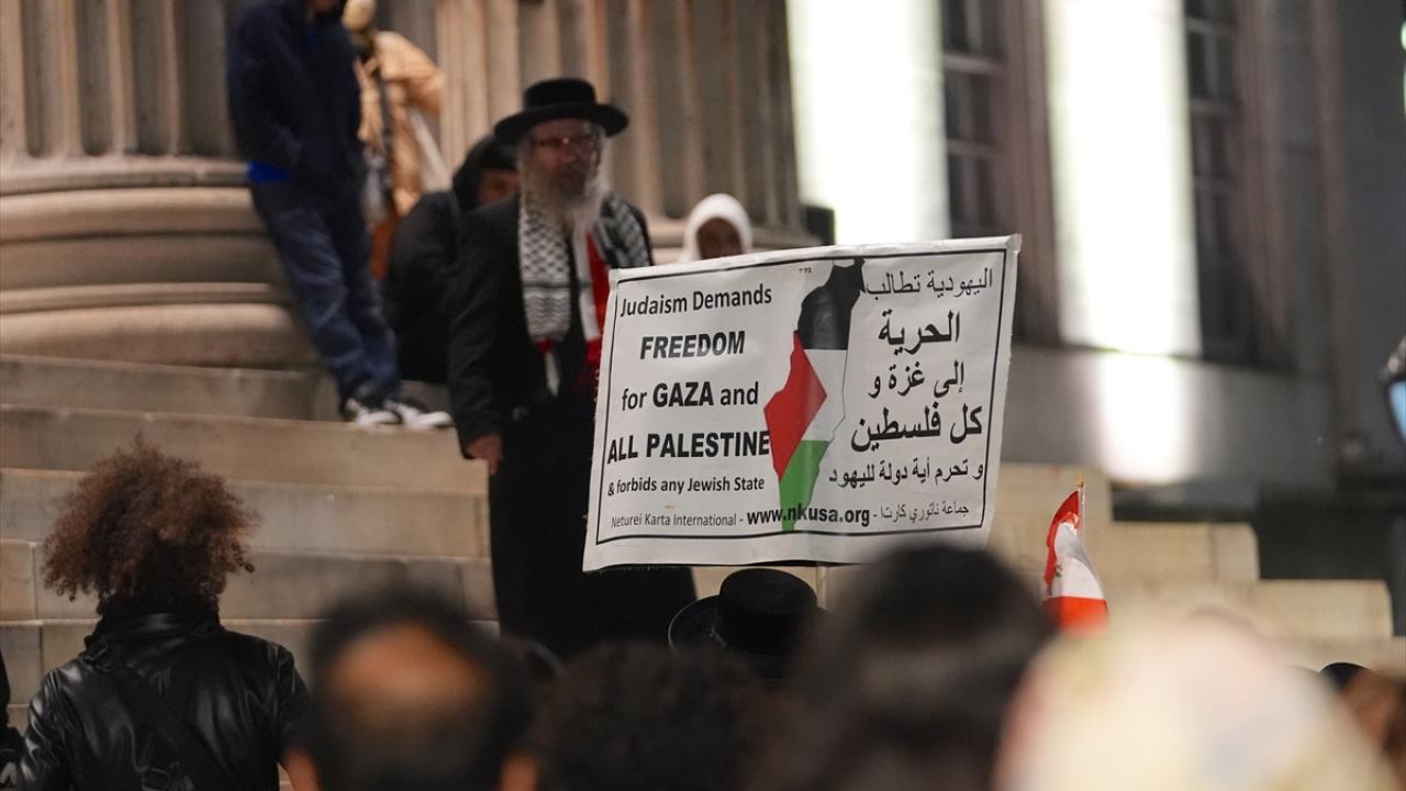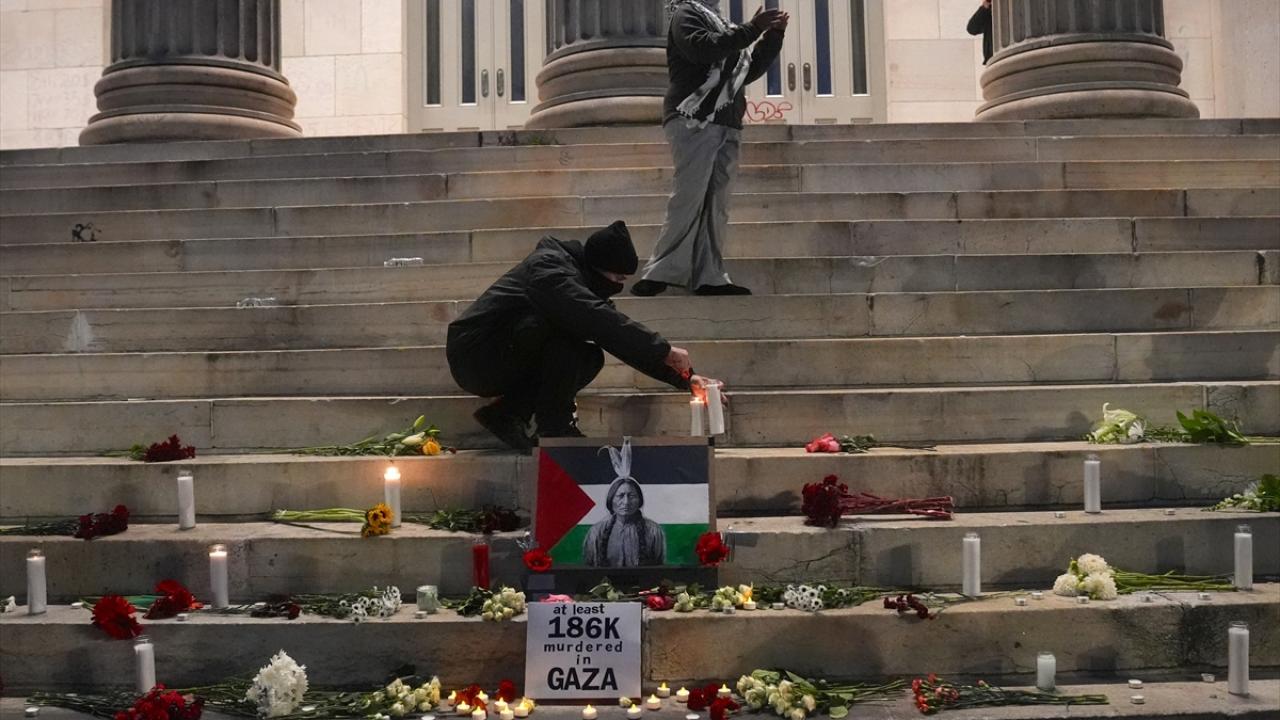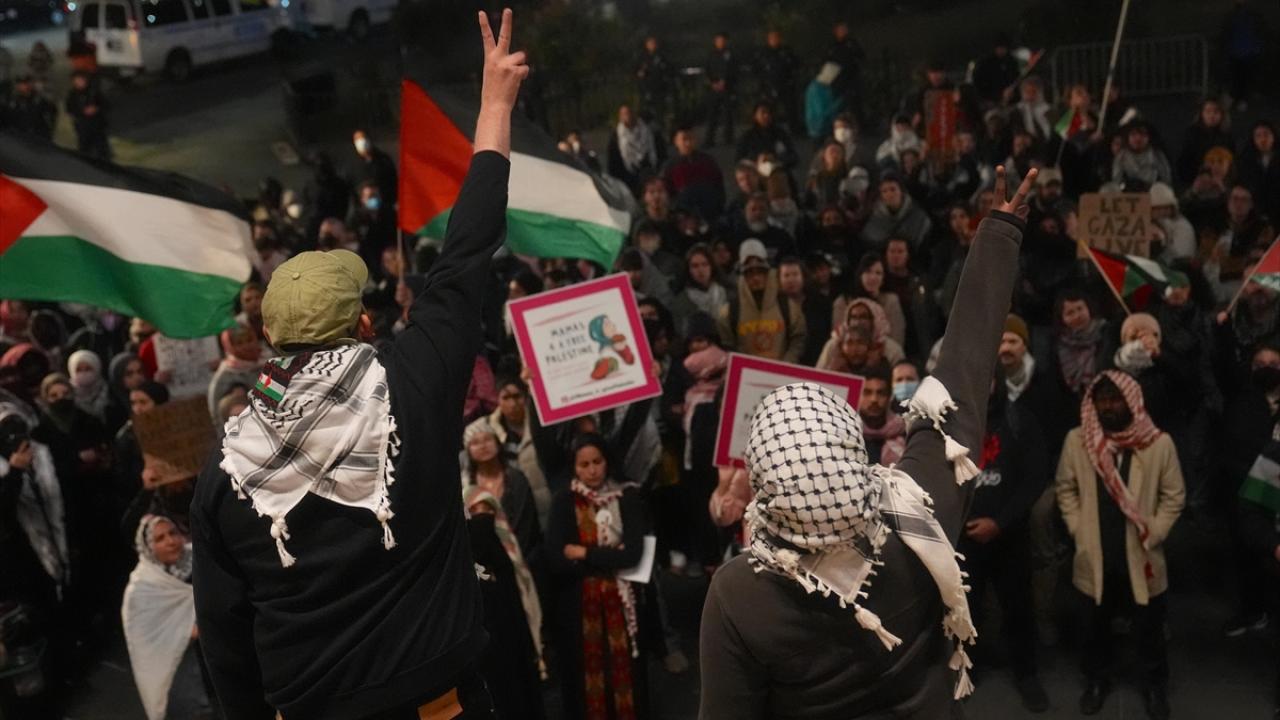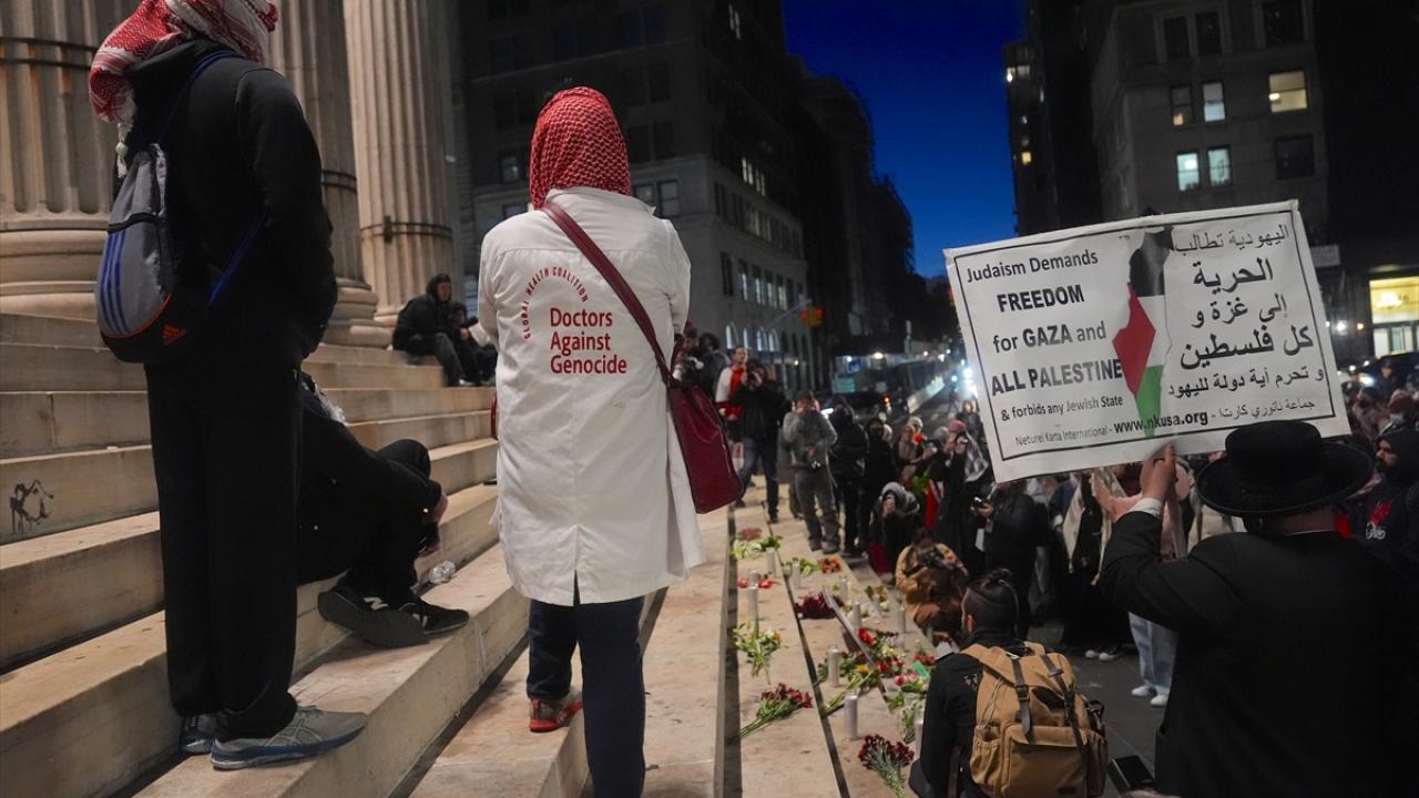 ABD'de Filistin destekçileri, İsrail'in Gazze'deki Al Aksa Şehitleri Hastanesi'ne düzenlediği hava saldırılarının ardından Brooklyn Borough Hall önünde acil bir gösteri ve anma töreni düzenledi.