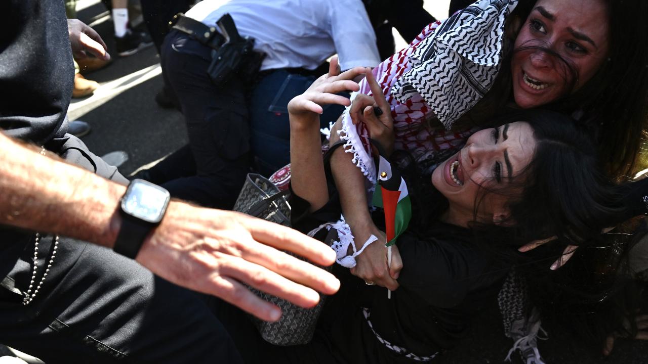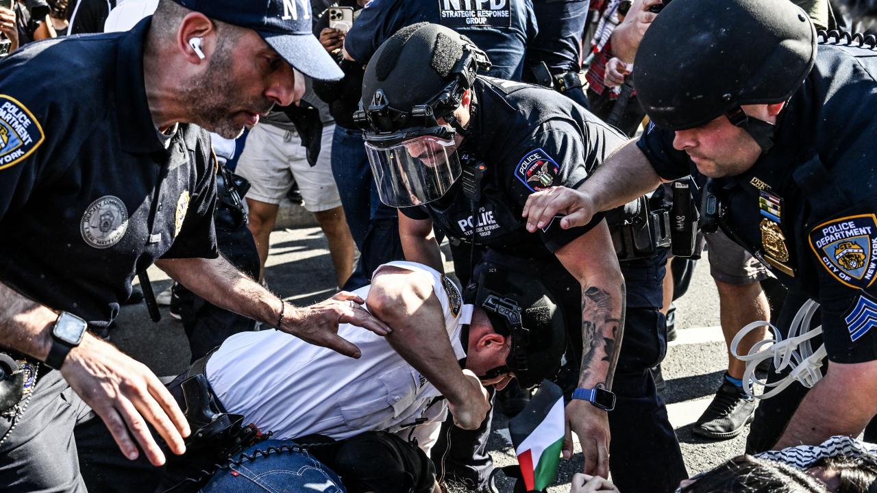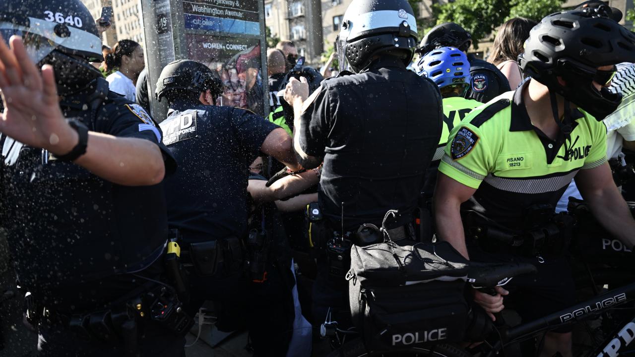 Brooklyn bölgesinde toplanan göstericiler, İsrail ordusunun Refah kentinde yerinden edilmiş Filistinlilerin kampına düzenlediği saldırıya tepki gösterirken polisin sert müdahalesiyle karşılaştı, çok sayıda kişi gözaltına alındı.