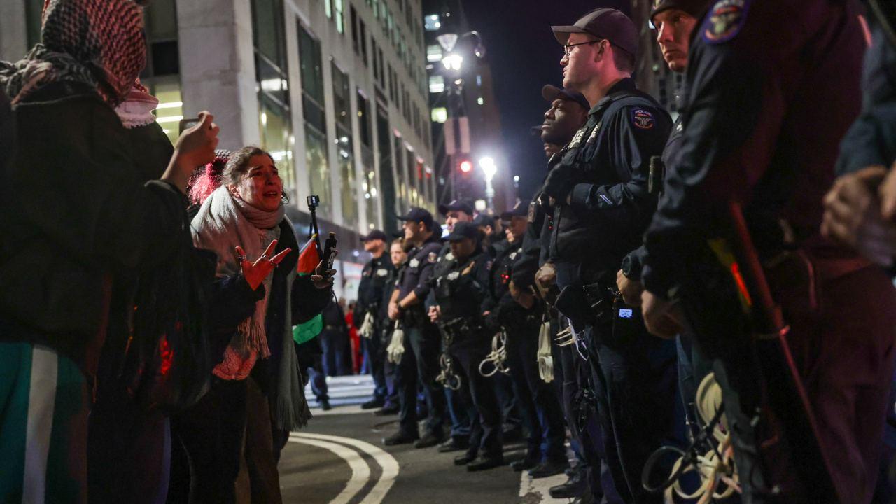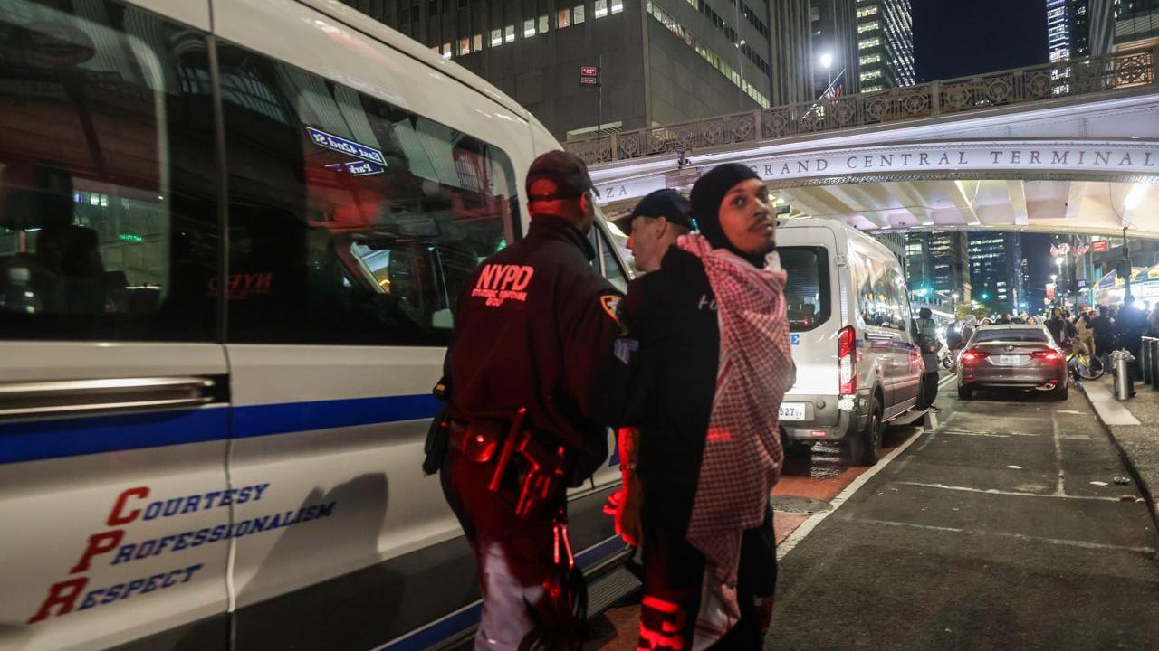 ABD'nin New York eyaletinde `Flood Manhattan for Gaza` protestosu kapsamında binlerce gösterici Filistin'e destek için Columbus Circle'dan Grand Central Terminali'ne yürüdü.