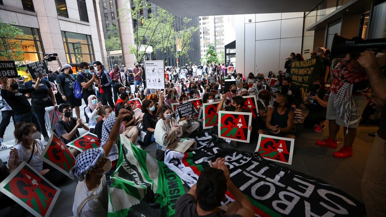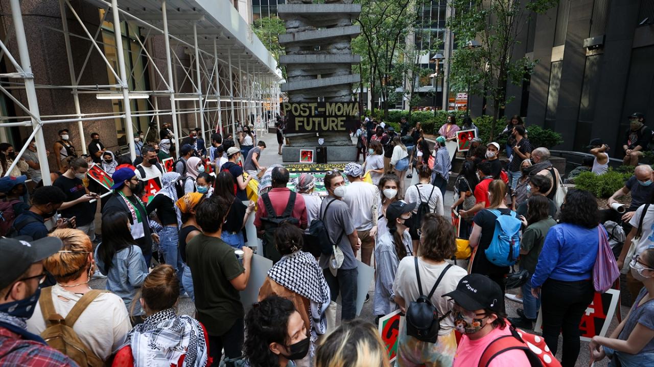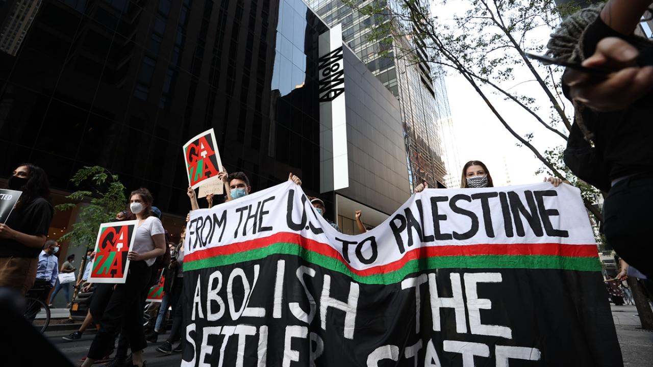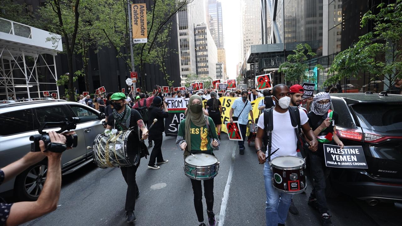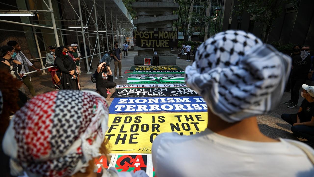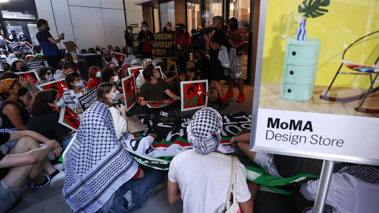 ABD'nin New York kentinde bulunan Modern Sanat Müzesi (MoMA) önünde toplanan göstericiler "Filistin'e özgürlük" ve "MoMA karşıtı" protesto gösterisi düzenledi.