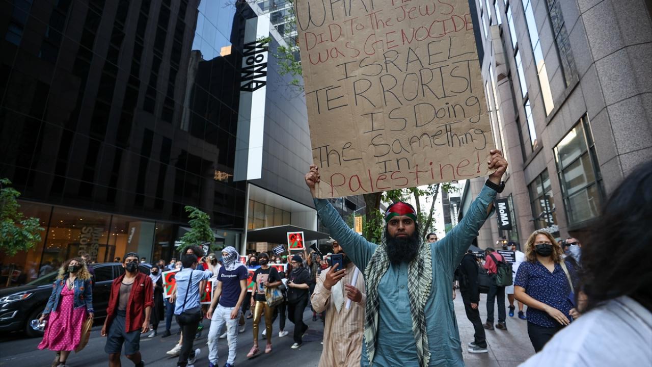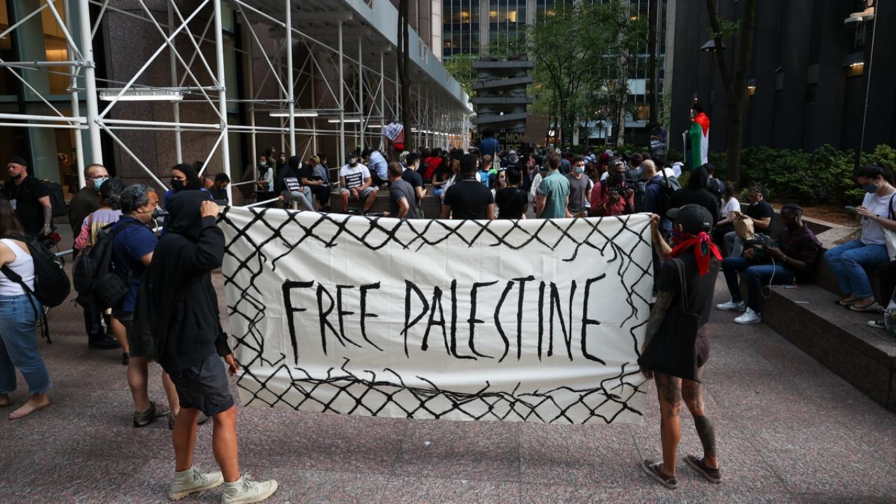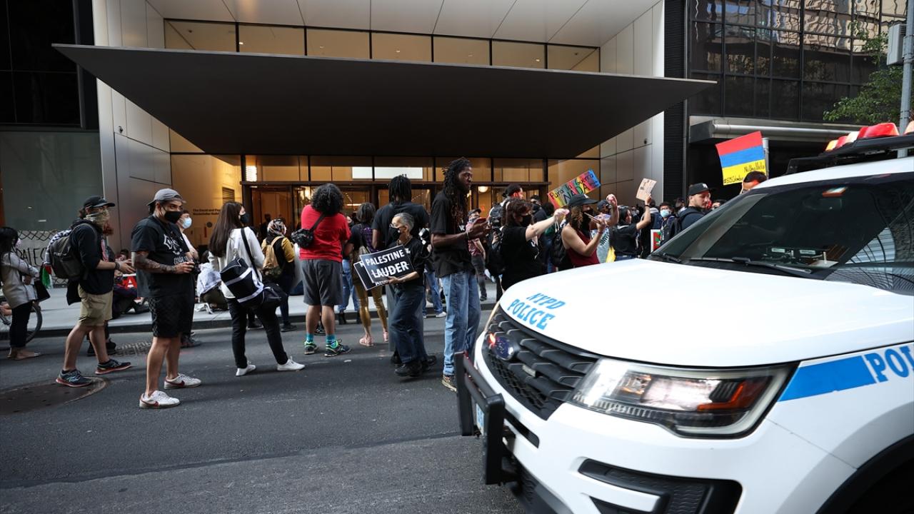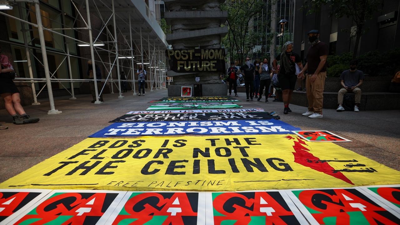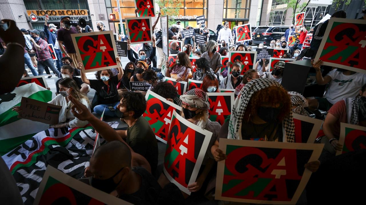 ABD'nin New York kentinde bulunan Modern Sanat Müzesi (MoMA) önünde toplanan göstericiler "Filistin'e özgürlük" ve "MoMA karşıtı" protesto gösterisi düzenledi.