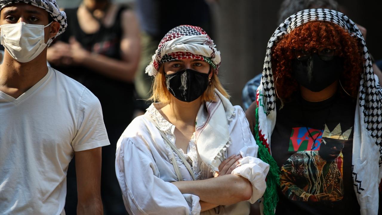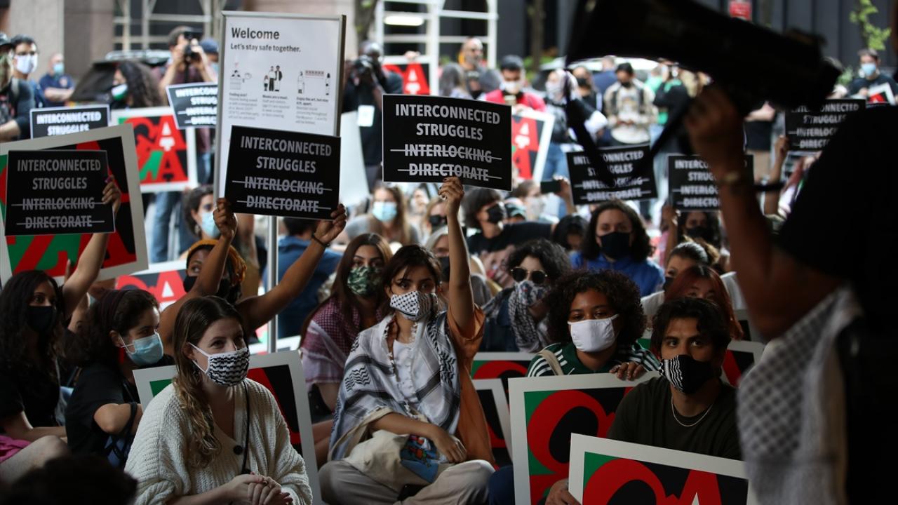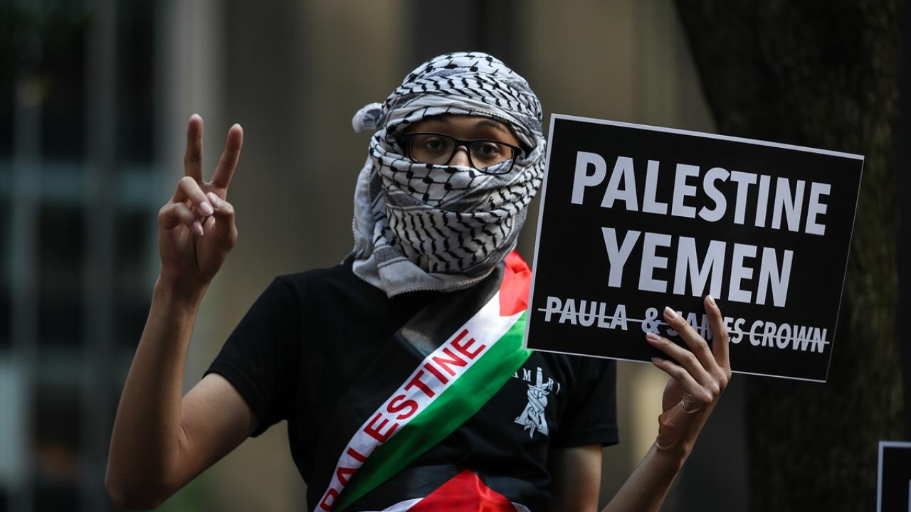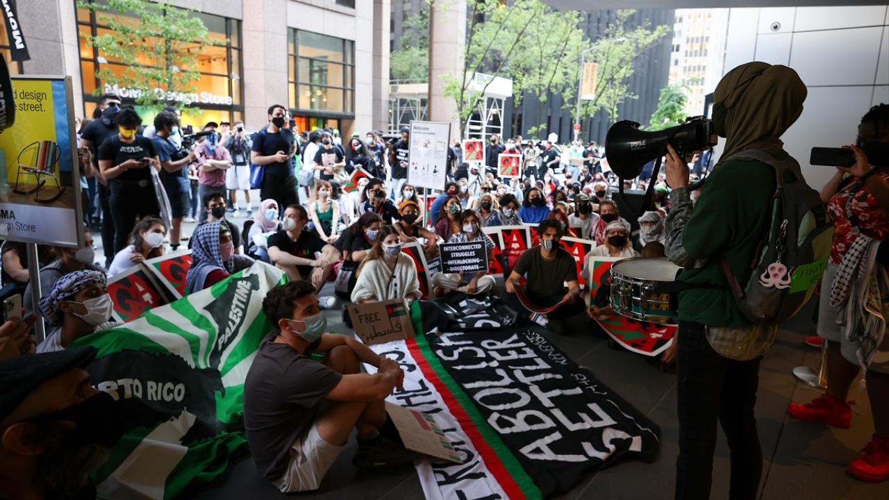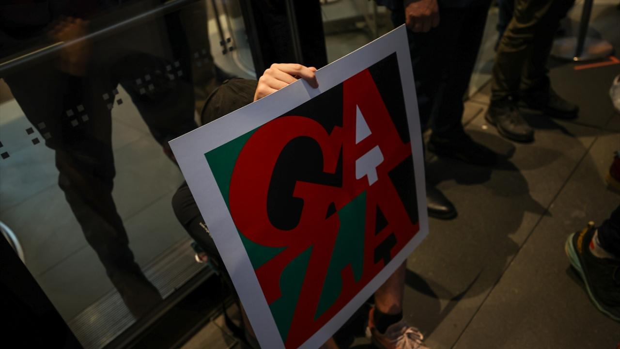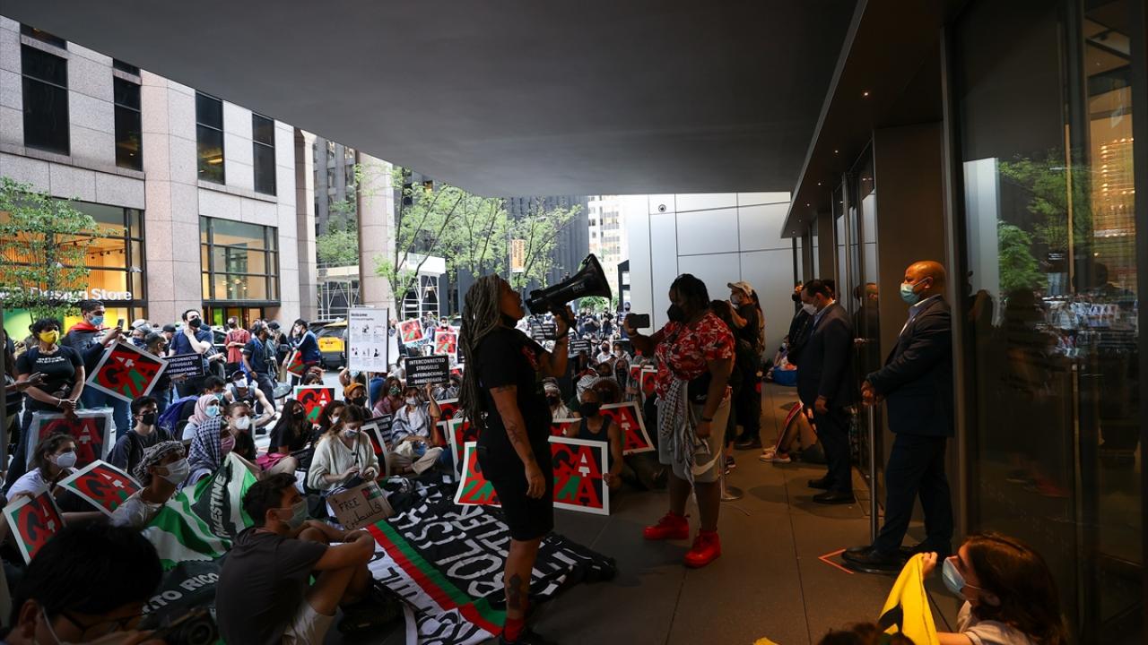 ABD'nin New York kentinde bulunan Modern Sanat Müzesi (MoMA) önünde toplanan göstericiler "Filistin'e özgürlük" ve "MoMA karşıtı" protesto gösterisi düzenledi.