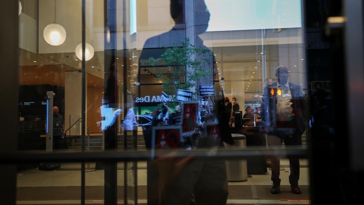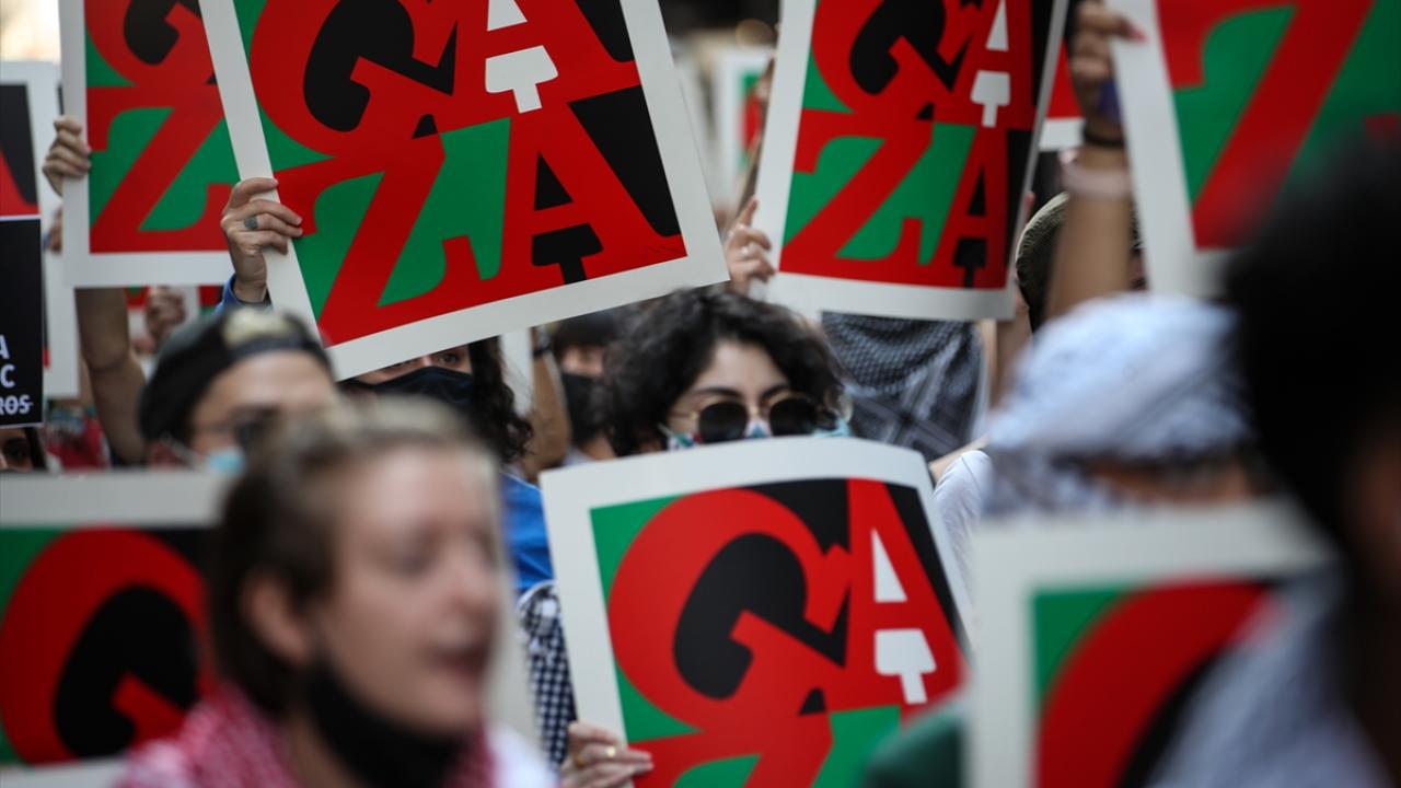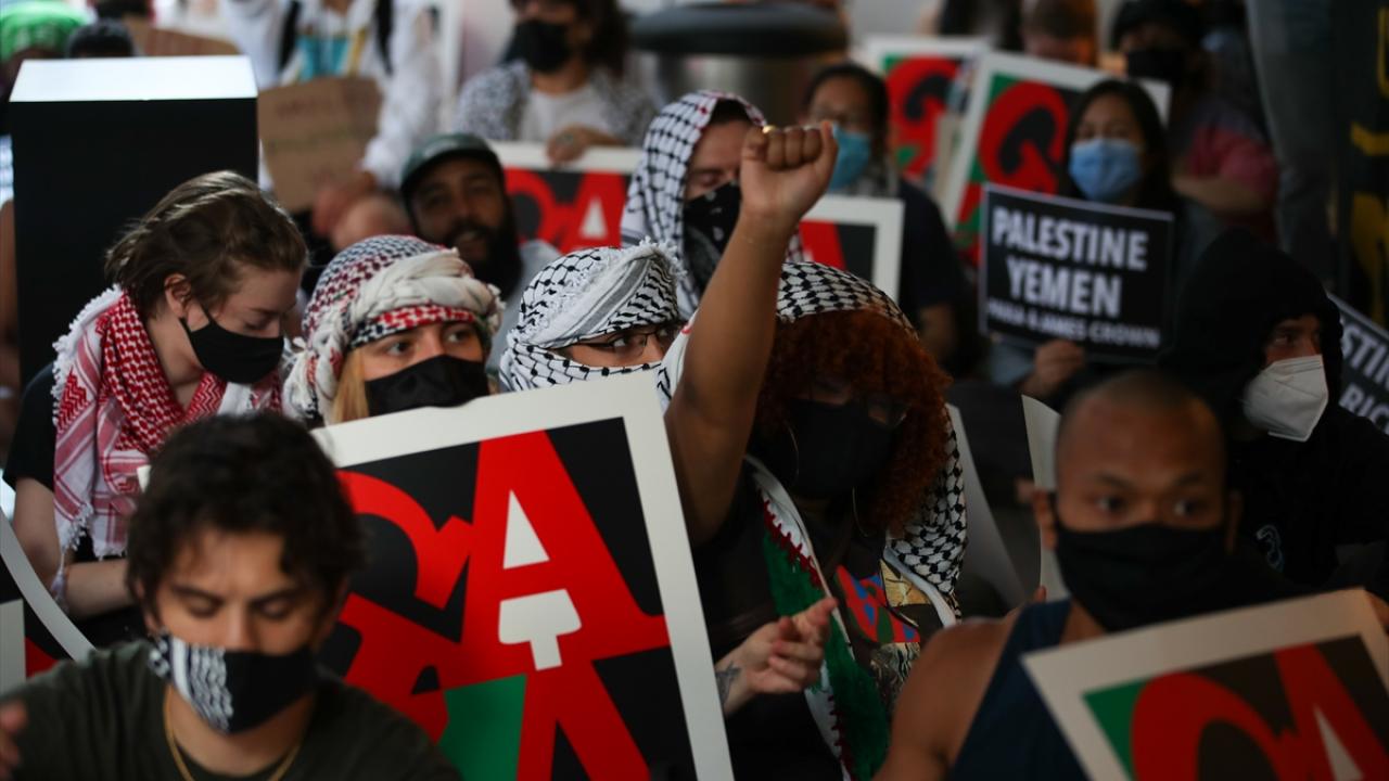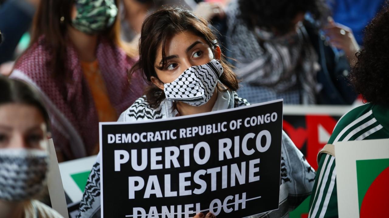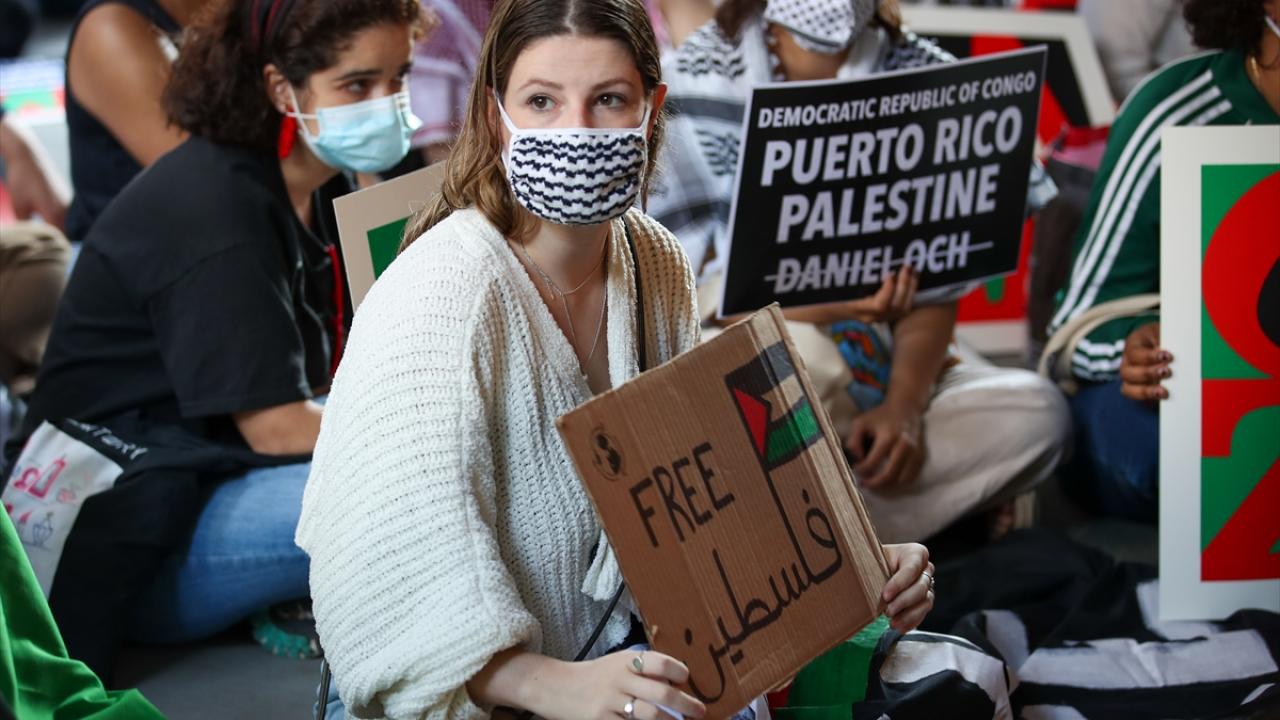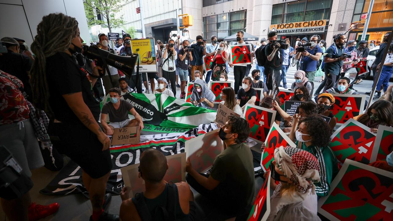 ABD'nin New York kentinde bulunan Modern Sanat Müzesi (MoMA) önünde toplanan göstericiler "Filistin'e özgürlük" ve "MoMA karşıtı" protesto gösterisi düzenledi.
