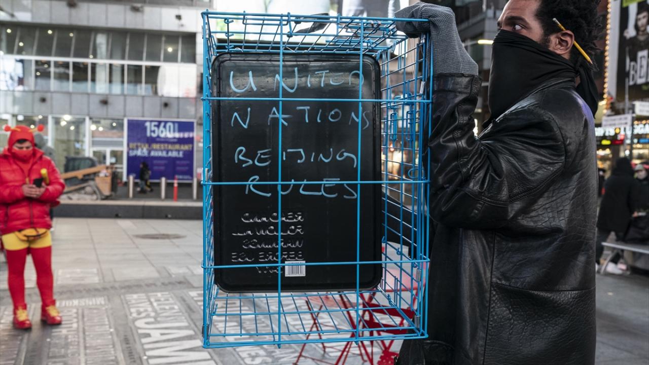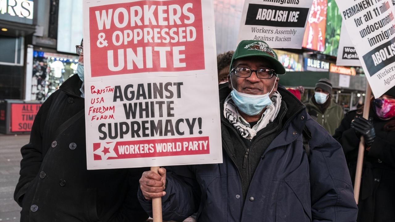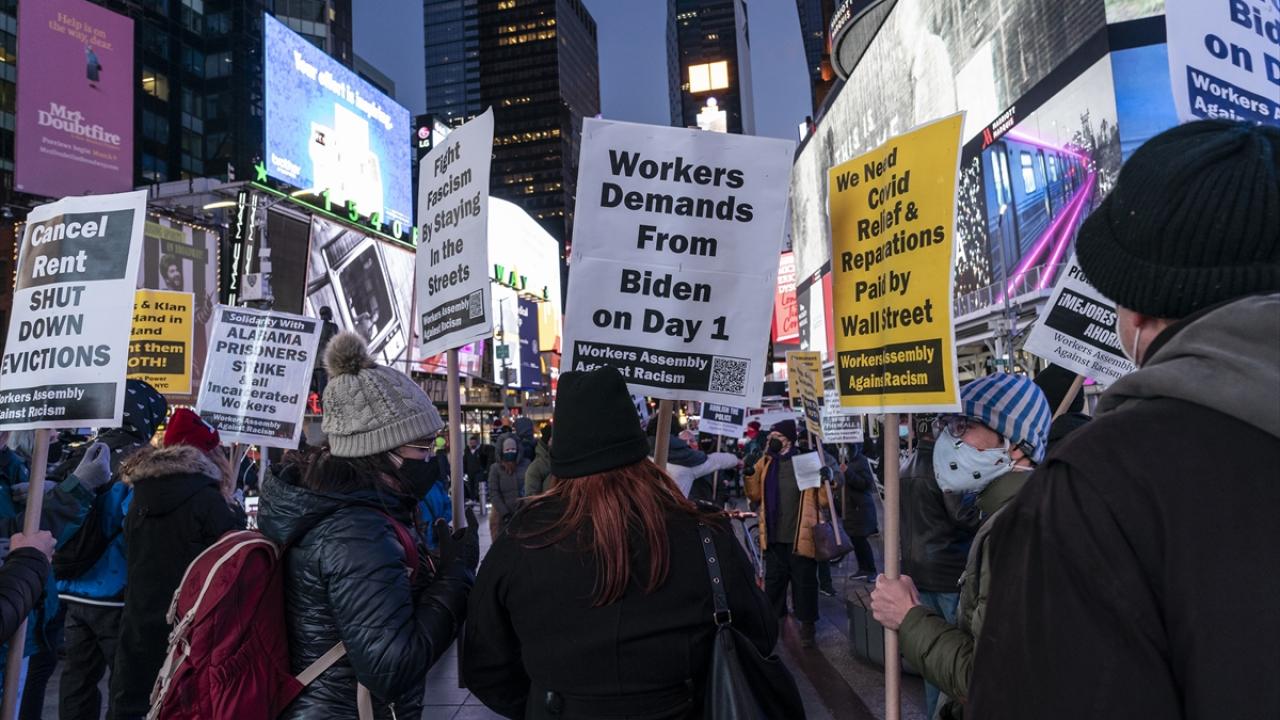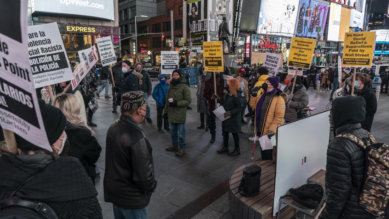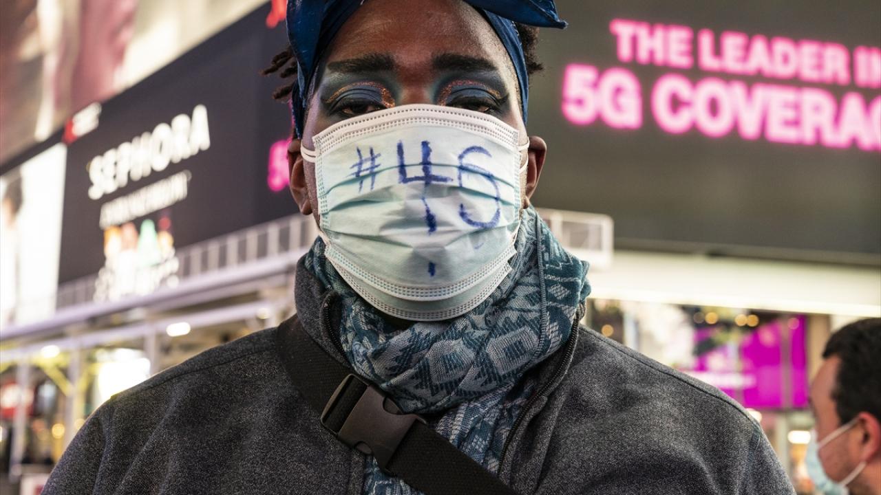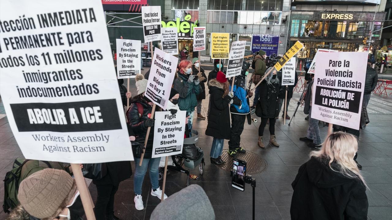 ABD'de seçilmiş Başkan Joe Biden'ın başkent Washington'daki Kongre binasında düzenlenen yemin töreniyle görevine başlamasının ardından, New York'taki Times Meydanı'nda toplanan bir grup ırkçılık karşıtı gösteri düzenledi.