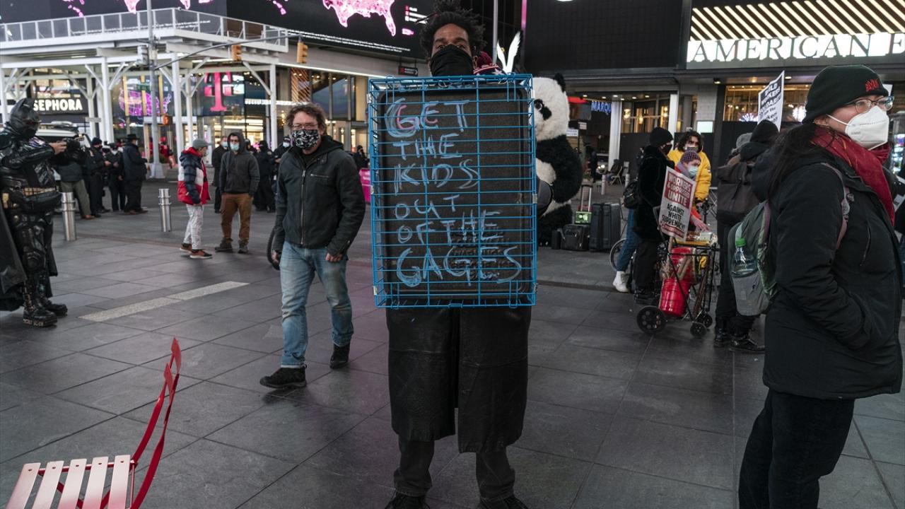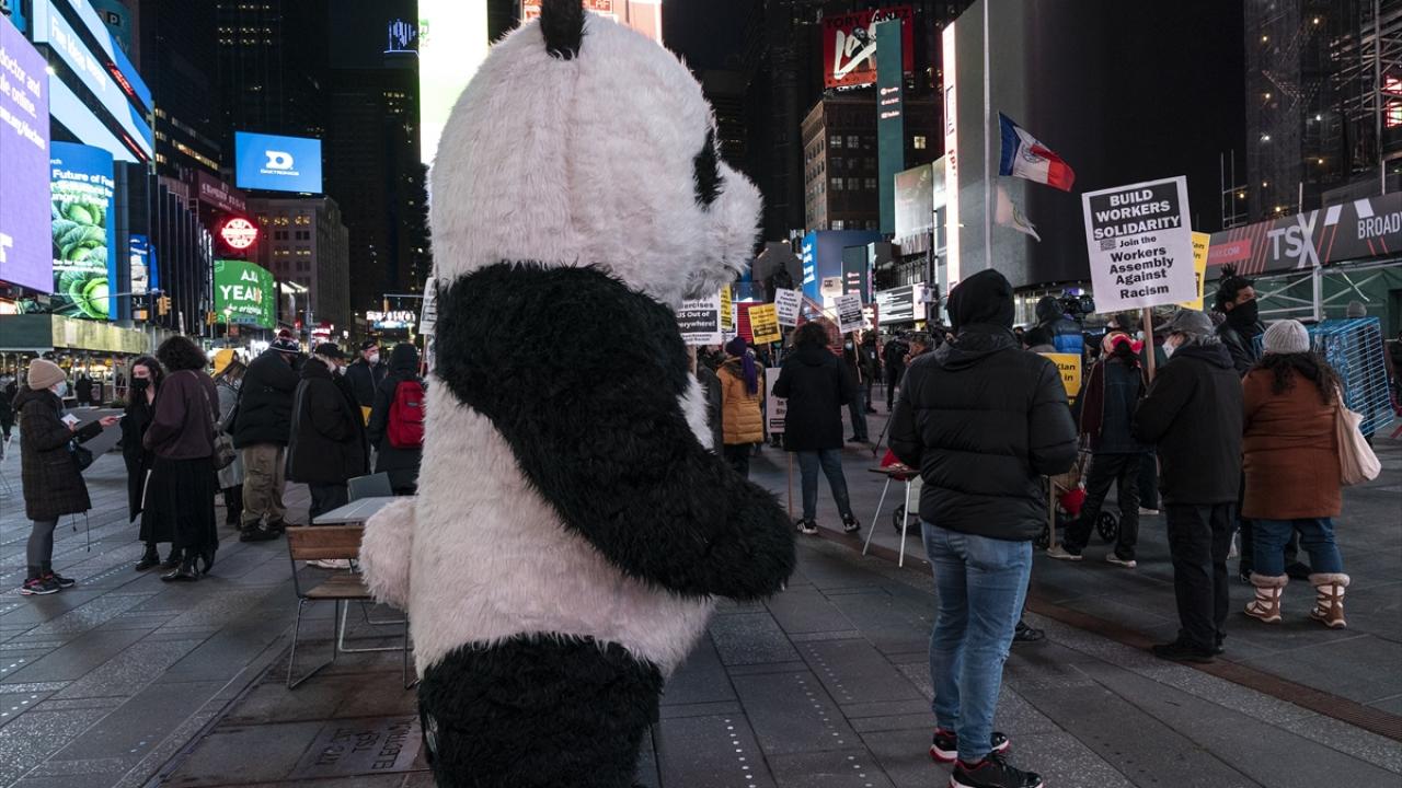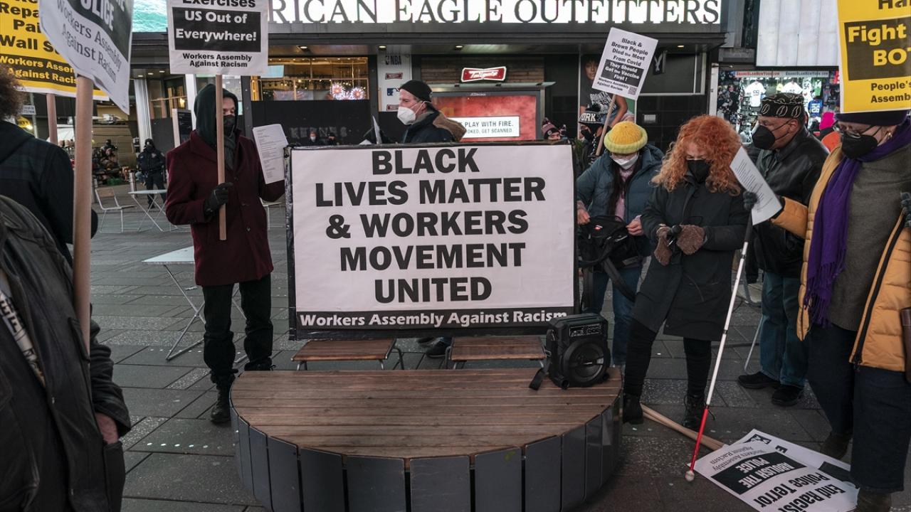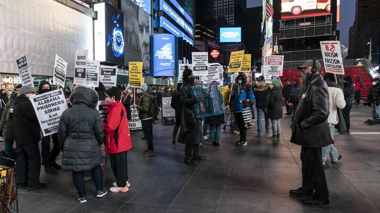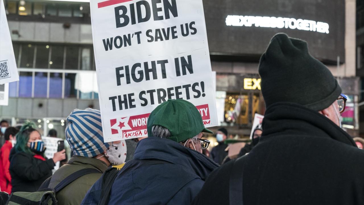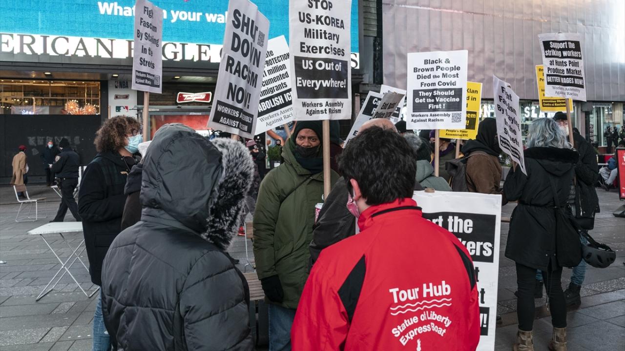 ABD'de seçilmiş Başkan Joe Biden'ın başkent Washington'daki Kongre binasında düzenlenen yemin töreniyle görevine başlamasının ardından, New York'taki Times Meydanı'nda toplanan bir grup ırkçılık karşıtı gösteri düzenledi.