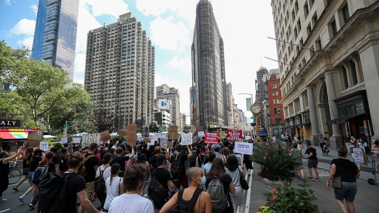 ABD'de siyahi George Floyd'un polis şiddeti sonucu hayatını kaybetmesinin ardından başlayan protestolar devam ediyor. Göstericiler, Manhattan'daki Madison Square Park ve çevresinde ırkçılık karşıtı protestolarına devam etti.