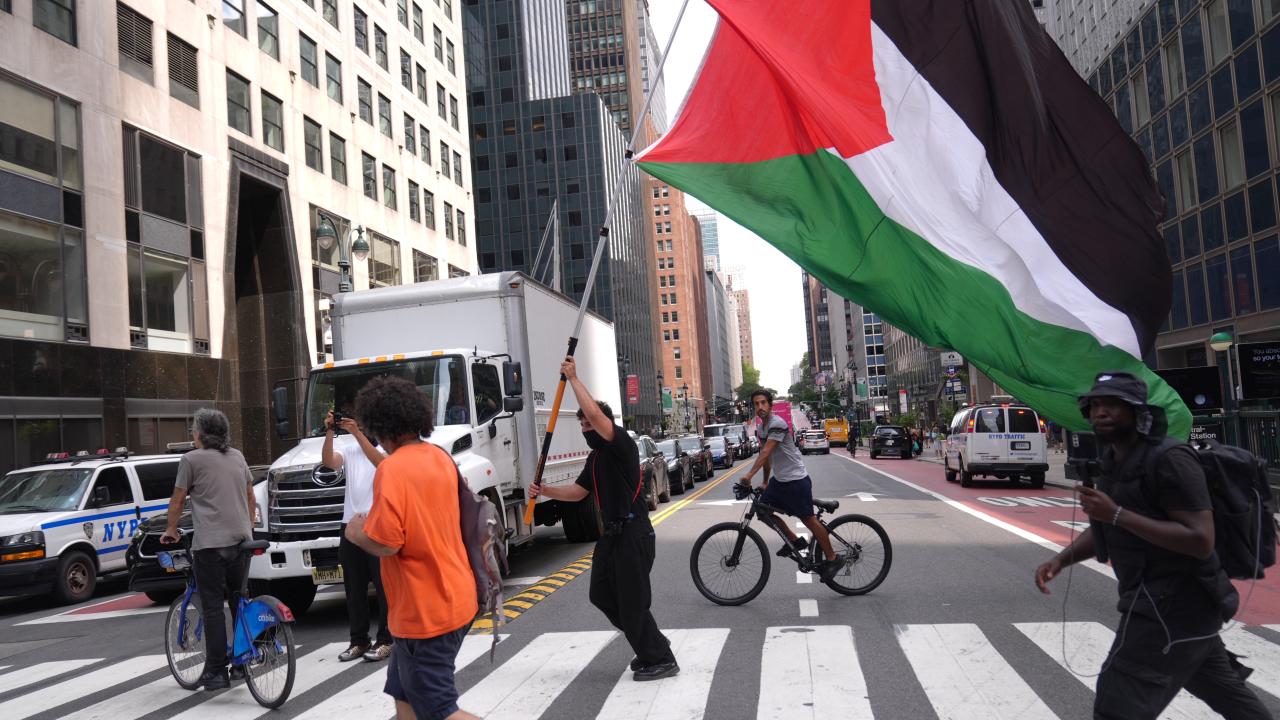 ABD'nin New York kentindeki Manhattan bölgesinde bir araya gelen Filistin yanlısı göstericiler, pankartlar ve Filistin bayrakları taşıyarak, Gazze'ye yönelik ablukanın sona ermesini ve Gazze'ye temel gıda malzemelerinin ulaştırılması talebiyle yürüyüş düzenledi.