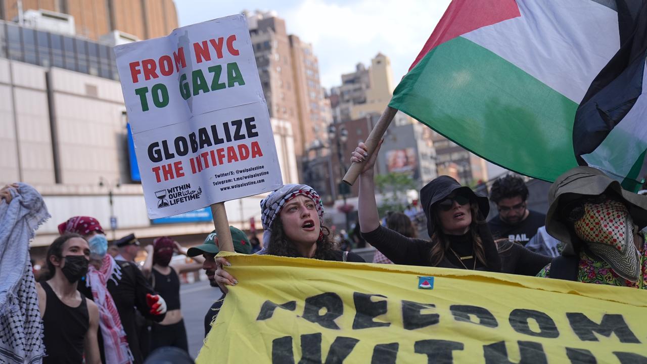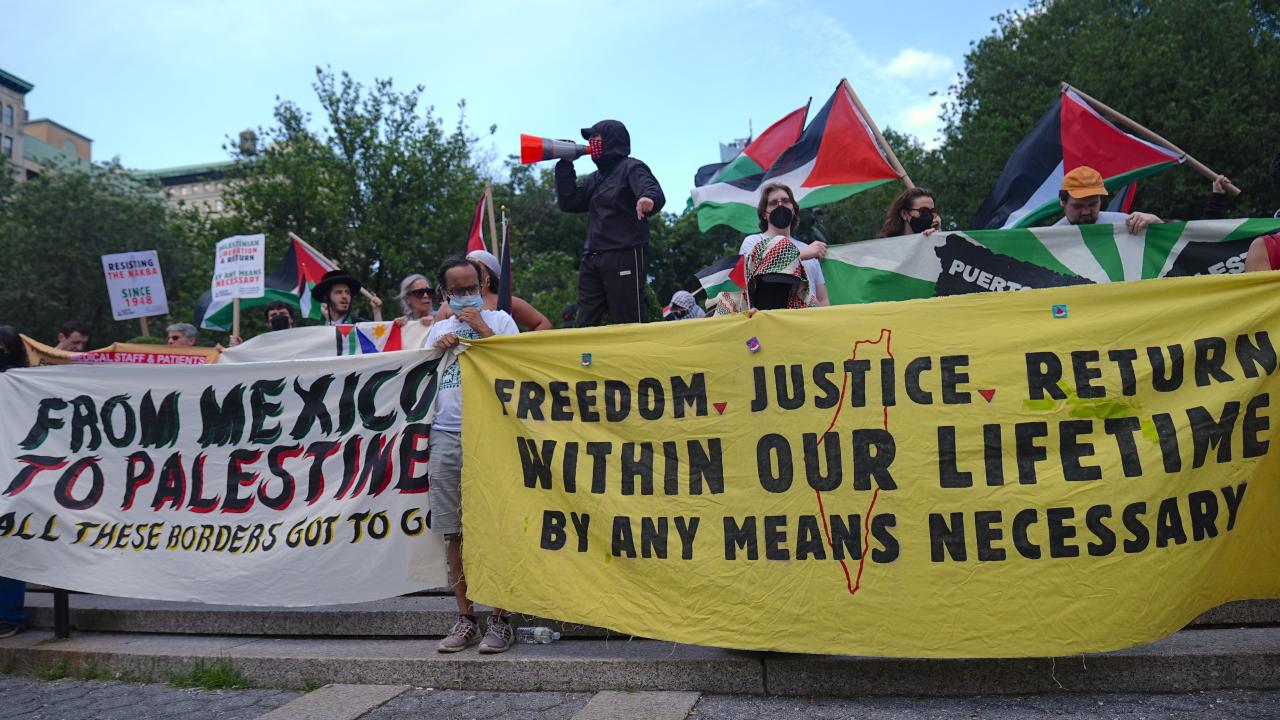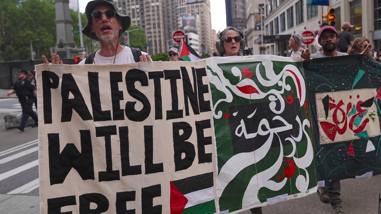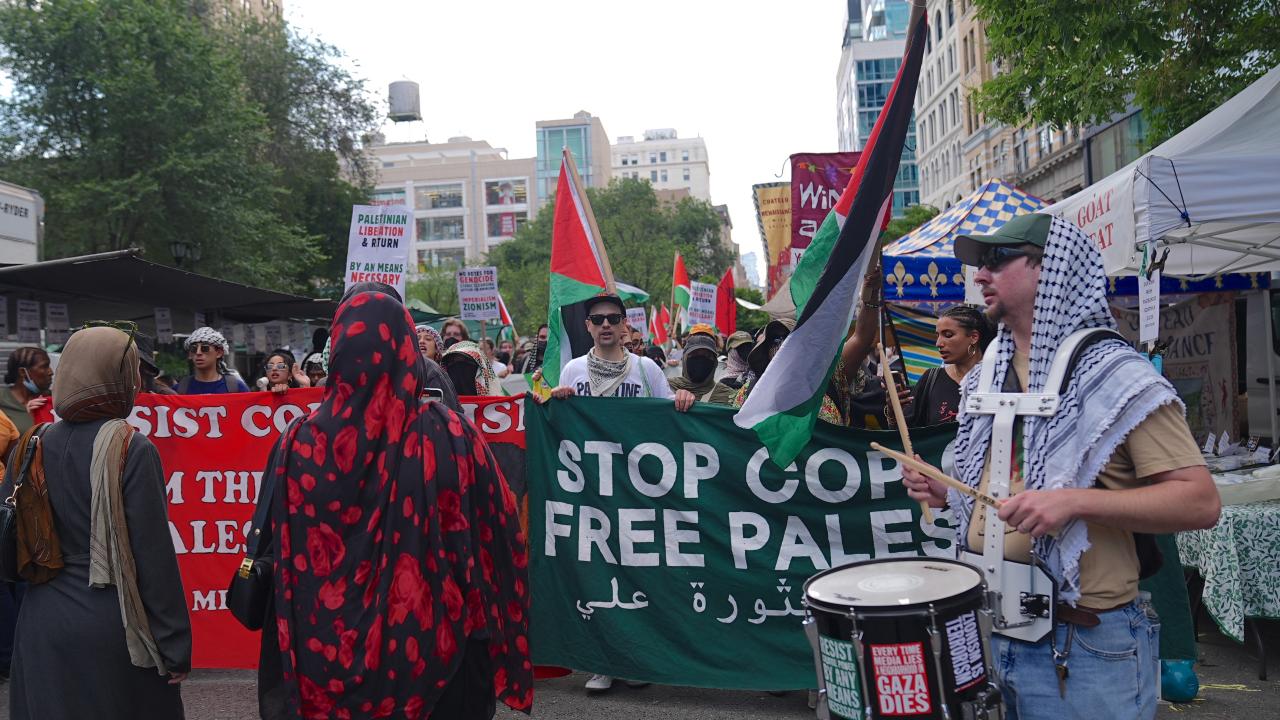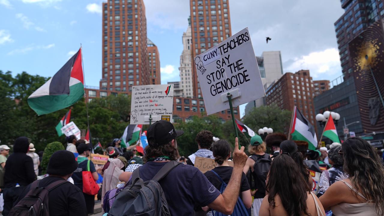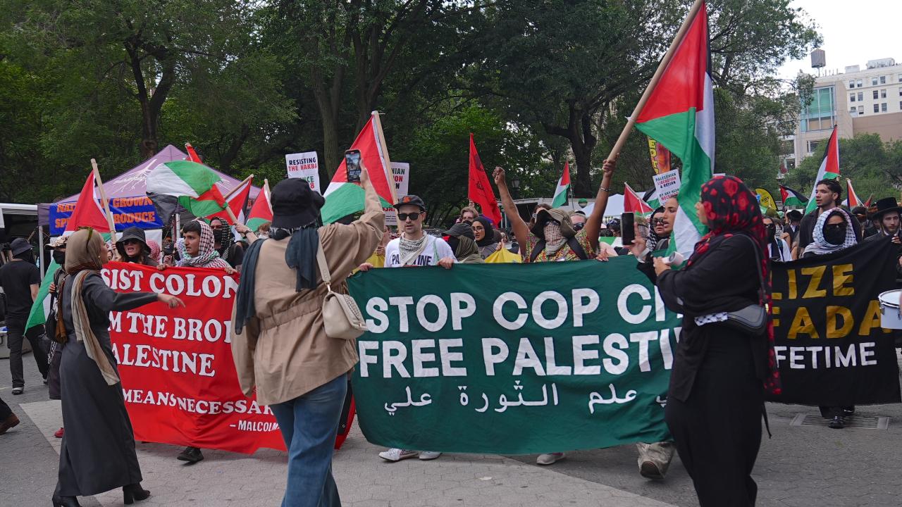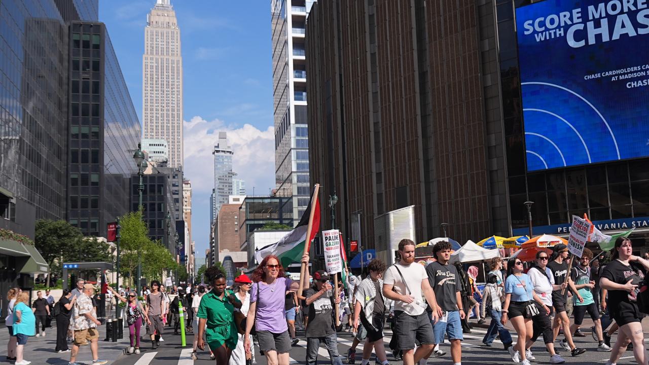 ABD'nin New York kentinde Filistin destekçileri, İsrail'in Gazze ve İran'a yönelik saldırılarını ve Trump yönetiminin savaşa müdahil olmasını protesto etmek amacıyla Union Meydanı'nda bir araya gelerek Manhattan'daki büyük tren istasyonu Moynihan Tren Salonu'na yürüdü. Polis ekipleri güvenlik önlemleri aldı.