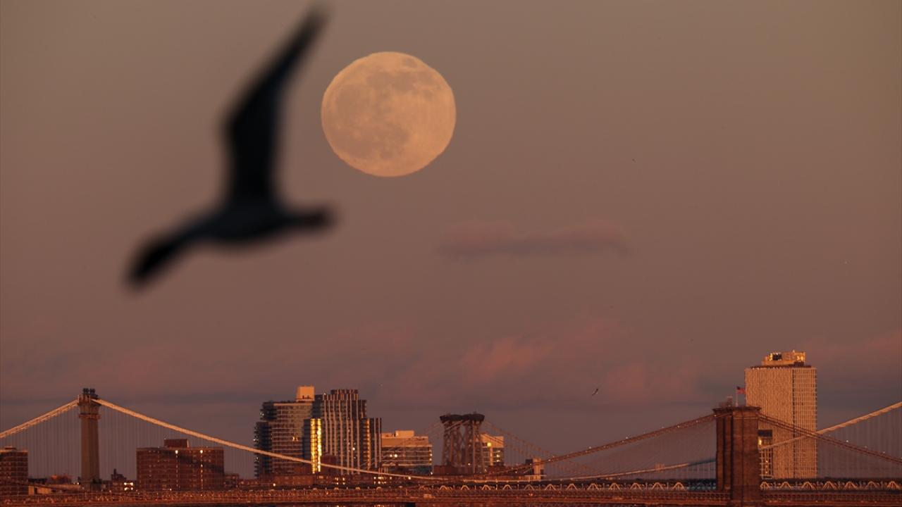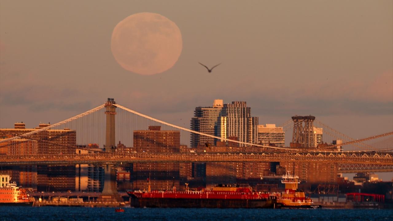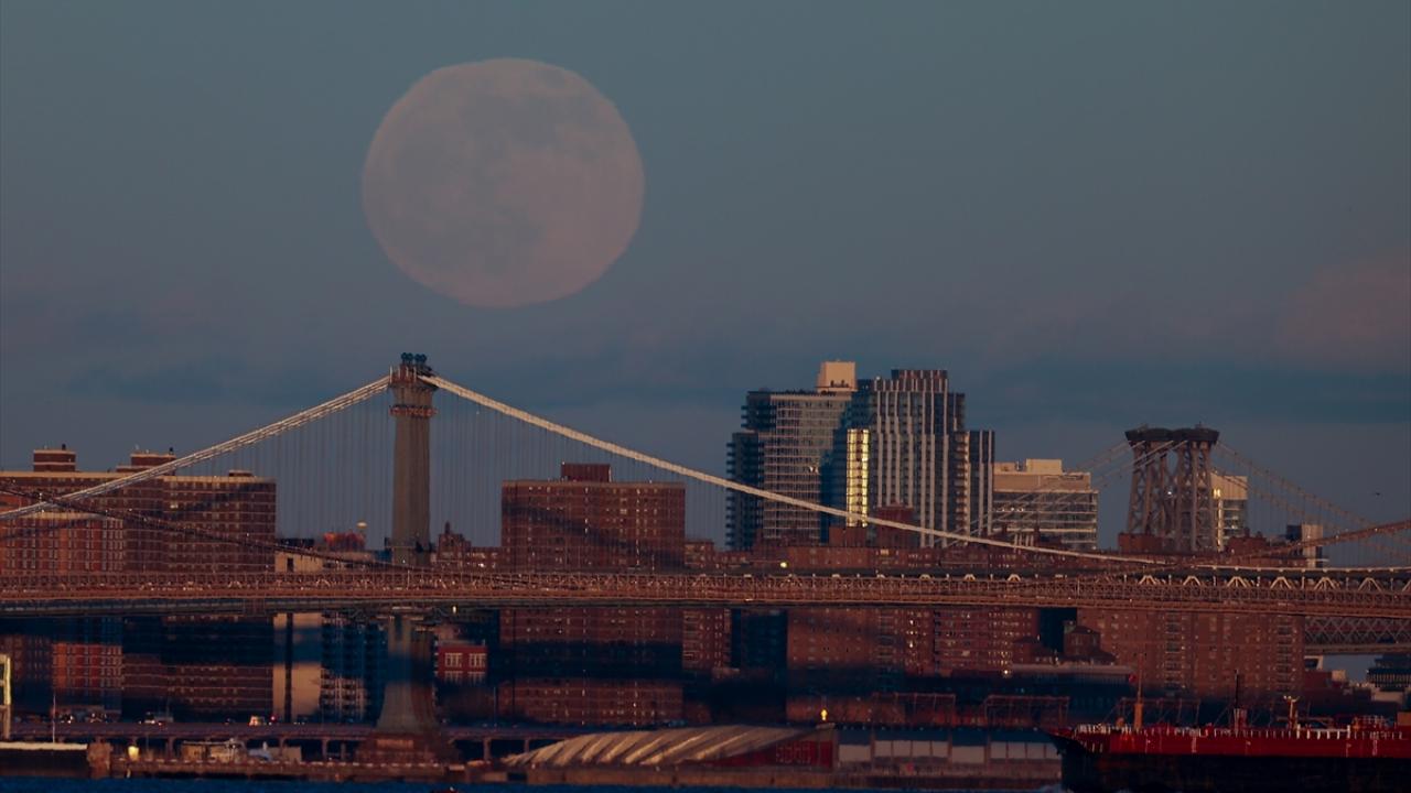ABD'de ''Soğuk Ay'' olarak da adlandırılan yılın son dolunayı, Brooklyn Köprüsü ile güzel görüntü oluşturdu.