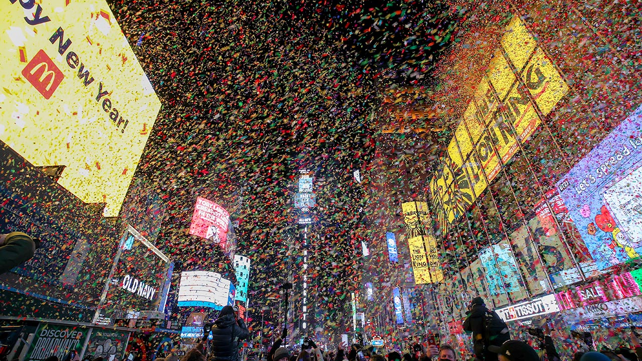 Kristal topla birlikte yeni yılın ilk dakikalarında binalardan bırakılan 1360 kilogram konfeti yağmuru ve piroteknik gösteri de bu sene tenha geçen Times Meydanı`nda güzel görüntüler oluşturdu.