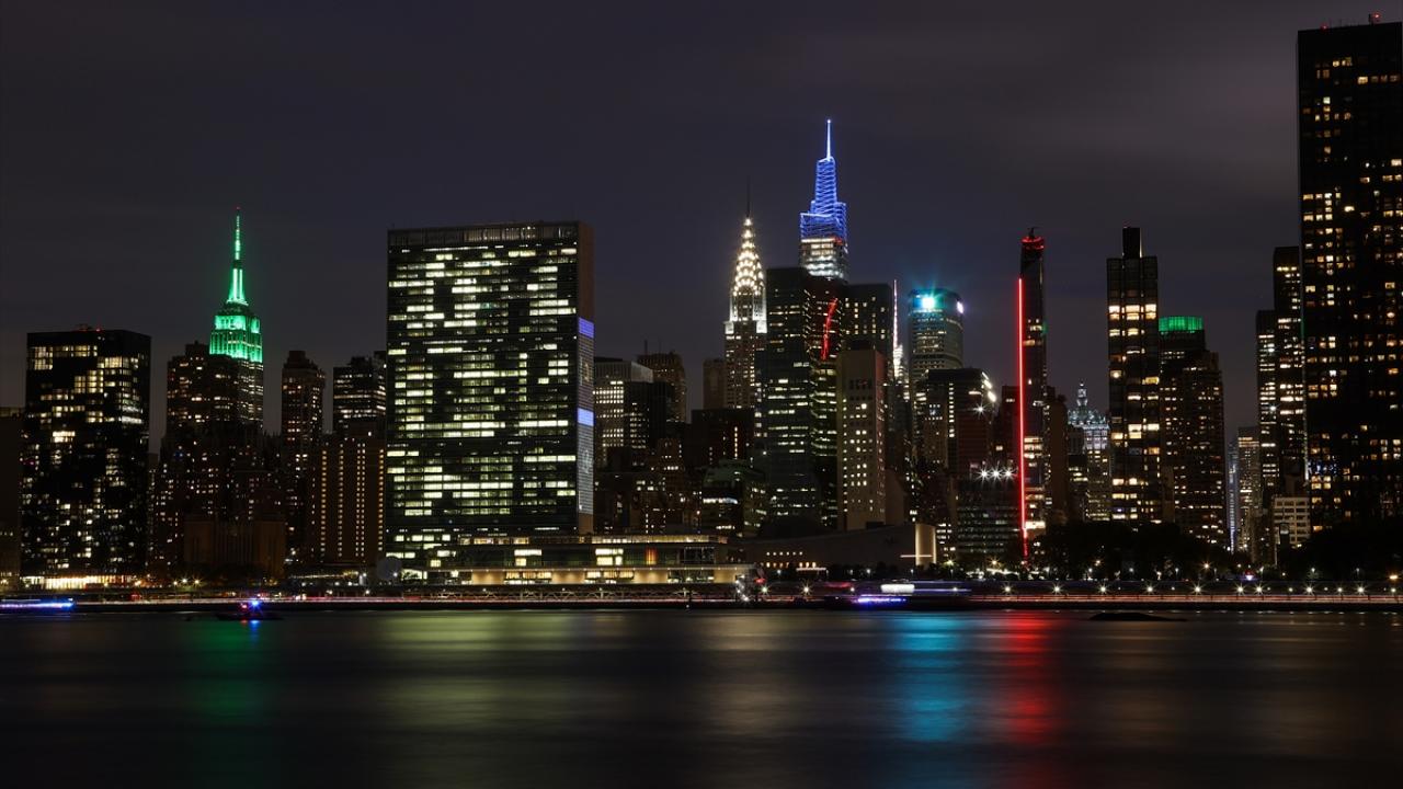 ABD'nin New York kentinde BM Genel Merkezi karşısında yapımı tamamlanarak açılan Türkiye'nin Birleşmiş Milletler (BM) Daimi Temsilciliği ile New York Başkonsolosluğunun yer aldığı Yeni Türkevi Binası akşam saatlerinde görüntülendi.