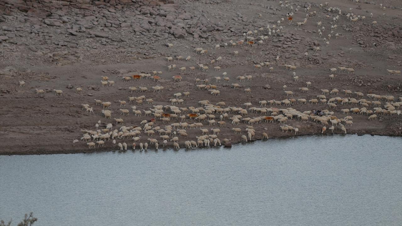 Kıraç araziyi andıran barajlardaki yeşeren bölgelerde ise besiciler hayvanlarını otlatıyor.