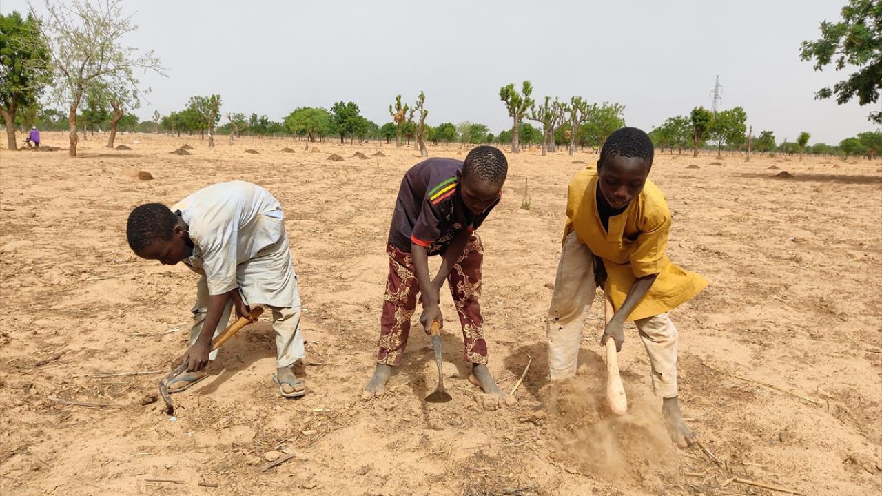 Nijerya'da çocuklar geçimlerini sağlamak için tarlada çalışıyor