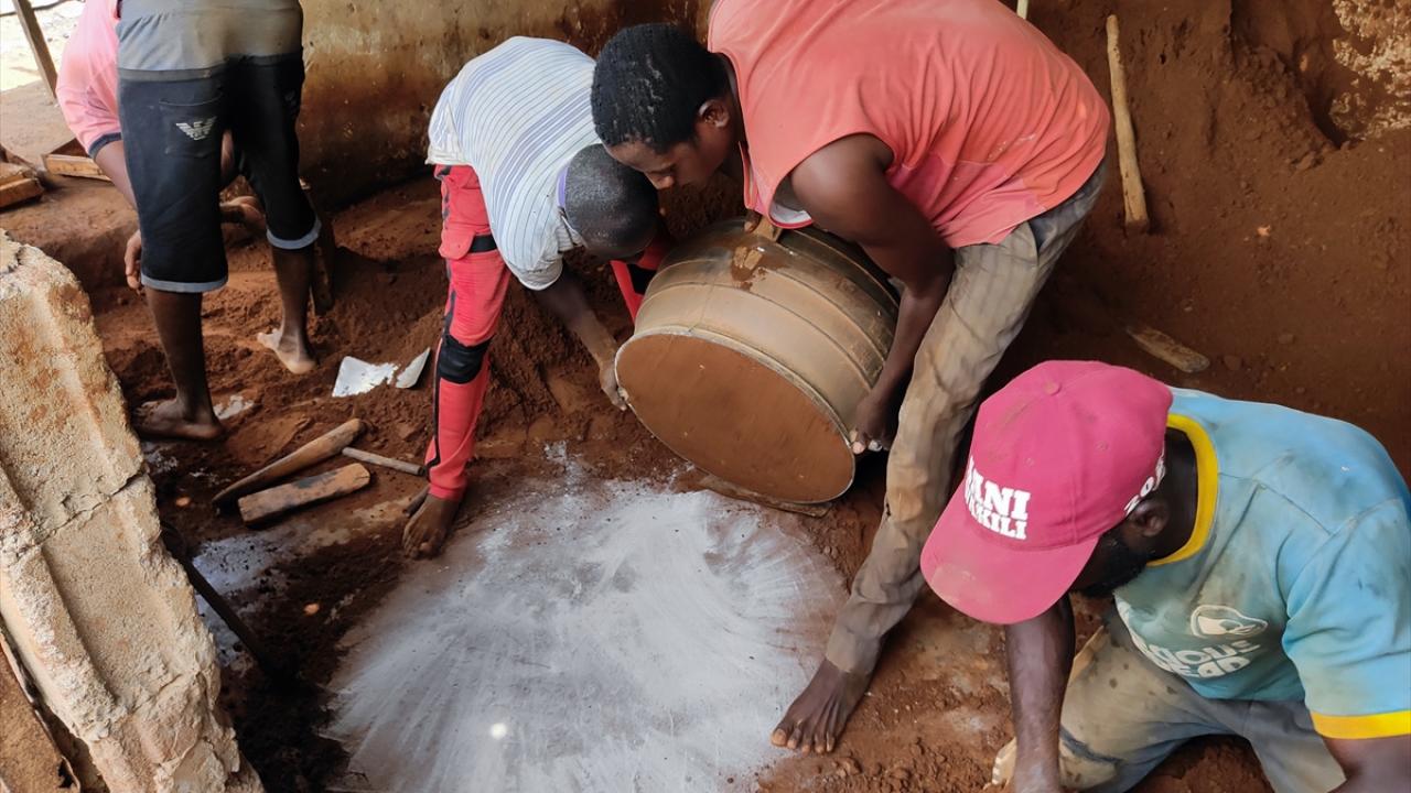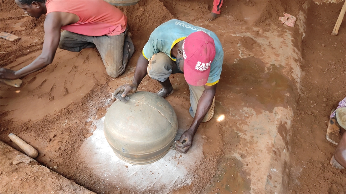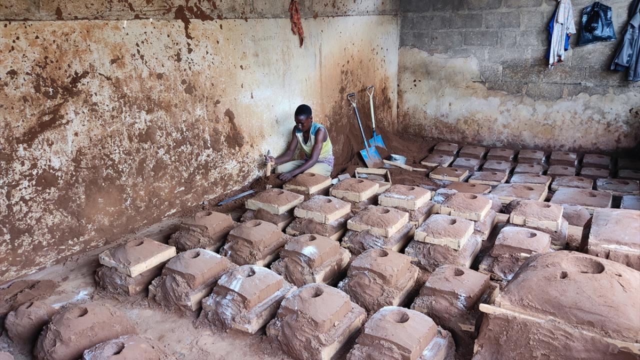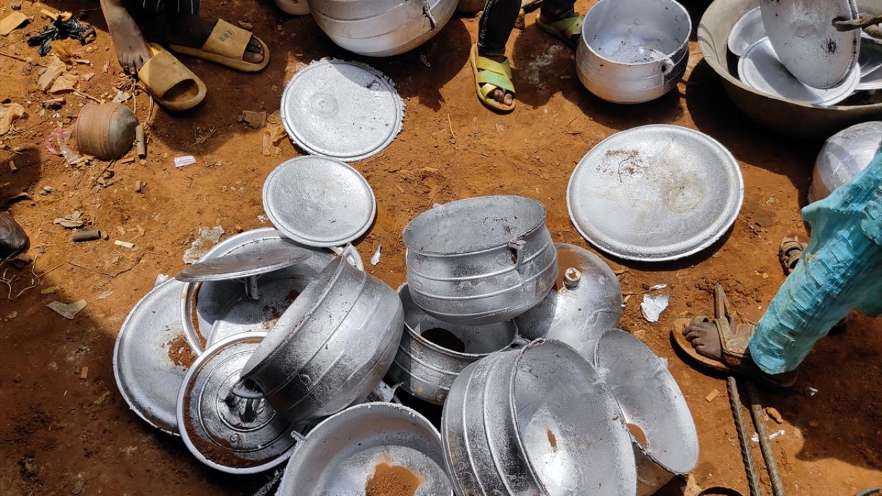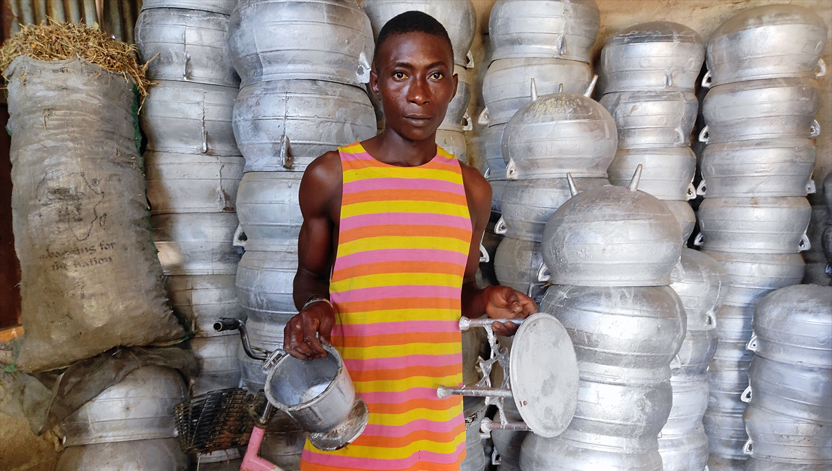 Hurda eşyaları ateşte eriterek elde ettikleri ham maddeyi toprağın içinde hazırlanan kalıplara döken Nijeryalı işçiler, elleriyle kalıpları düzenleyerek alüminyum tencereler üretiyor.