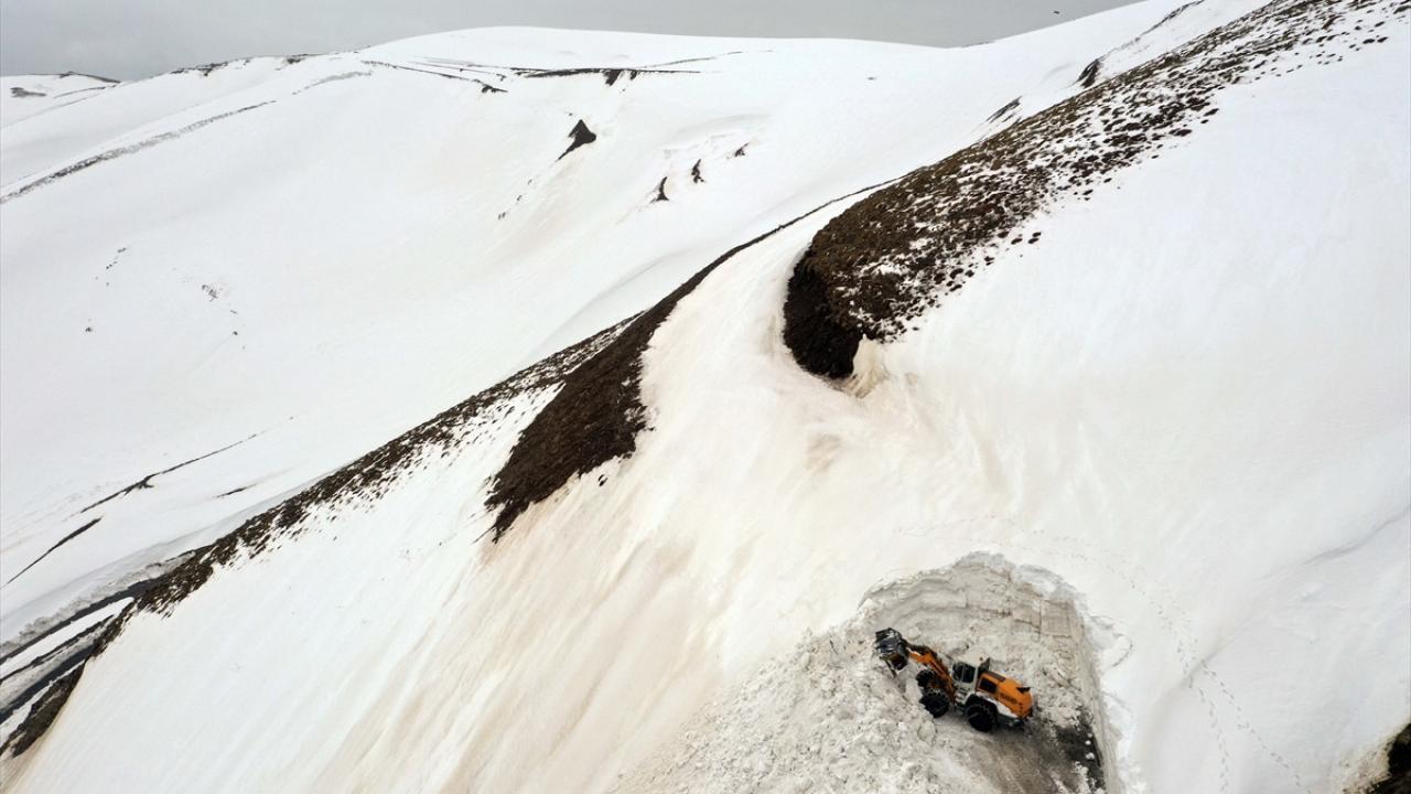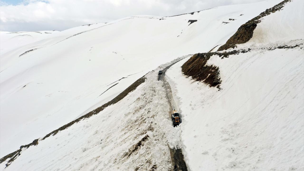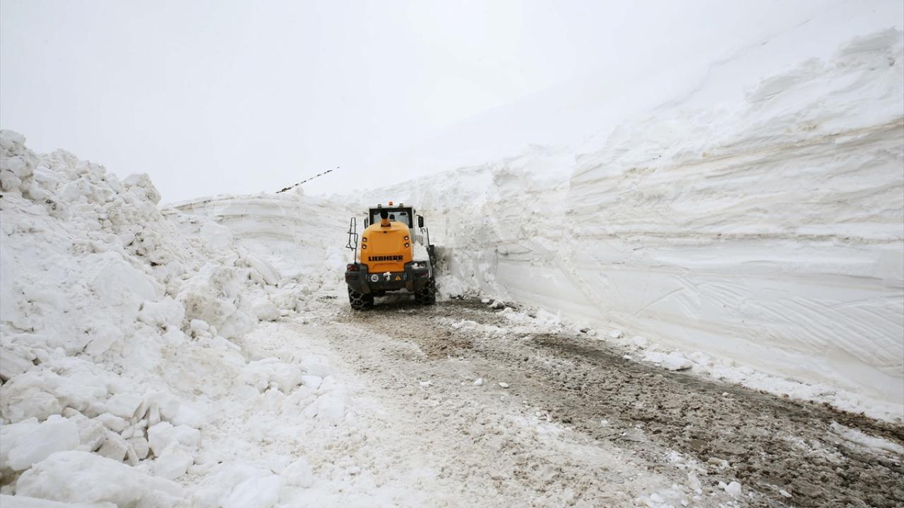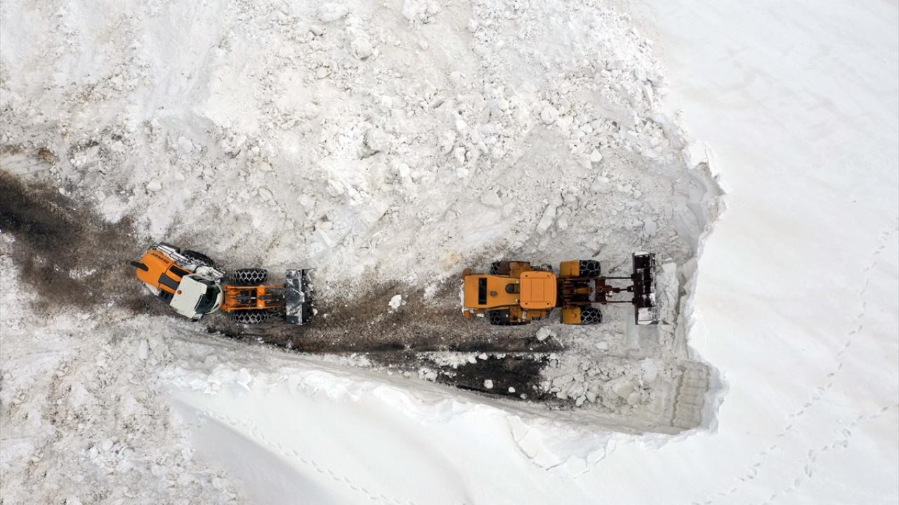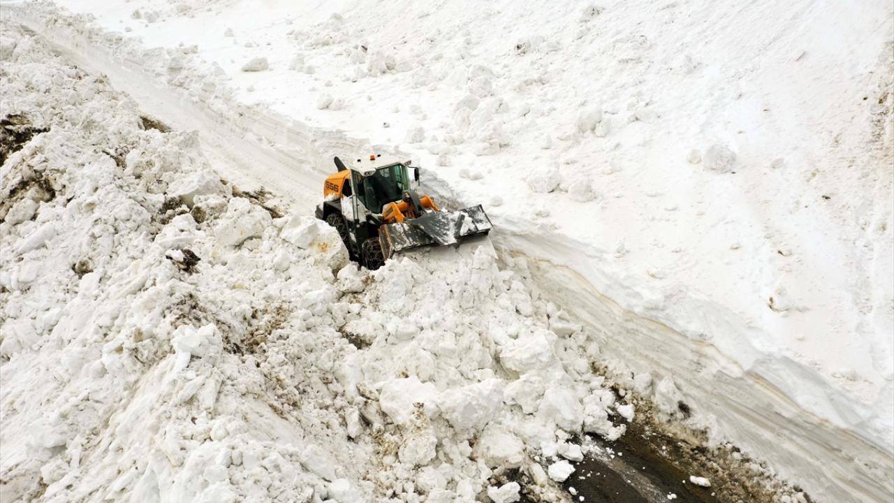 Dağların dik yamaçları ve çığ tehlikesinin bulunduğu yollarda çalışma yürüten ekipler, yüksek kar örtüsü arasında adeta tünel açarak ilerliyor.
