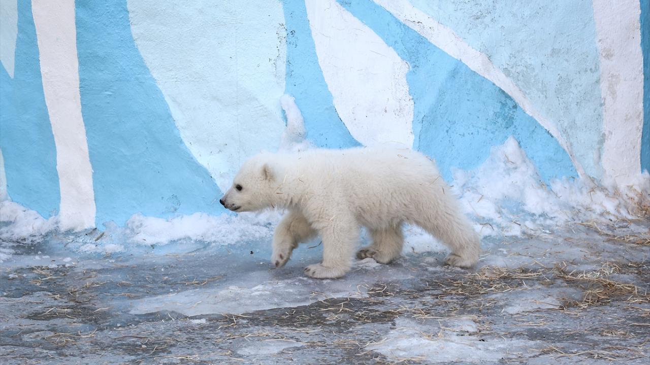Rusya’nın Novosibirsk kentindeki hayvanat bahçesinde 7 Aralık 2025’te Kai ve Gerda adlı kutup ayılarından dünyaya gelen yavru görüntülendi.