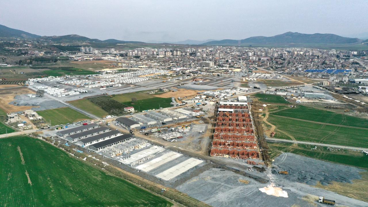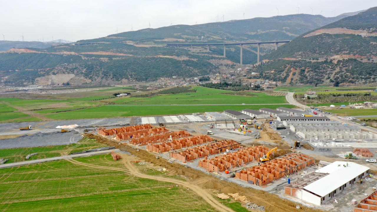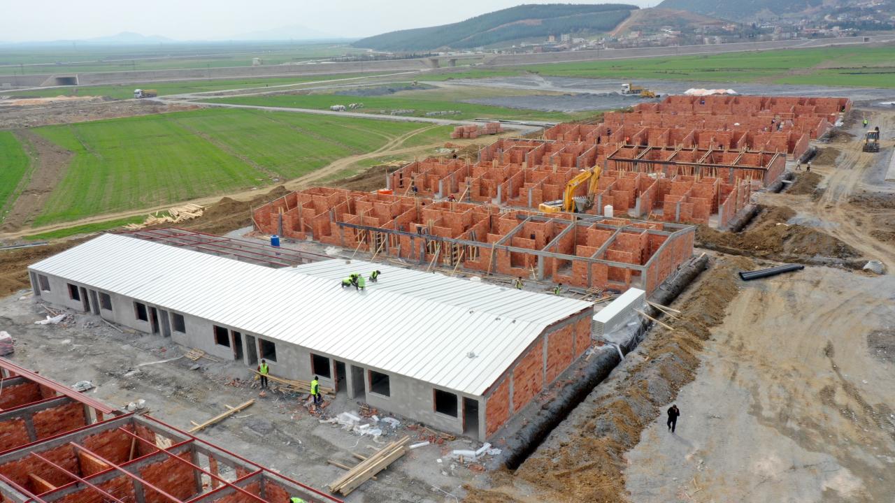 Altyapıları yapılan, zemin düzleştirme çalışmaları tamamlanan ve konteynerleri getirilen geçici barınma alanlarında inşaatına başlanan tuğladan evler de yükseliyor.