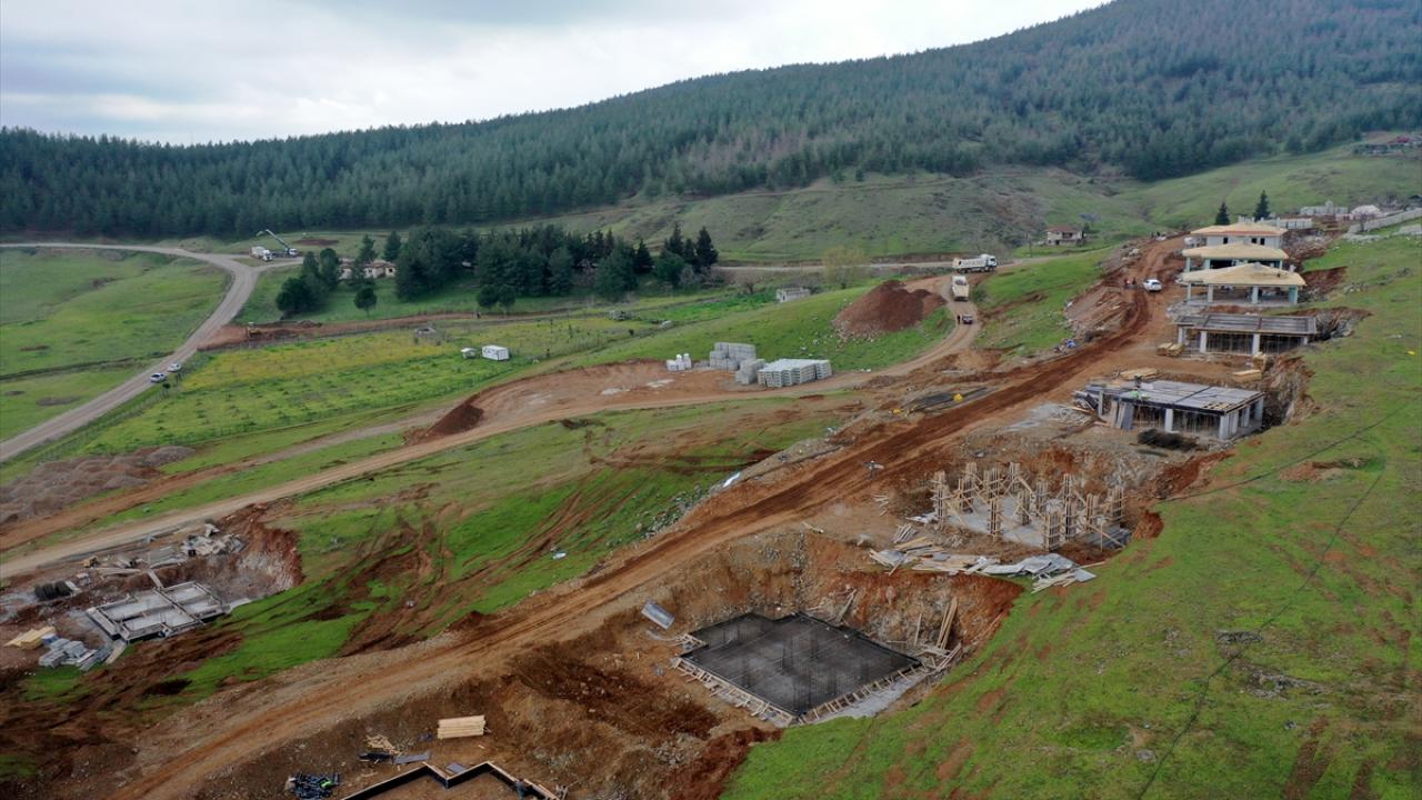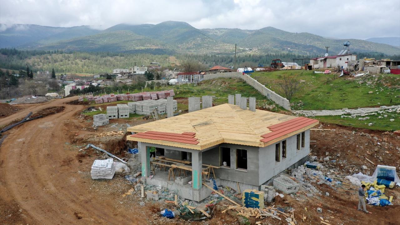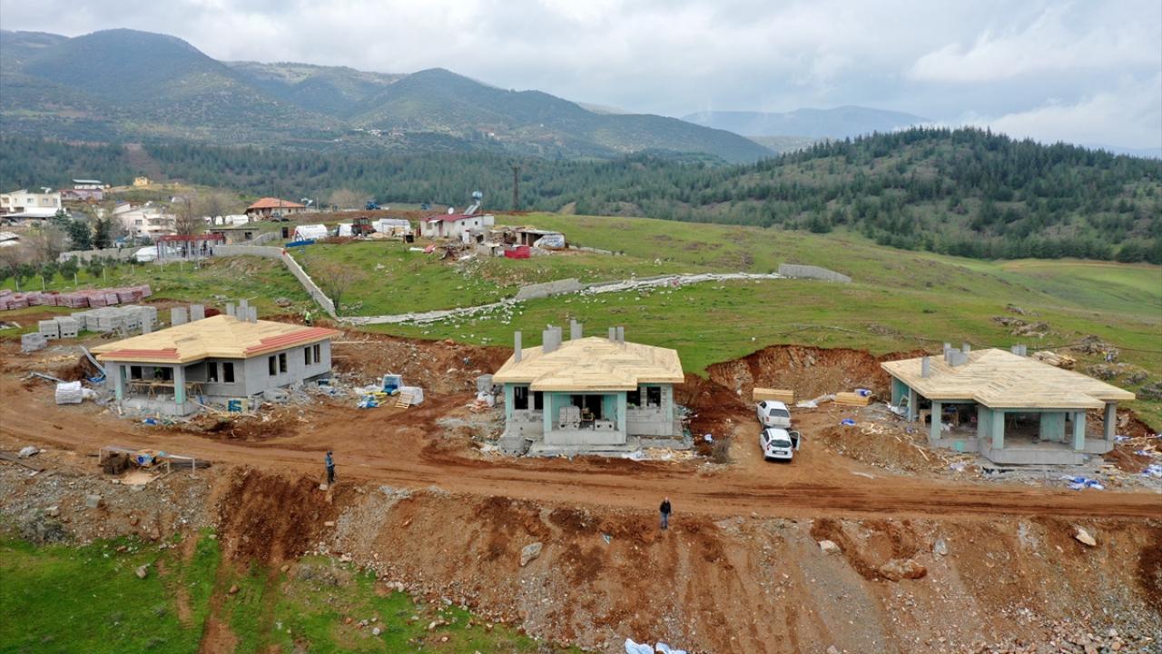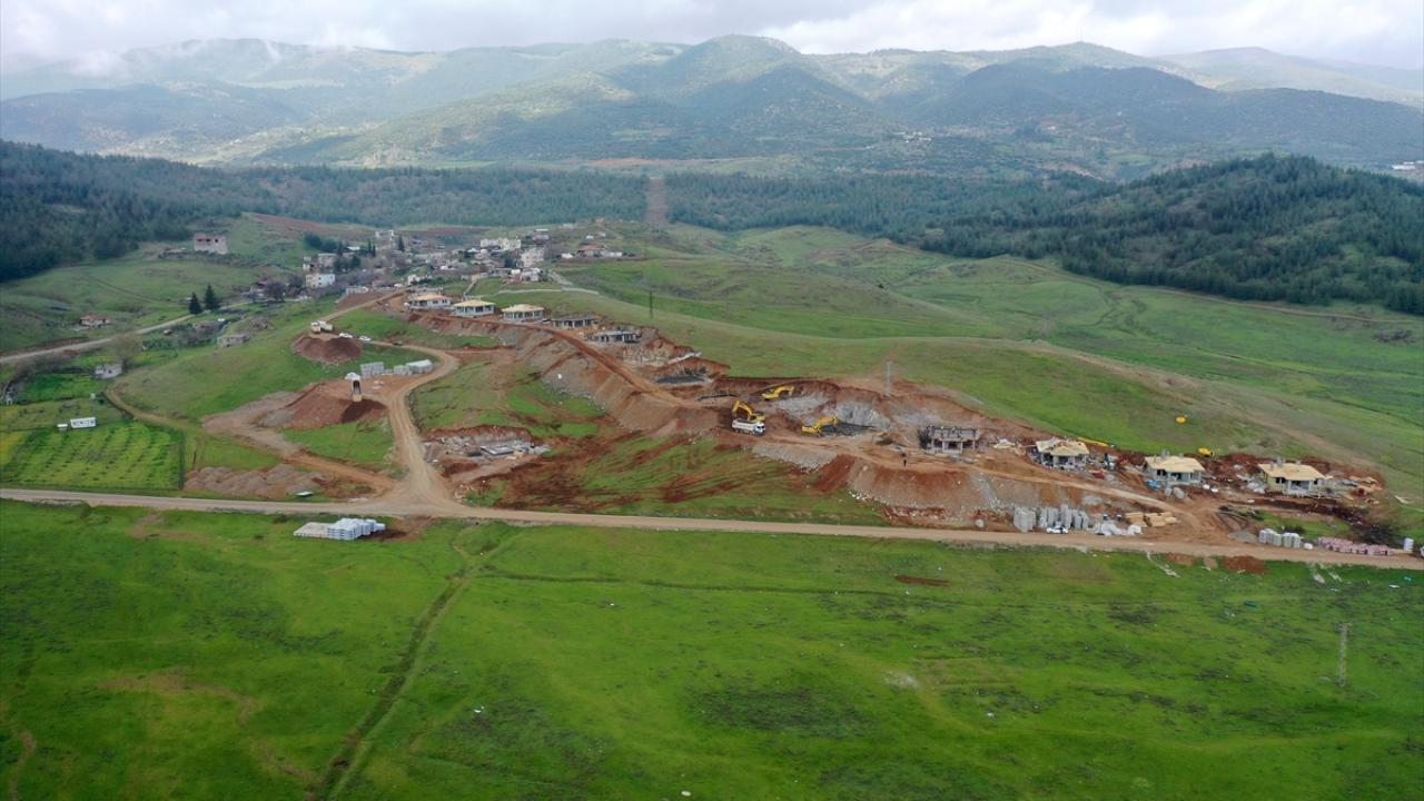 Kahramanmaraş merkezli 6 Şubat'taki depremlerden etkilenen Gaziantep'in Nurdağı ilçesindeki kırsal Belpınar Mahallesi'nde inşa edilen köy tipi kalıcı konutların kaba inşaatı büyük oranda tamamlandı.