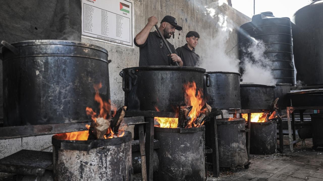 Gazze Şeridi’nin orta kesiminde bulunan Nuseyrat Mülteci Kampı’ndaki bir hayır kurumu, yerinden edilen Filistinlilere yemek dağıttı.