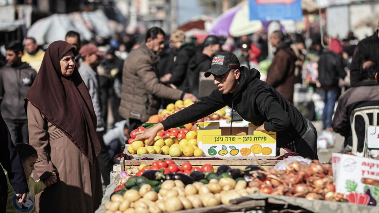 Abluka altındaki Gazze Şeridi’nin orta kesimindeki Nuseyrat Mülteci Kampı’nda halk pazarı, aylar süren kısıtlamaların ardından yeniden hareketlendi.