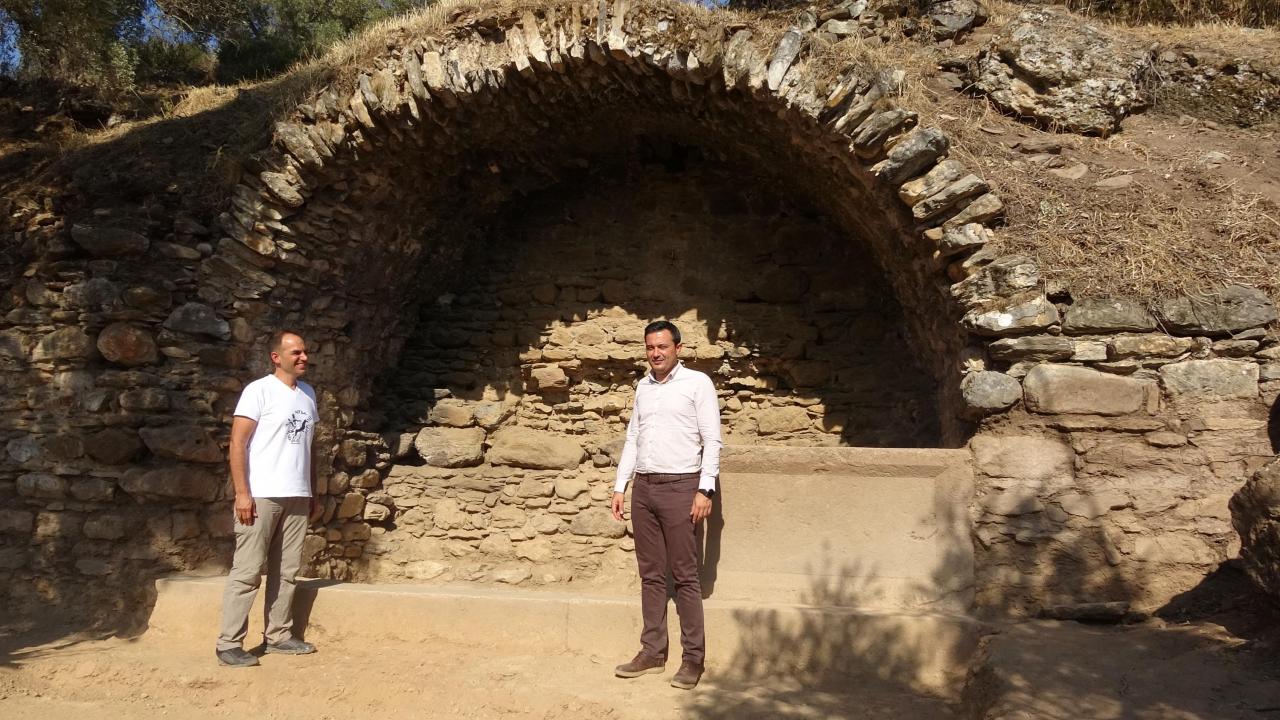 Tarihi stadyum çeşmesinde incelemelerde bulunan İl Kültür ve Turizm Müdürü Umut Tuncer ve Kazı Başkanı Doç. Dr. Serdar Hakan Öztaner, 4 metre 80 santimetre genişliğinde 5 metre yüksekliğindeki çeşmenin, o dönem stadyuma gelen davetlilerin içme suyu ihtiyacını karşılamada kullanıldığını söyledi.