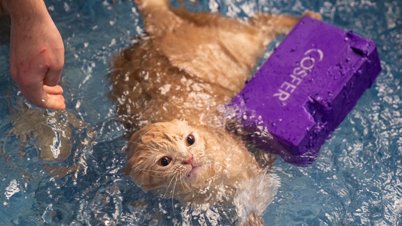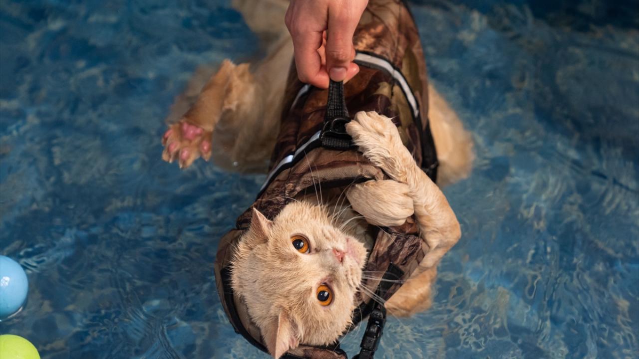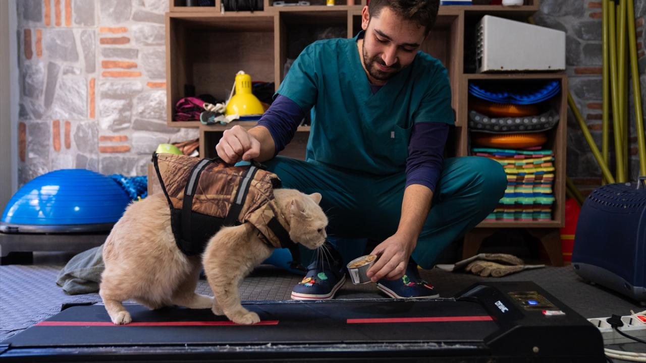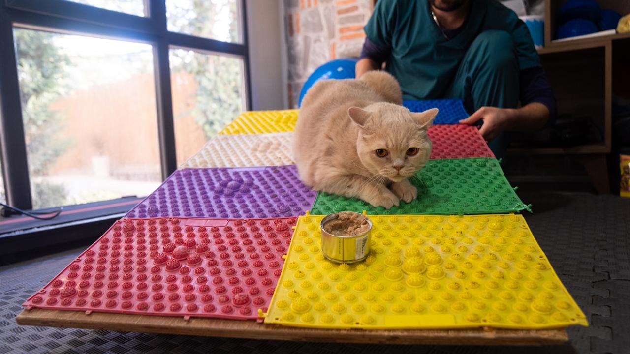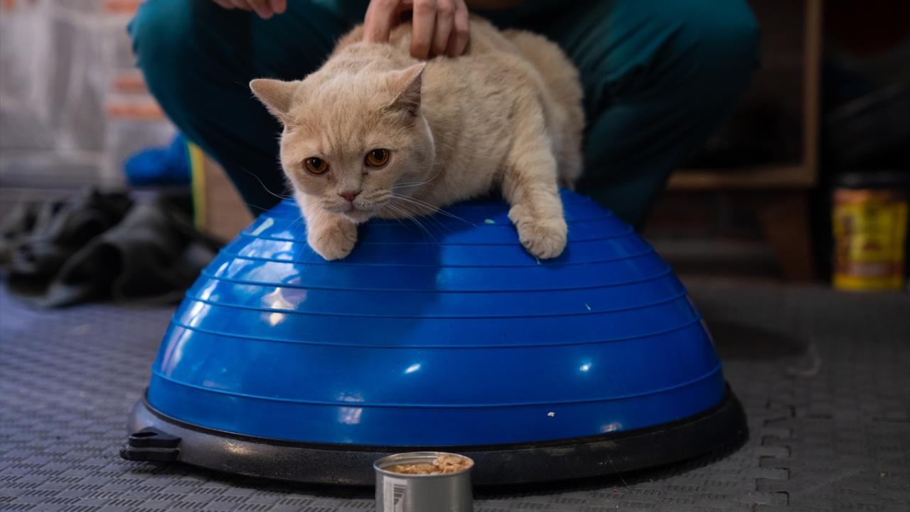Düzensiz beslenme ve hareketsizlik nedeniyle obeziteye yakalanan "Ekmek" isimli kedi, 6 kilo vererek sağlığına kavuşan arkadaşı "Şiraz" isimli kedi gibi pilates ve yüzmeyle fazla kilolarından kurtulmaya çalışıyor.