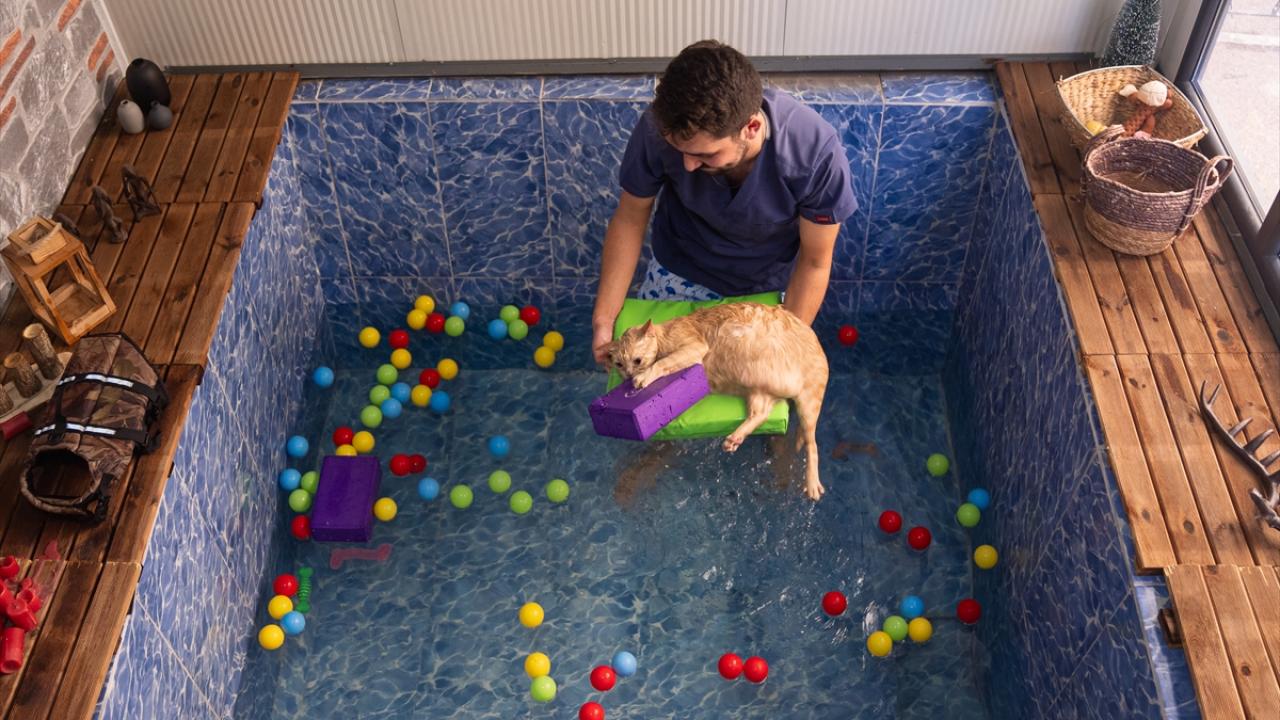 Bir aydır veteriner hekim Bahri Terzi ile veteriner teknikeri ve fizyoterapisti Yağmur Denli`nin gözetiminde tedavisi süren Ekmek, her gün koşu bandı ve pilates topuyla egzersiz yaptırılıp, havuzda yüzdürülüyor.